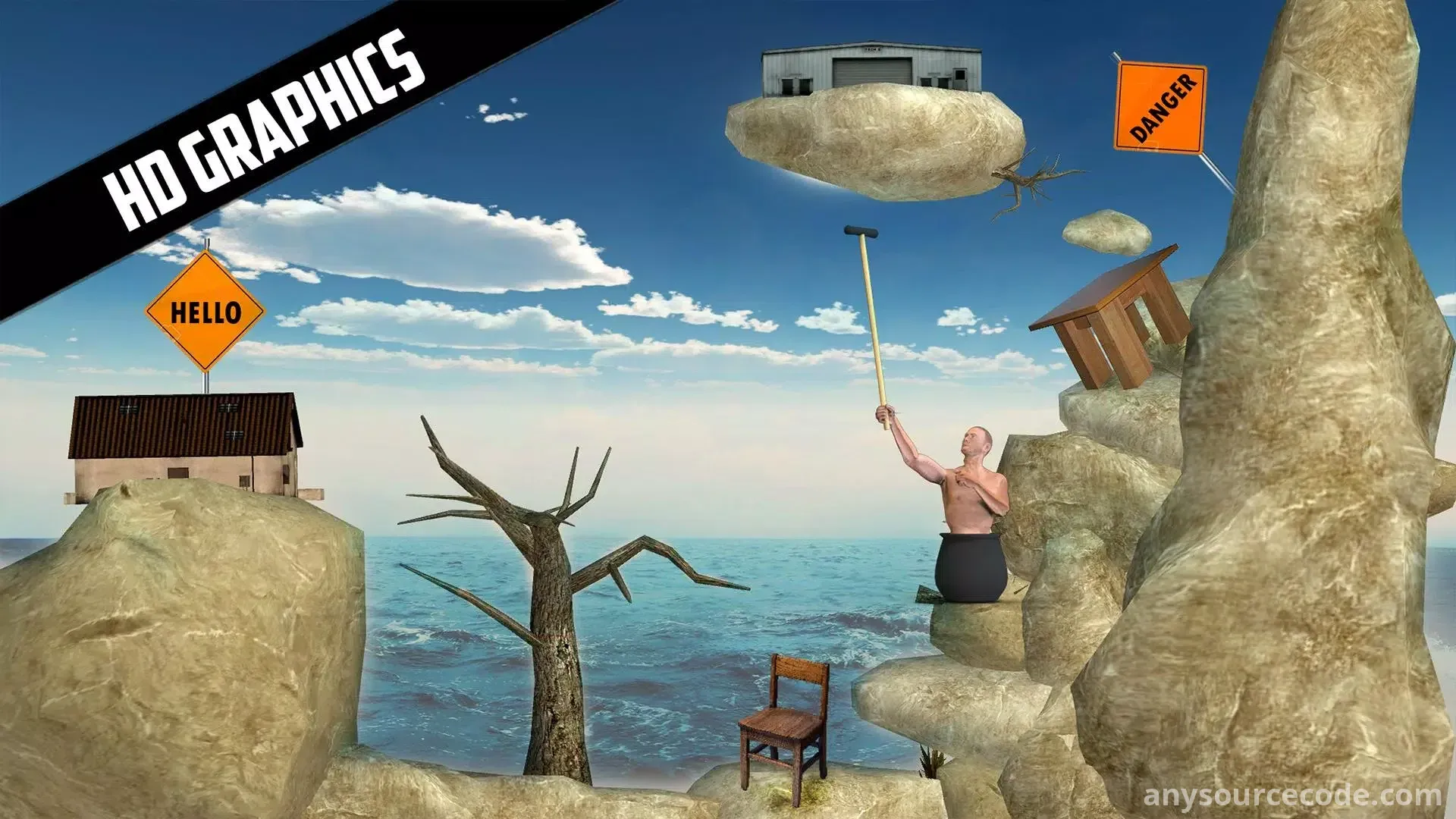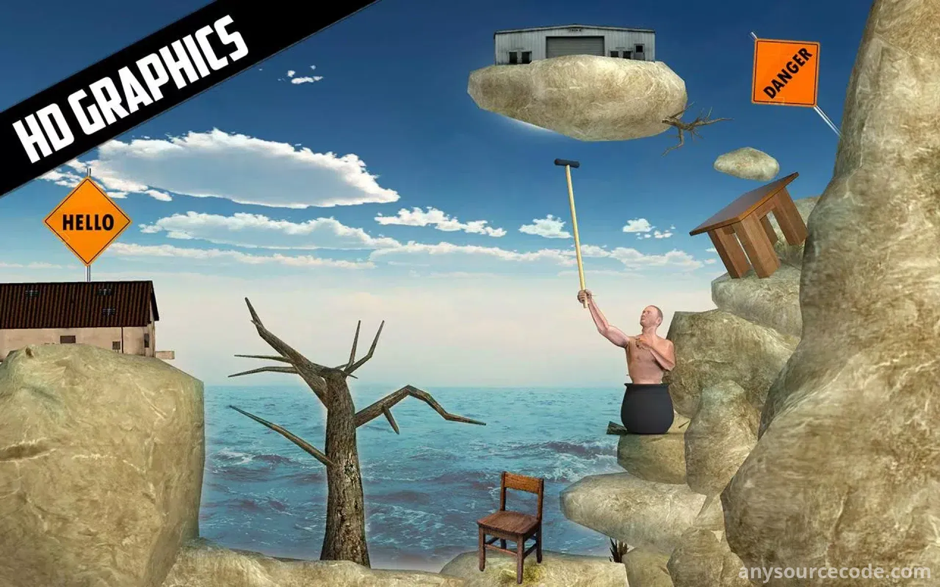 3D Getting Over It – Real HammerMan Simulator is one of the hardest and most frustrating climbing games ever created. Players control HammerMan, a half-man holding a heavy hammer, using only physics-based movements to climb sharp rocks and obstacles. Each mission requires patience, precision, and strategy to overcome brutal challenges. With punishing gameplay and addictive mechanics, this Unity template delivers a unique mountain-climbing experience that keeps players hooked despite the frustration.