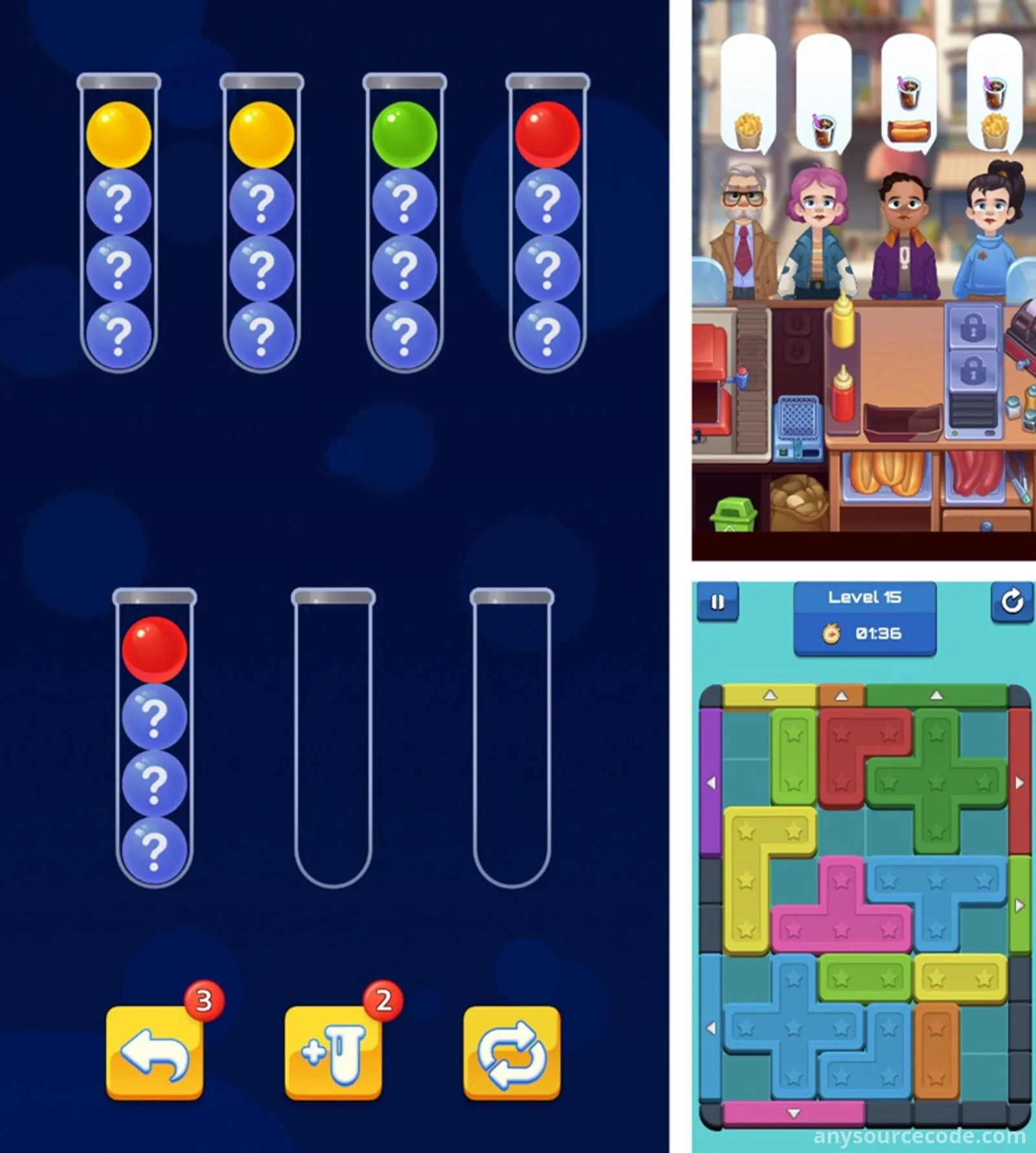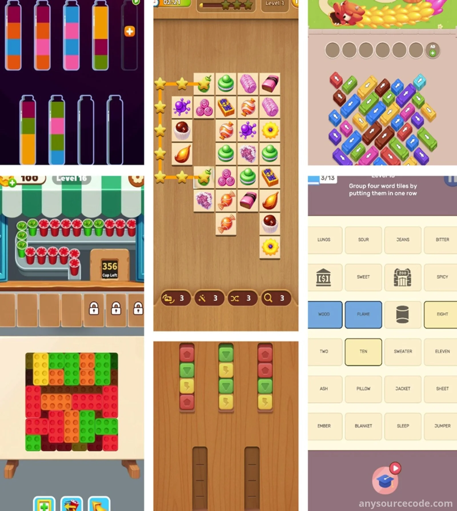 9-in-1 Ultimate Puzzle Game Bundle delivers 9 complete Unity puzzle game source codes in a single package. Each project is fully ready for publication and ideal for developers who want to launch multiple games quickly while saving time and budget. All games are built using Unity 2022.3, featuring clean and documented C# code, pre-made puzzle levels, mobile optimization, and integrated monetization options. Each title can be reskinned, expanded, and republished easily, making this bundle suitable for indie studios, publishers, and personal game portfolios.