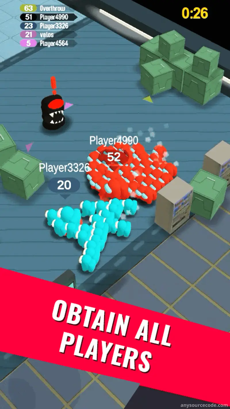 Among Impostors is a fun and addictive game designed for all ages, showing an impressive first-day retention of 42%. You play as a runaway impostor on a spaceship, stealing food to grow your minions. The more you eat, the larger and stronger your group becomes. Compete against other players on the field — trample them, collect rewards, and unlock dozens of skins. The game is optimized with built-in monetization, analytics, and player retention systems.