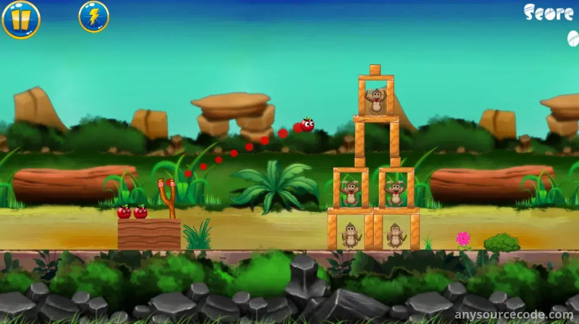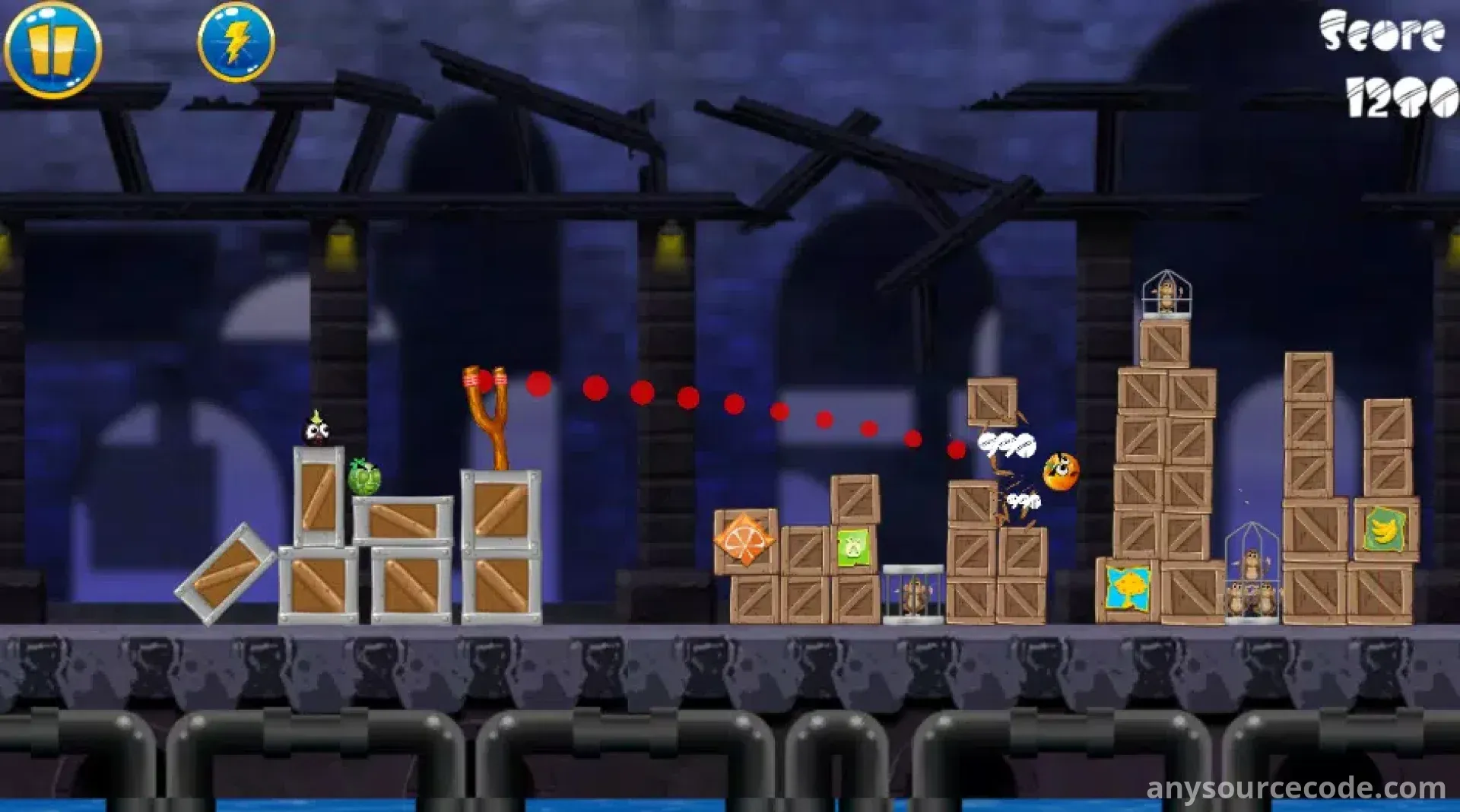 Angry Fruits is a fun and addictive slingshot-style game where mischievous monkeys steal, eat, and scatter fruits. Tired of being bullied, the fruits launch a mission called Angry Fruits to fight back! Use a single bow (guleti) to launch fruits at monkeys and structures across multiple environments including Forest, Factory, Mountain, Sea Coast, Air Cargo, and City Night. Destroy targets, collect points, and unlock gift packs filled with useful items as you progress through the levels.