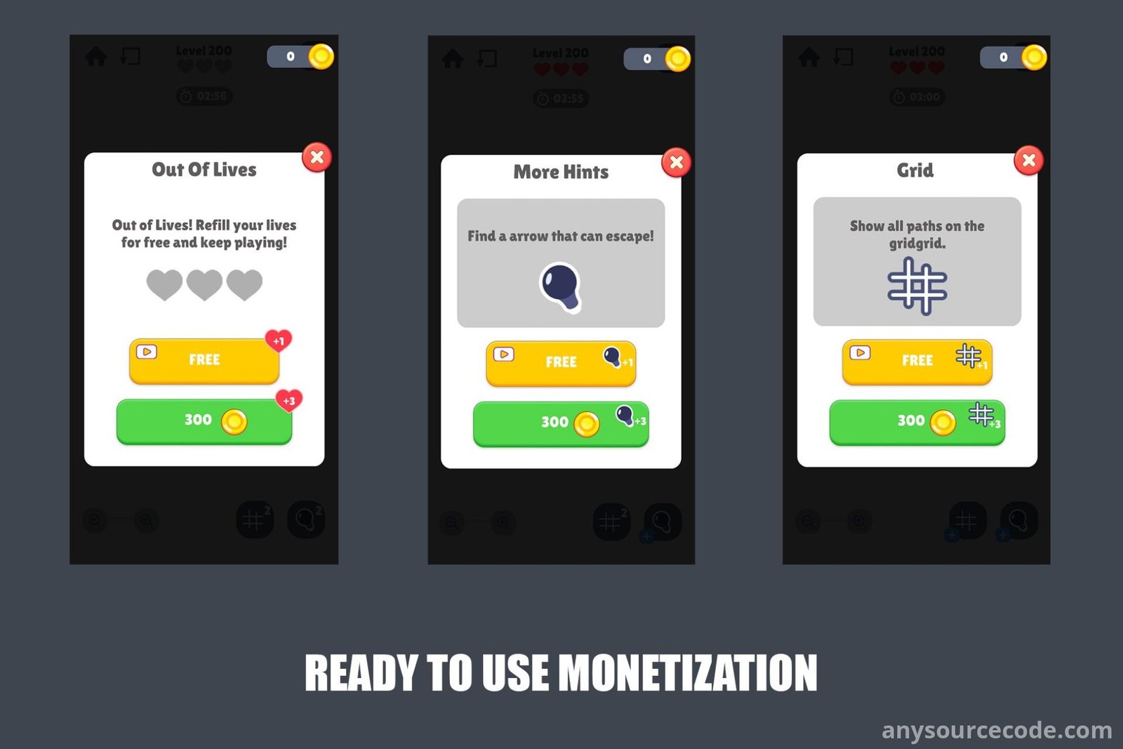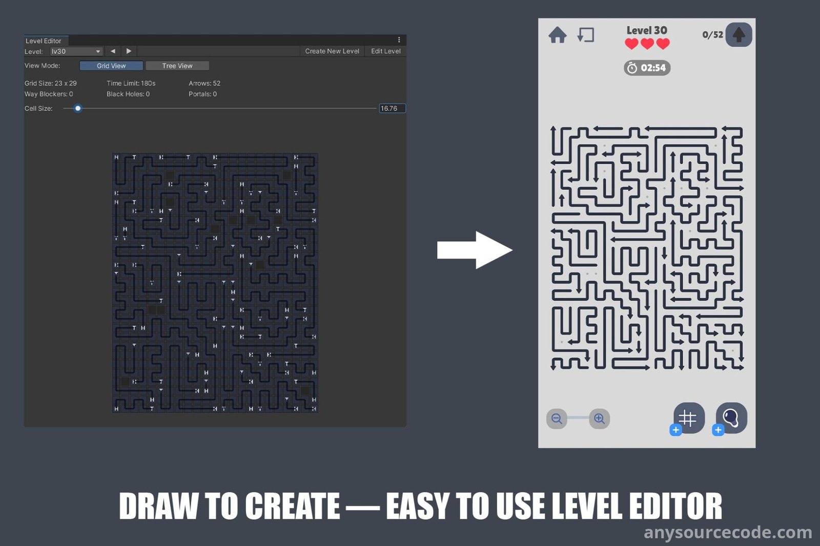 Arrow Out is a complete Unity source code project inspired by the popular arrow maze puzzle genre on Google Play. The game features simple rules with increasingly challenging gameplay, where players must follow arrow directions to escape complex grids. With its addictive mechanics and clean design, Arrow Out is ideal for casual puzzle audiences and developers looking for a ready-to-publish mobile game.