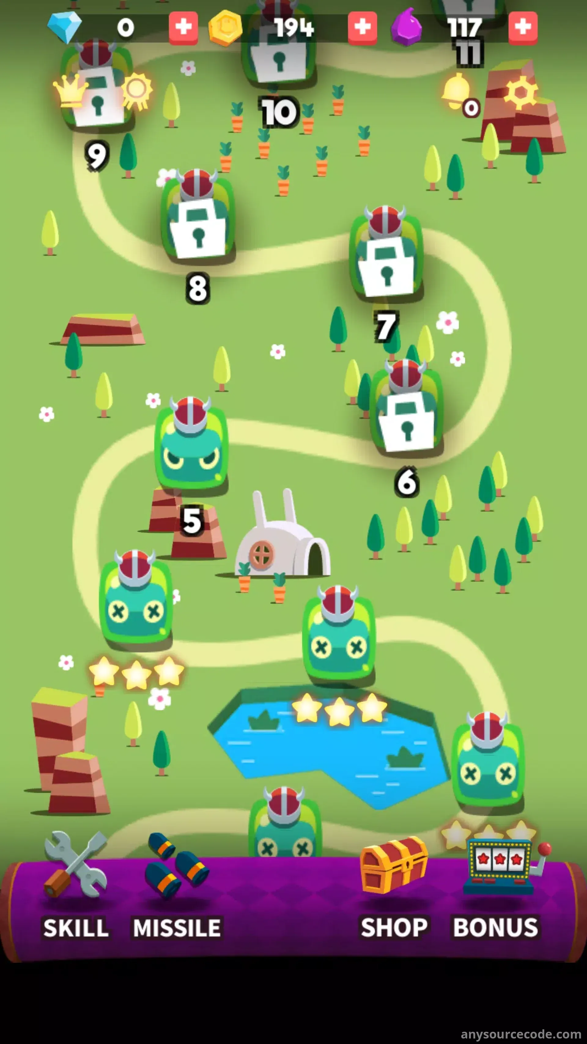 - Four types of missiles with unique effects