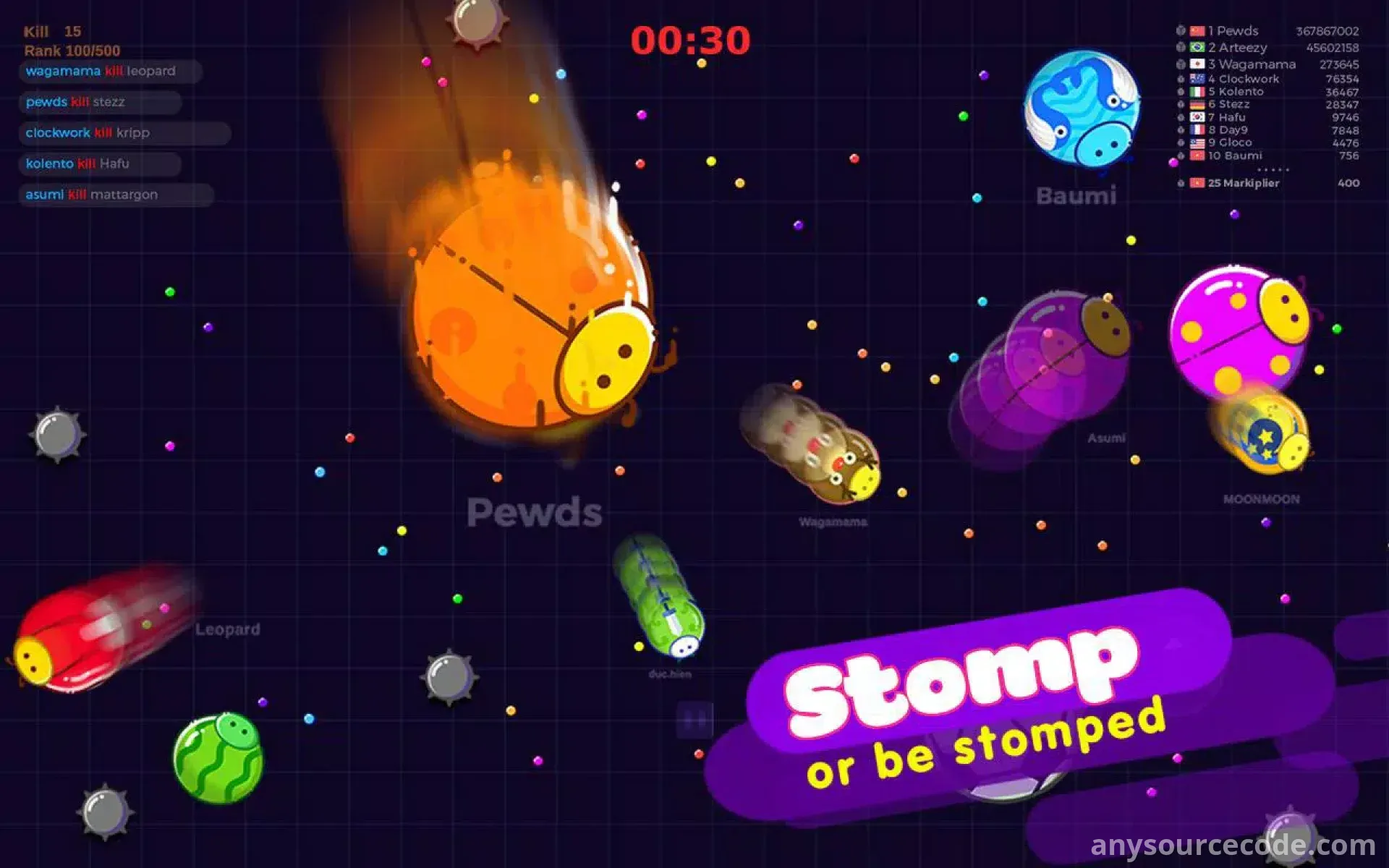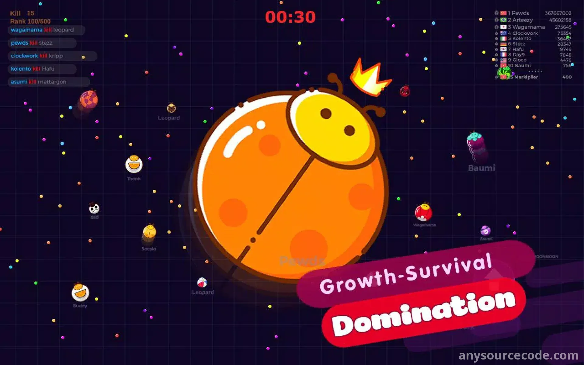 - Classic .io gameplay with growth, survival, and domination mechanics