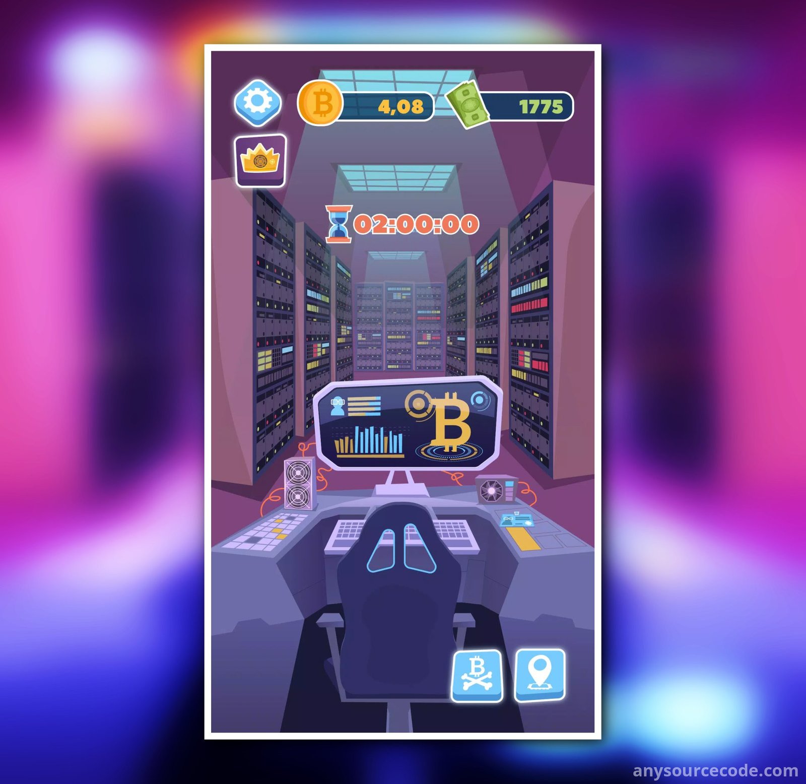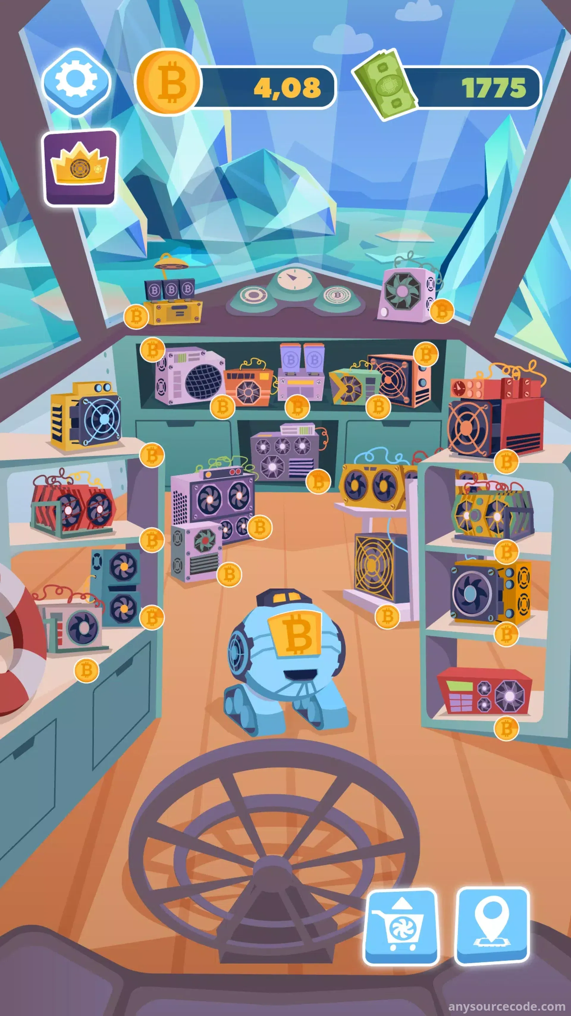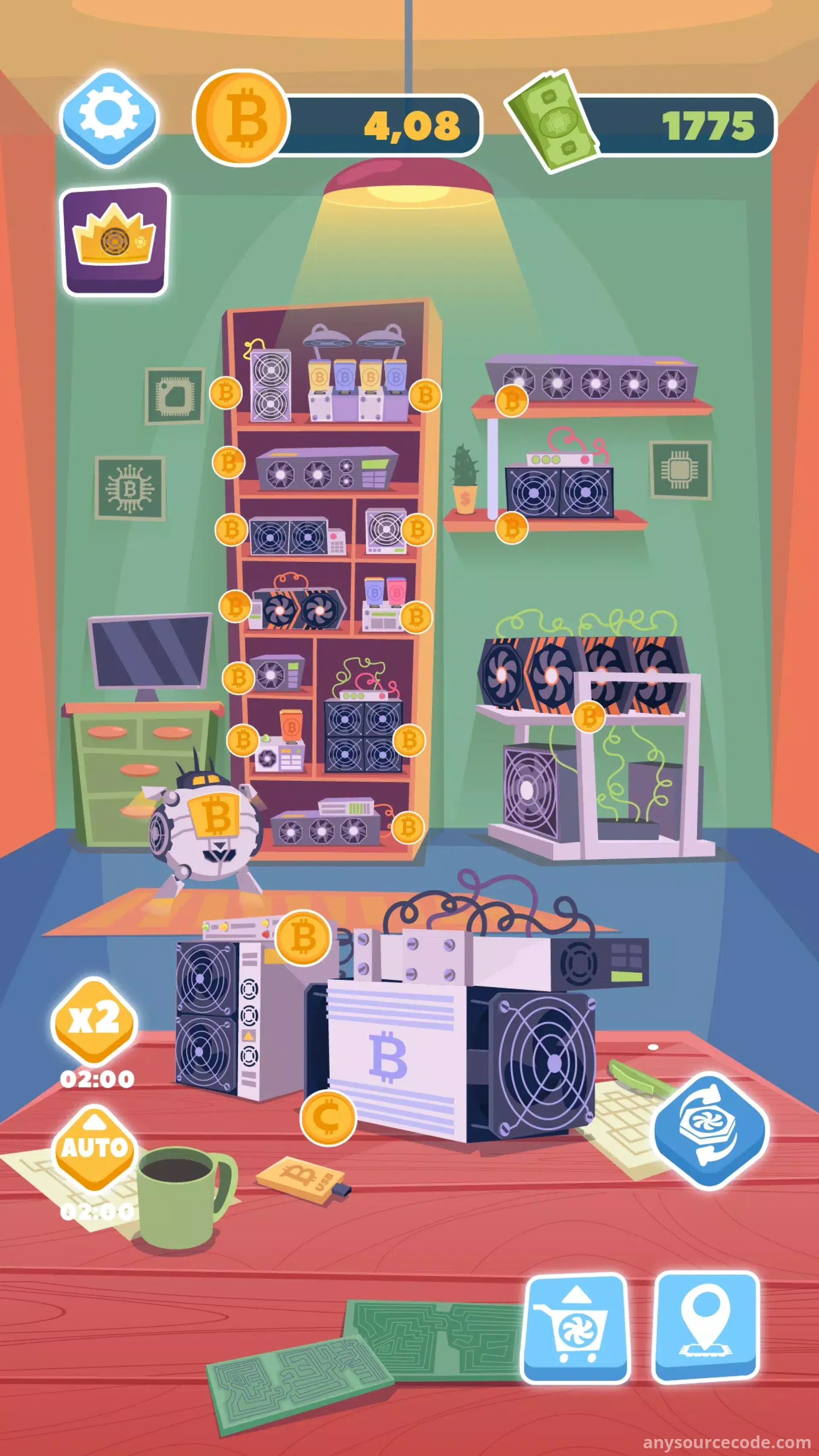 - Idle mining gameplay focused on building a crypto empire