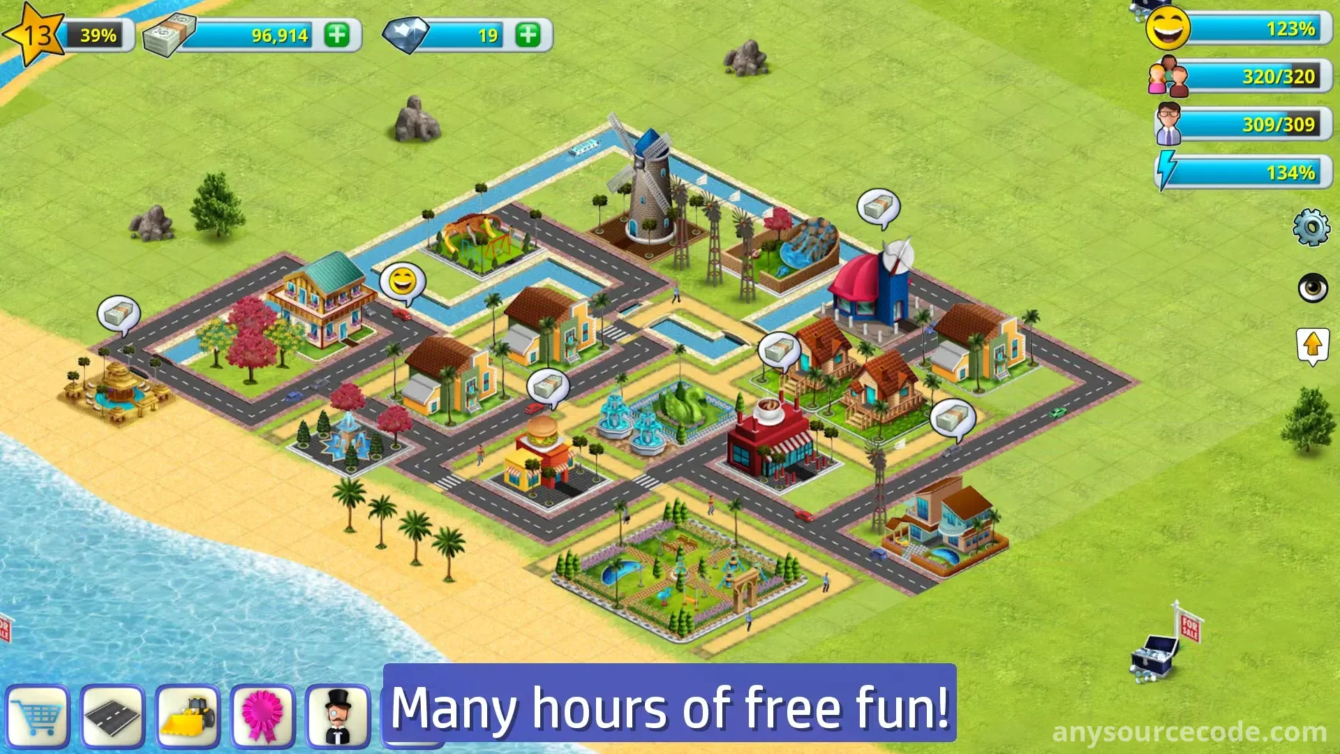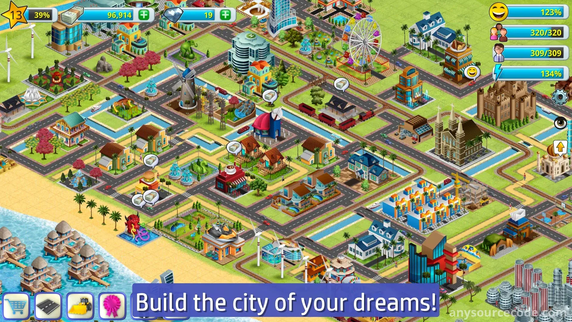 Featuring more than 100+ unique structures to unlock — from houses and restaurants to parks, schools, factories, cinemas, and even offshore oil platforms — this city-building experience offers endless creativity. Build, upgrade, explore the beach, attract new residents, and manage your economy with gold and cash earned from your citizens.