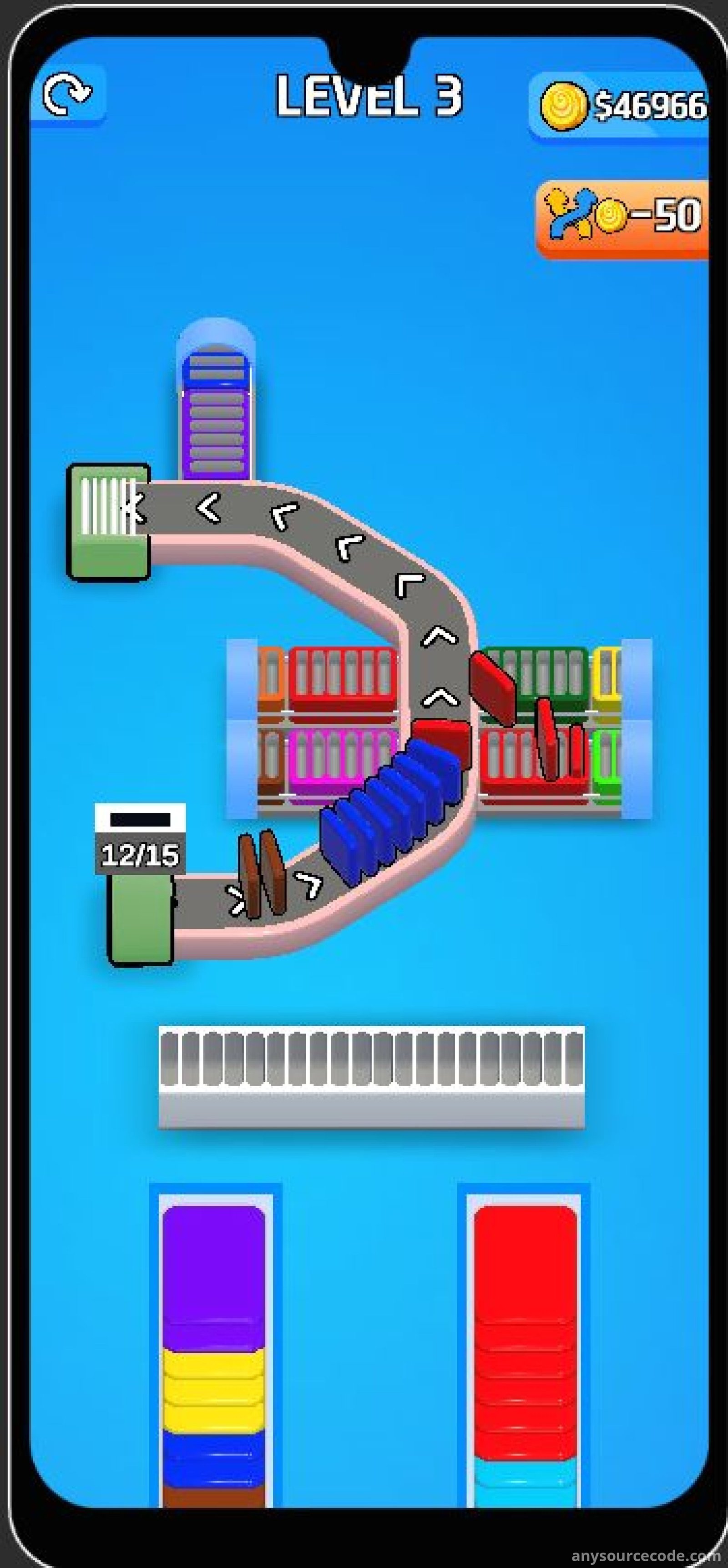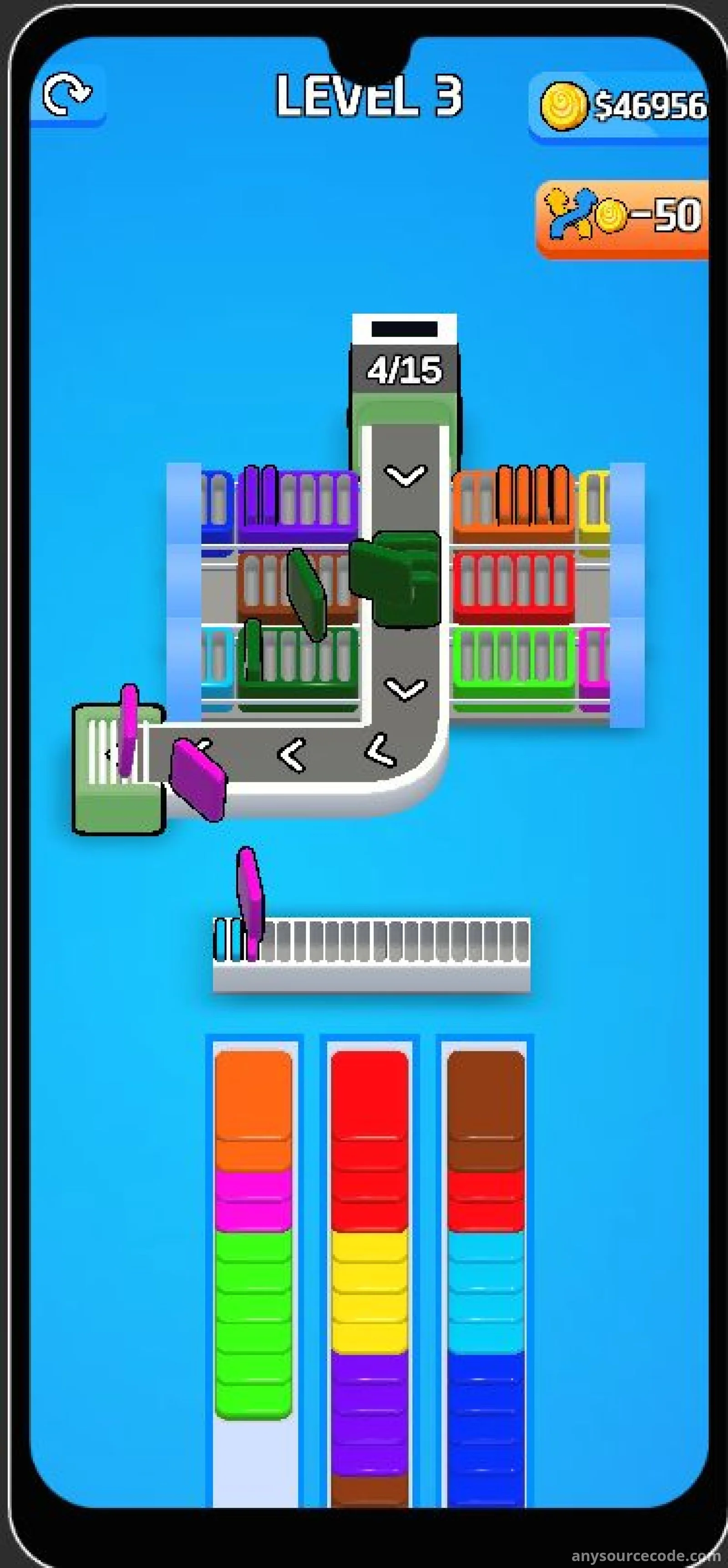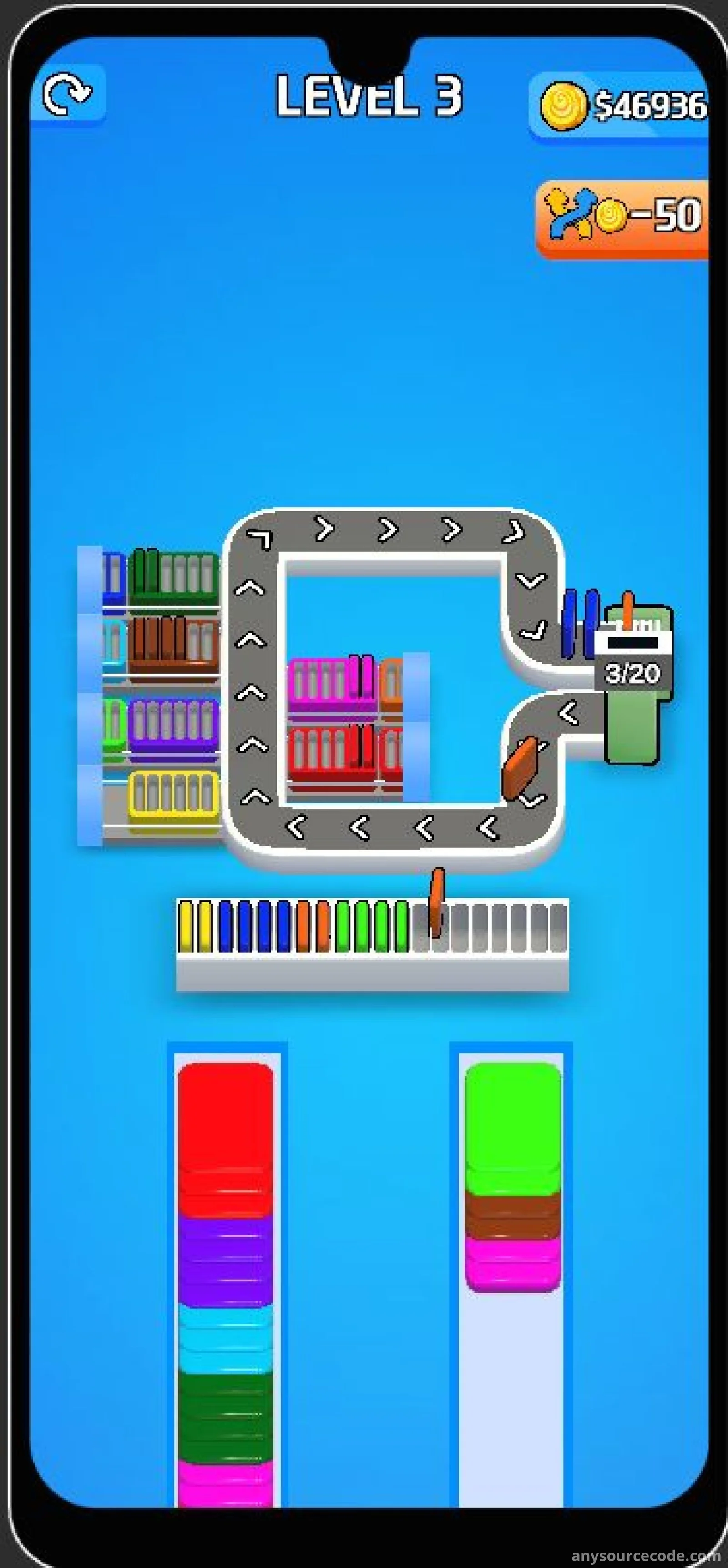 Card Factory Sort Puzzle 3D is a top-trending puzzle game built with Unity, featuring smooth animations, colorful visuals, and highly addictive gameplay. Players sort cards on a conveyor system, fill boxes correctly, and progress through endlessly generated levels that become more challenging over time.