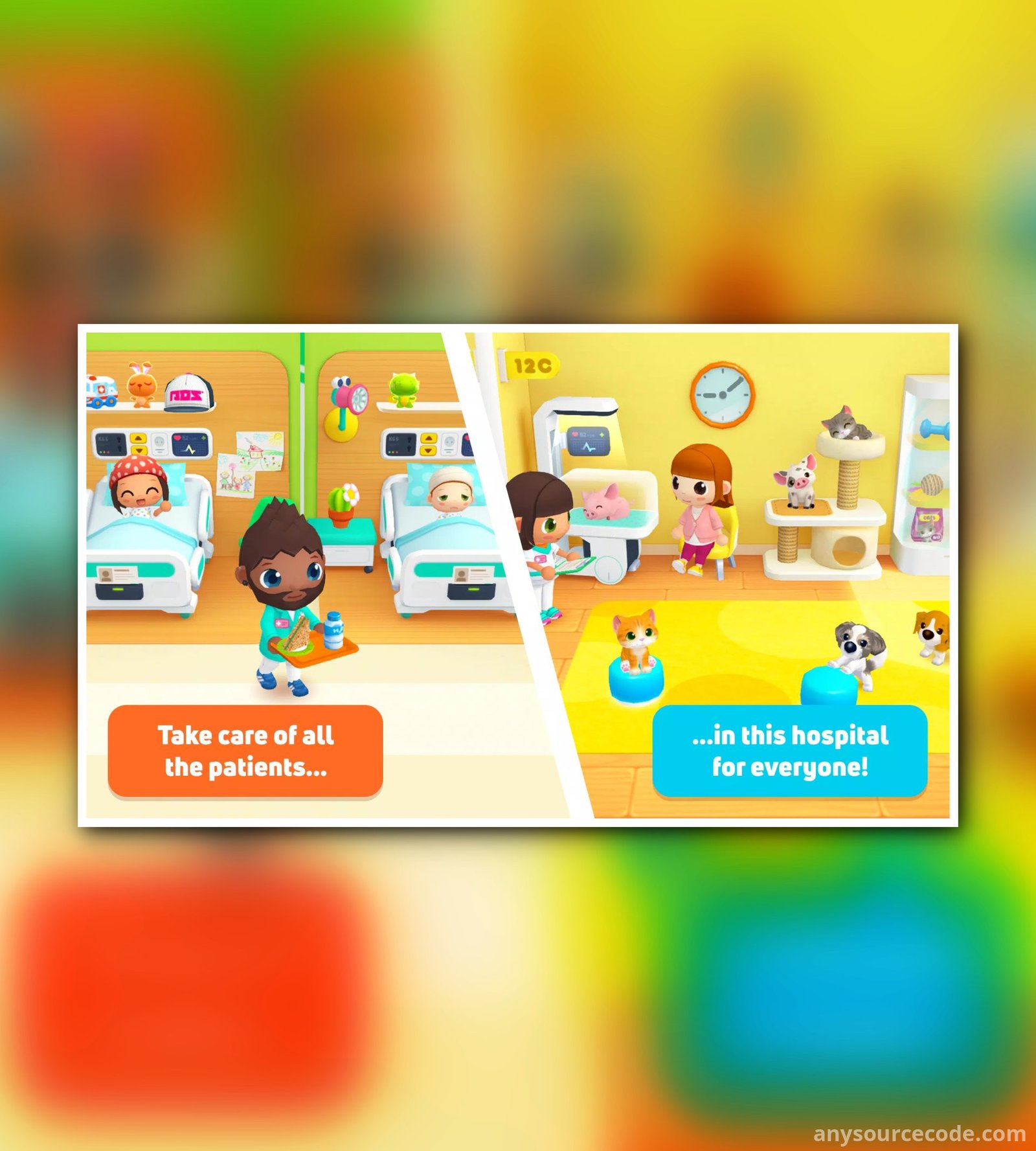 - Pretend-play dollhouse gameplay set in a modern hospital