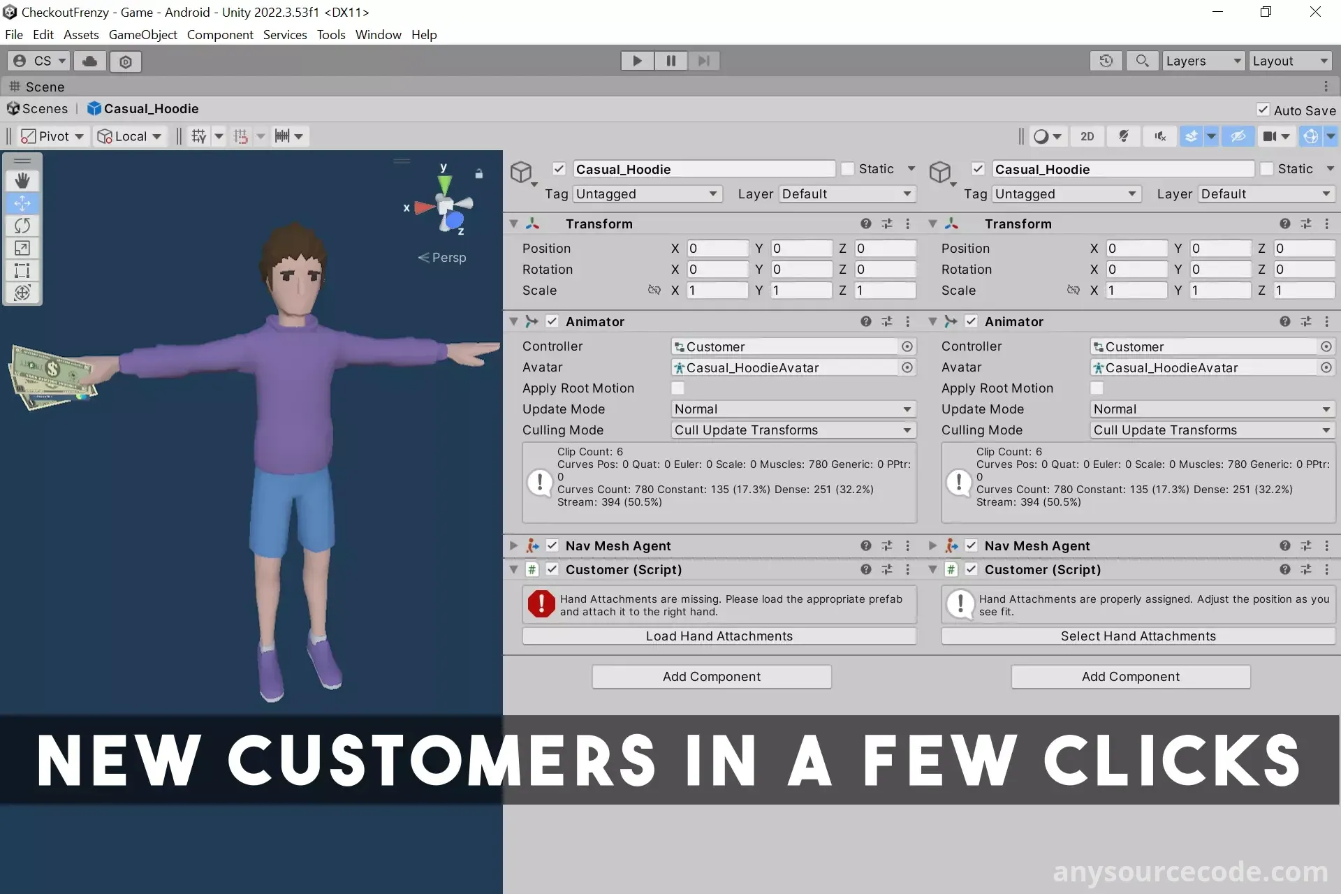 Checkout Frenzy is a complete convenience store simulator template designed for mobile gameplay and optimized for touch controls. This project allows developers to create an engaging retail management experience where players handle products, inventory, customers, and payments in a dynamic store environment. With smart AI customers, modular store building, and a full progression system, Checkout Frenzy is an ideal foundation for mobile or PC store simulation games. Clean code, detailed documentation, and performance optimization make it suitable for both learning and commercial projects.