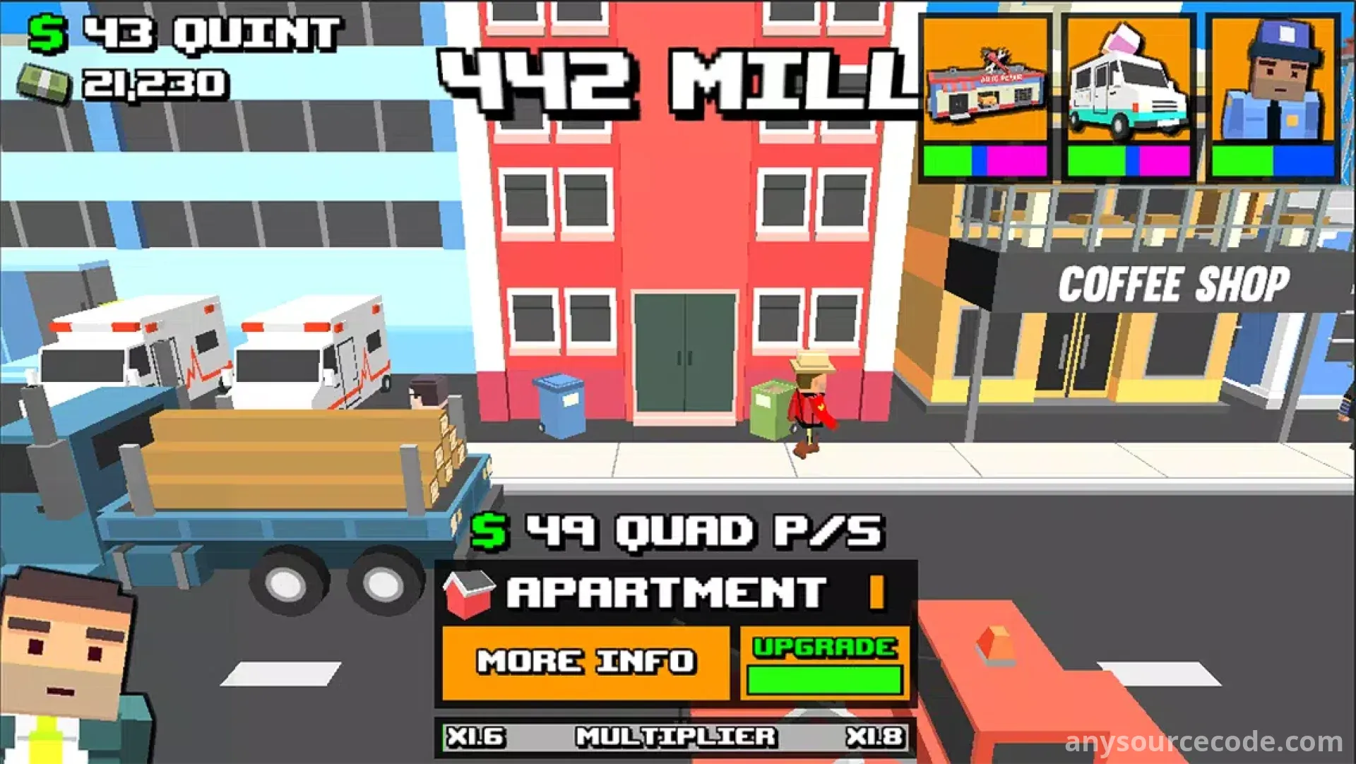 Plan your layout wisely: firetrucks power up fire stations, cafes enhance nearby buildings, and ice-cream trucks spread happiness. Watch your city evolve with smart decisions and endless tapping. Featuring offline progression, tons of upgrades, and over 90 unique unlockables, Clicker Town delivers hours of addictive idle gameplay in a charming cube world.