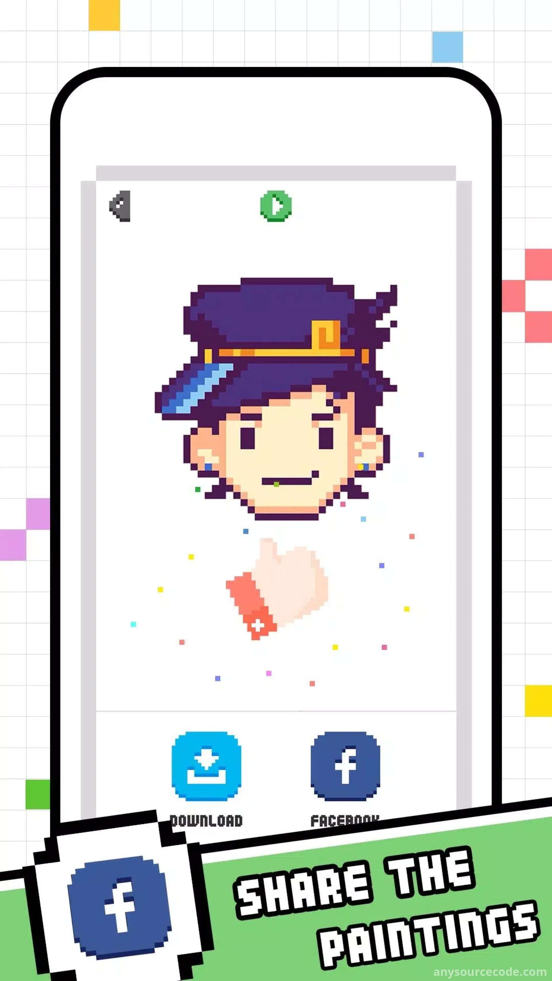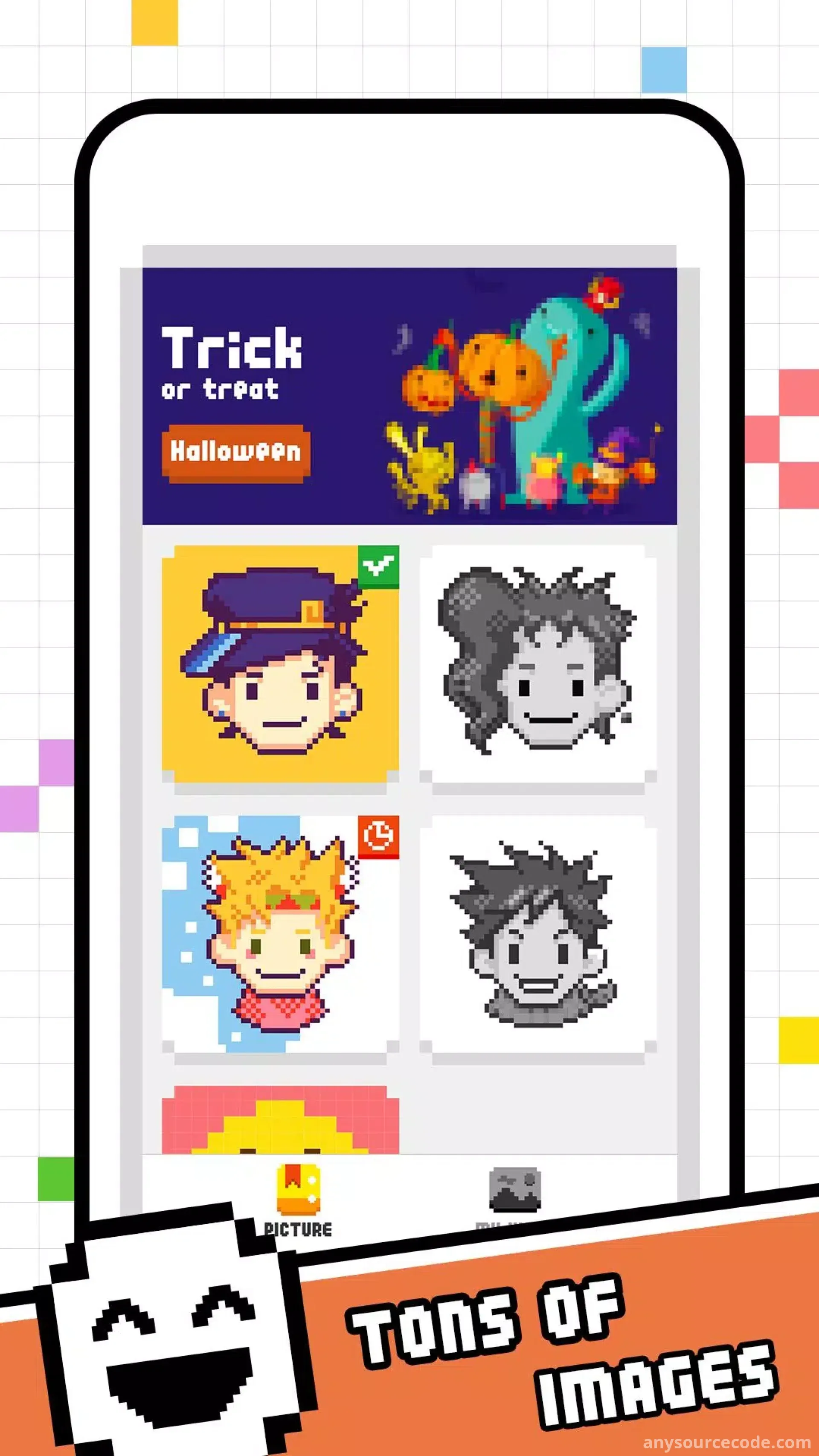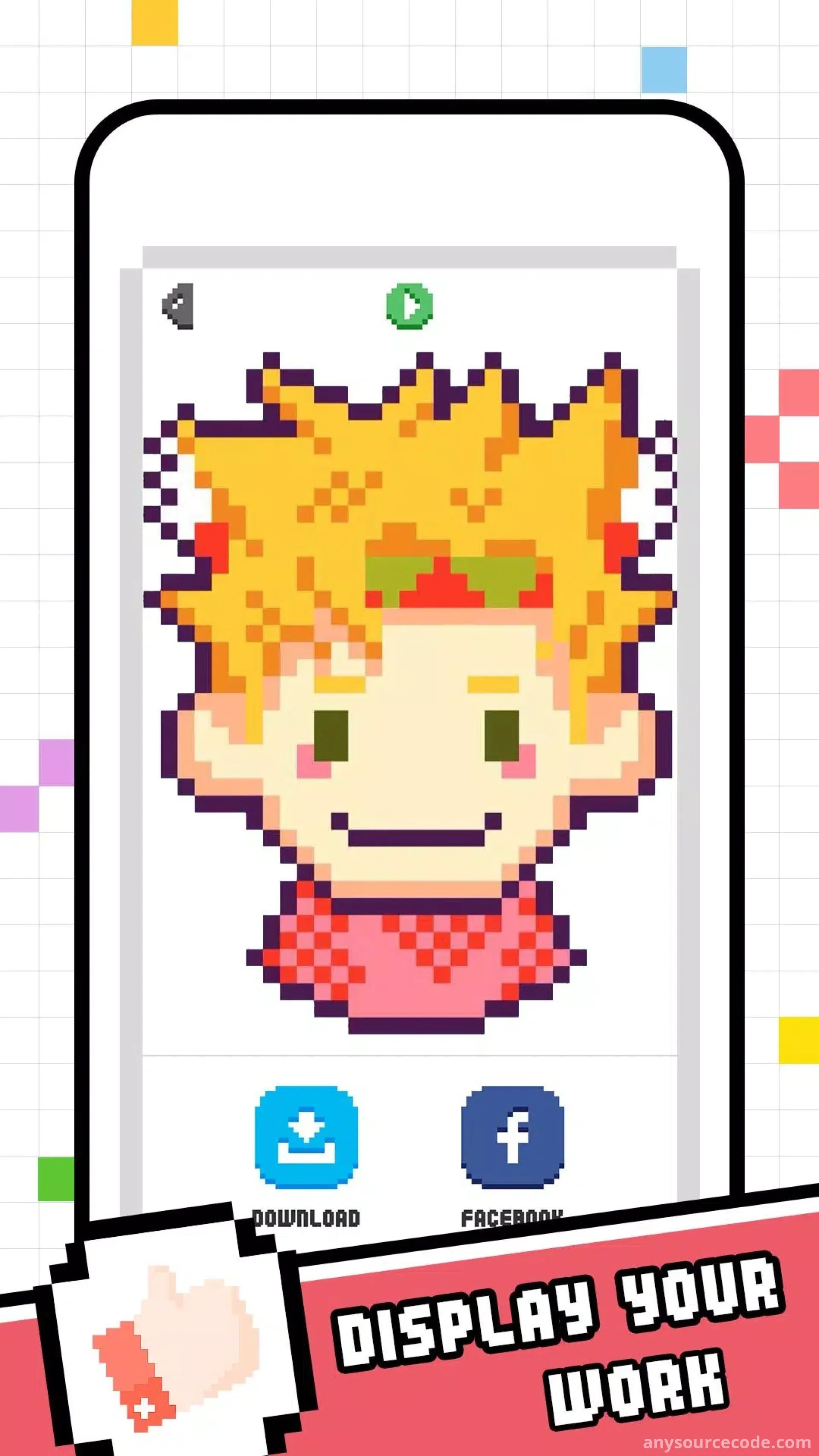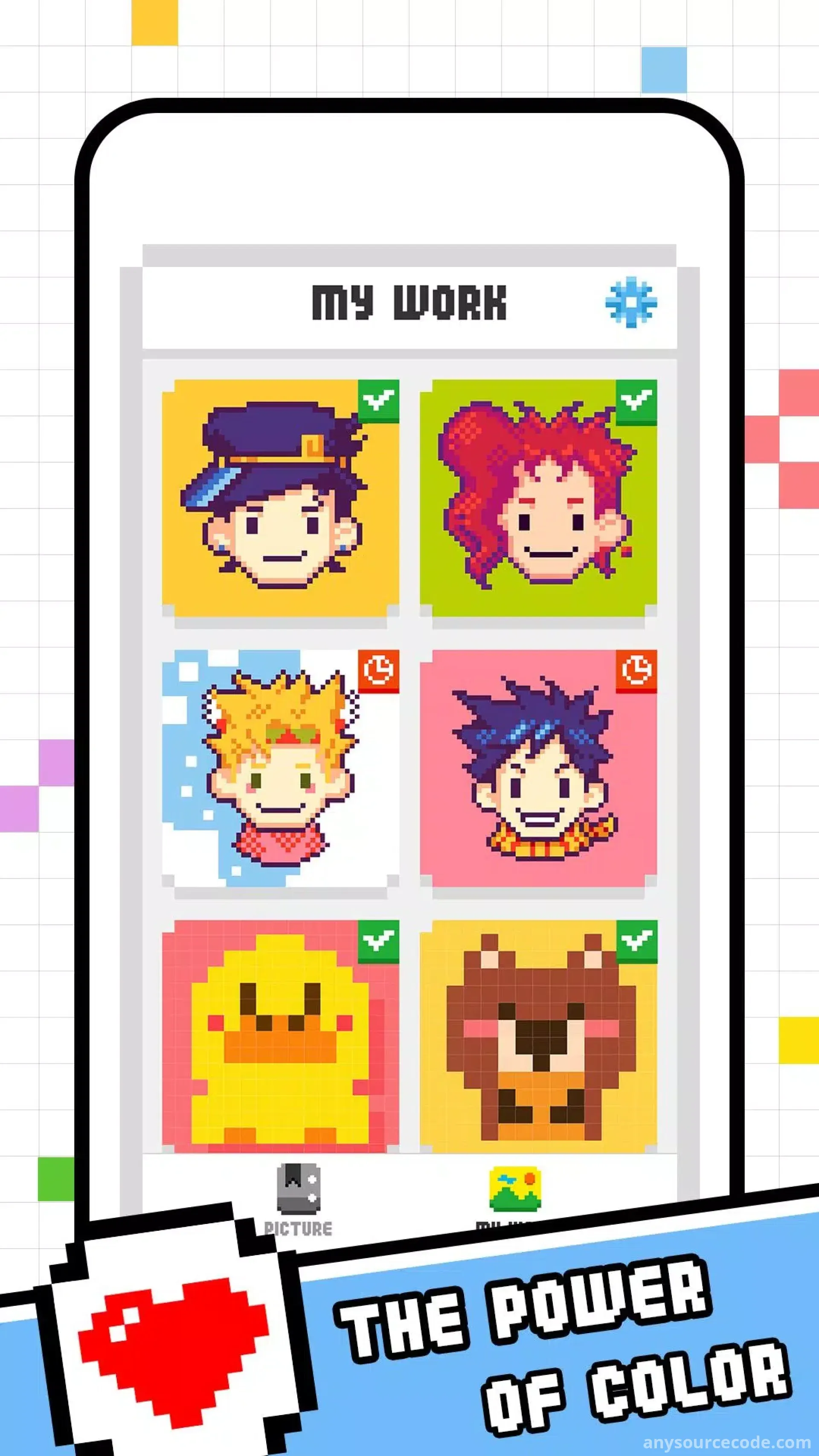 - Many unique pixel art images, including cartoons, anime, animals, automobiles, and more