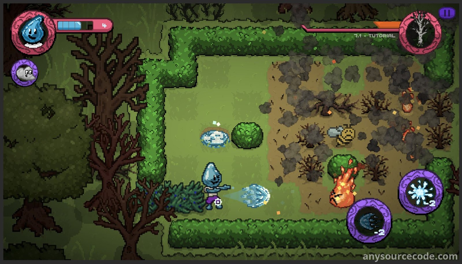 - Unique elemental mechanics (water, fire, ice, wind)