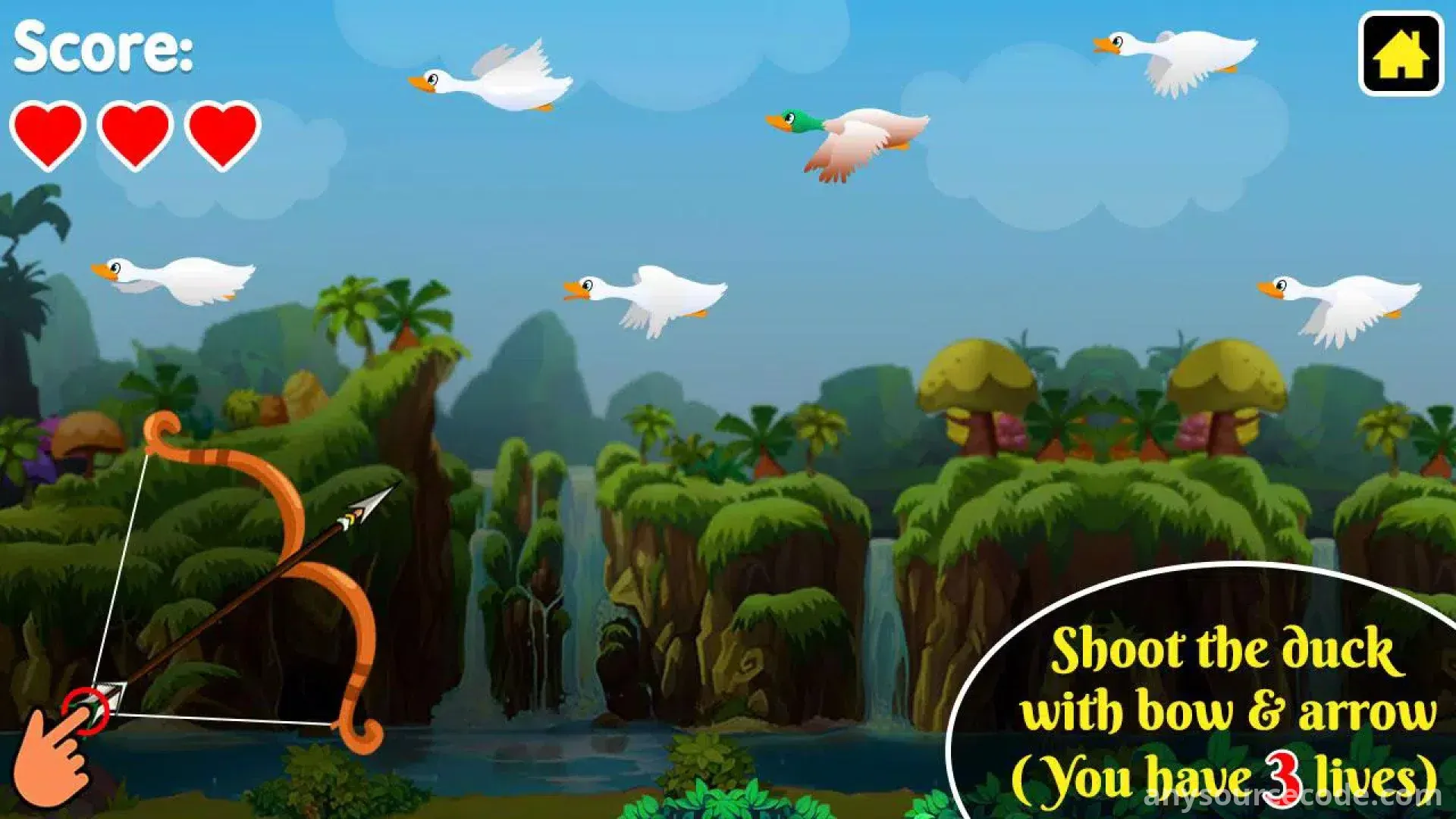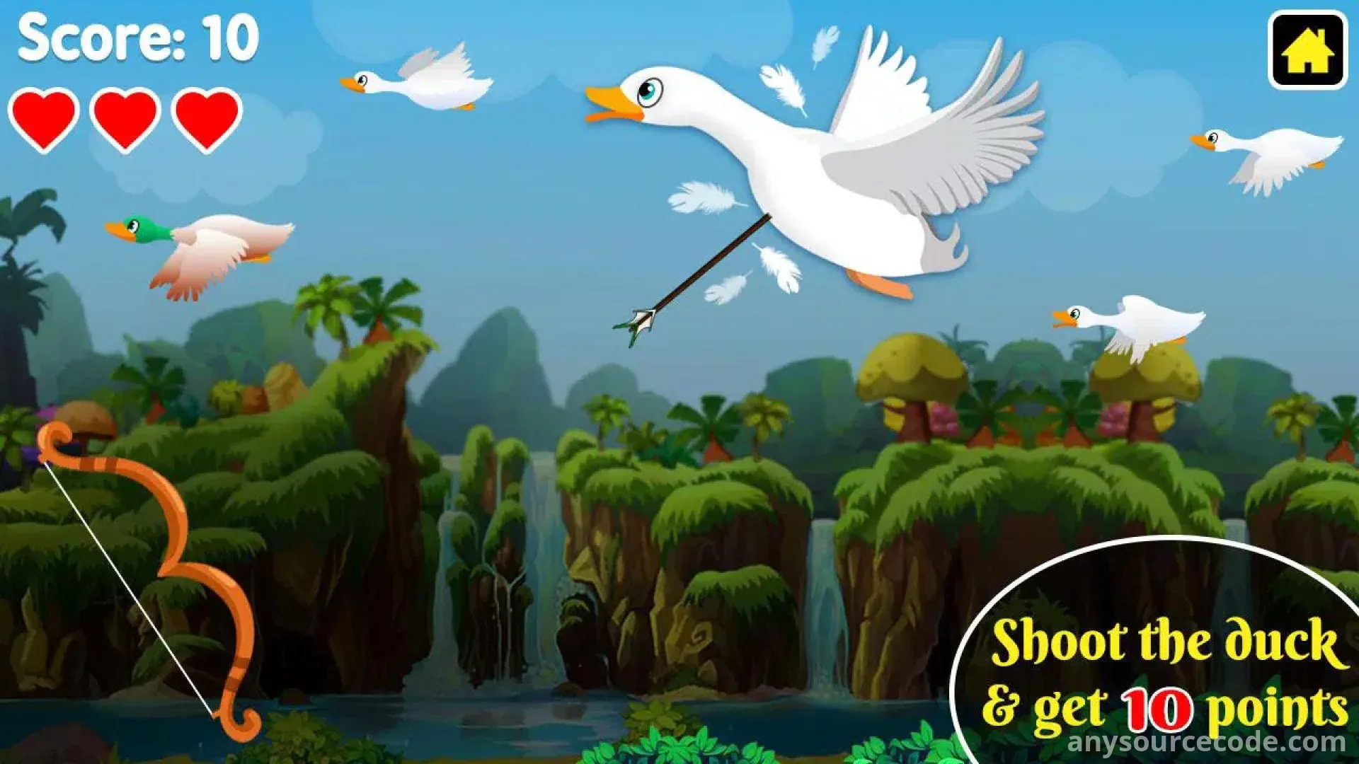- Bow and arrow duck hunting gameplay