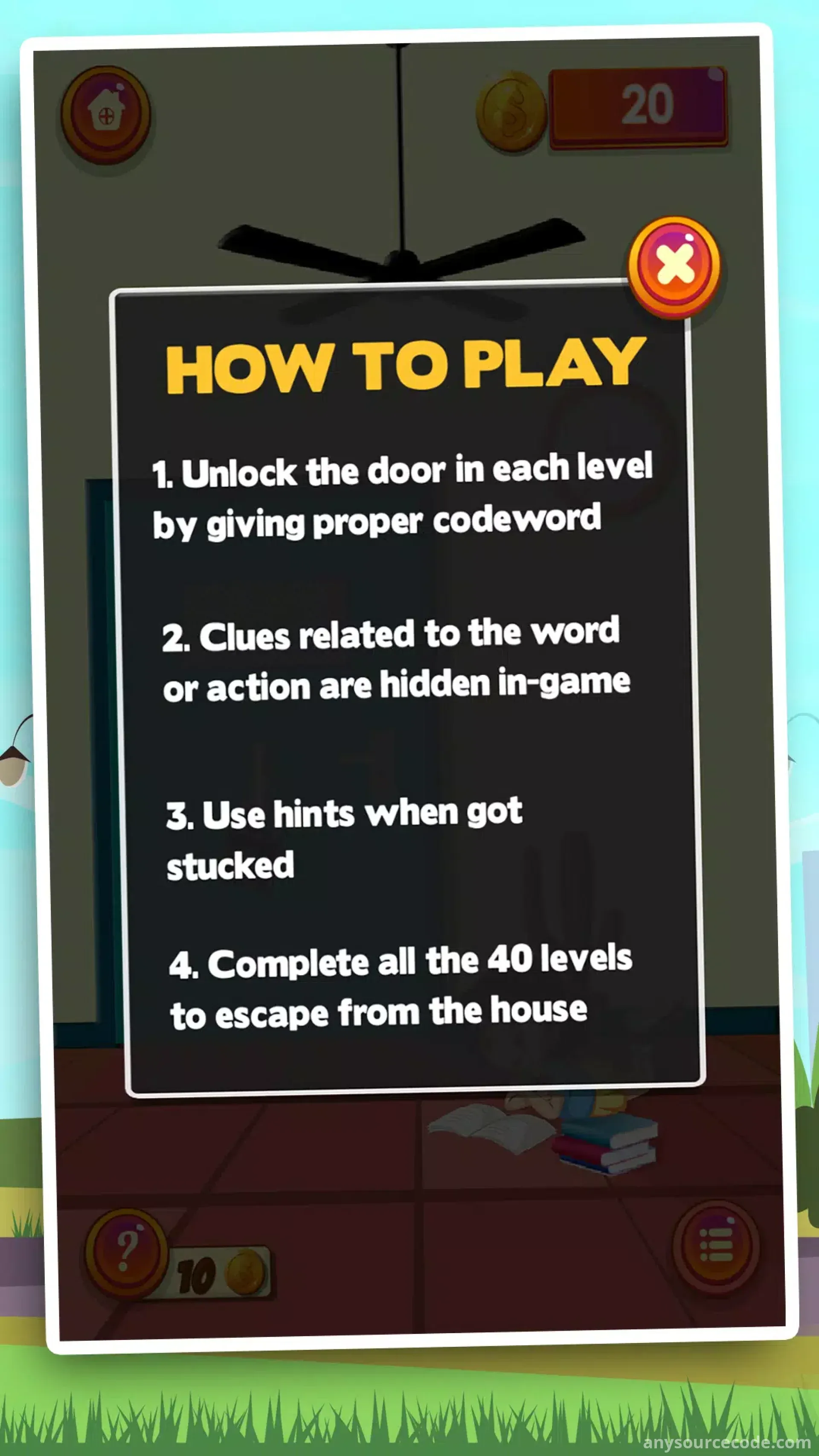 Escape is an addictive puzzle game where you must solve word challenges to escape from a locked room. Trapped inside a mysterious place, you need to observe clues, think logically, and find the correct answers to unlock doors and progress further.