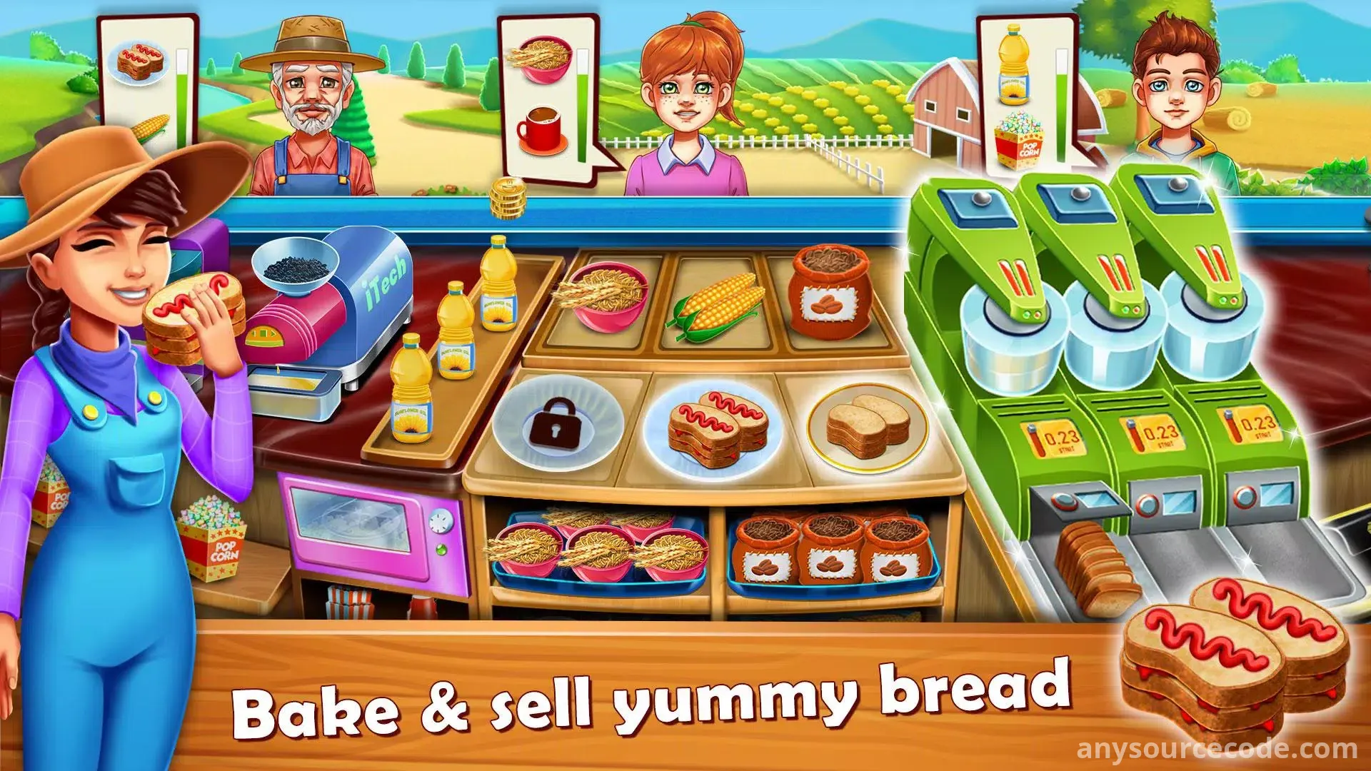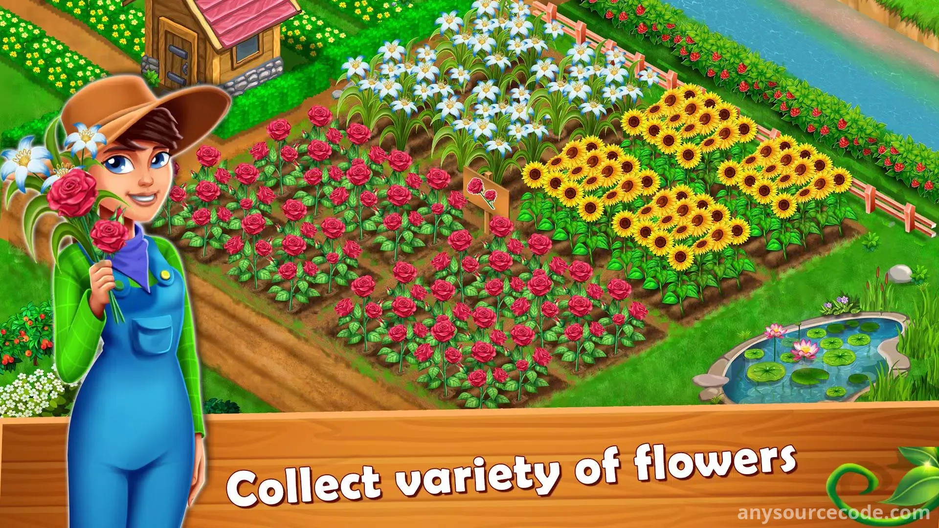 - Sell goods to upgrade and expand your farm town