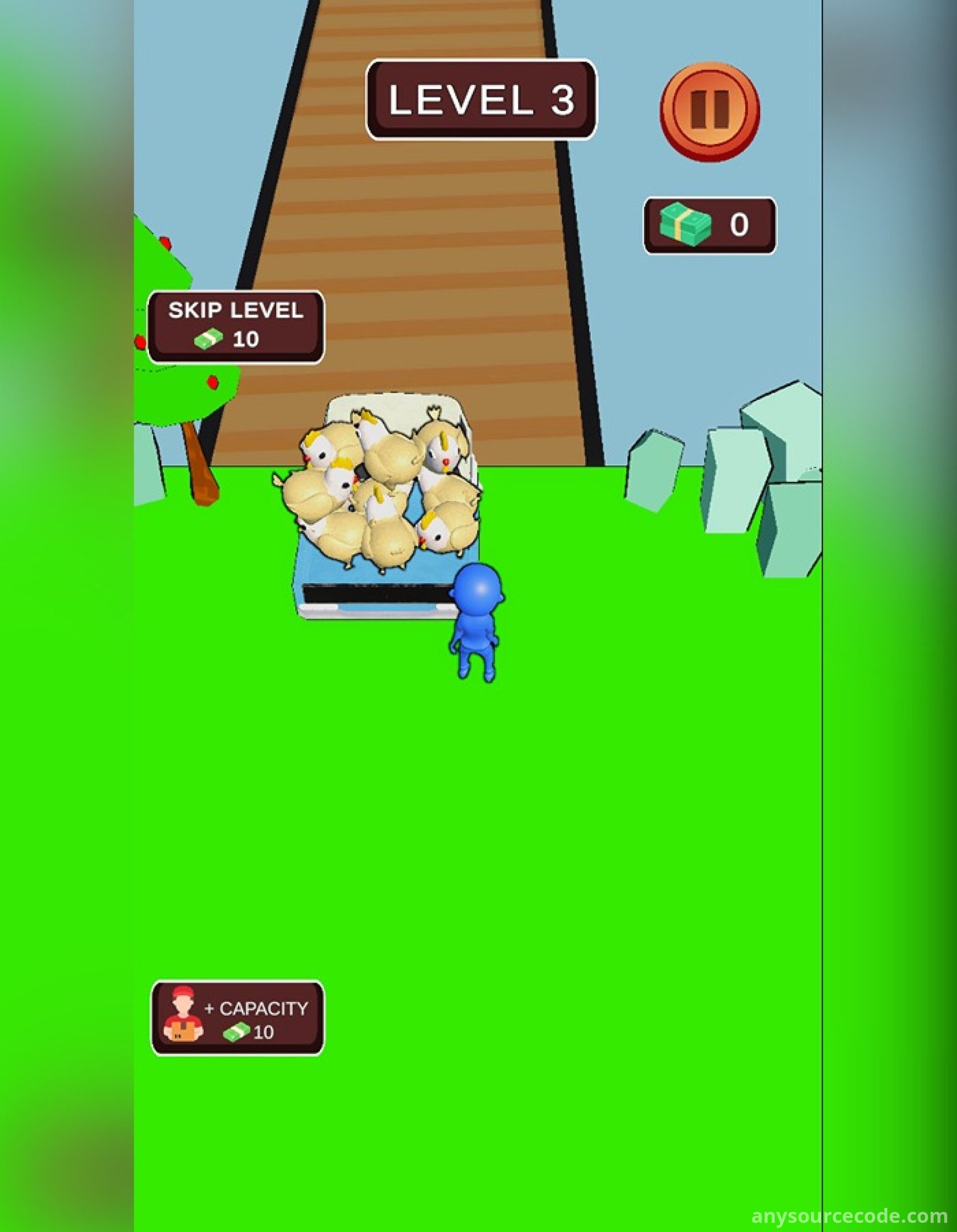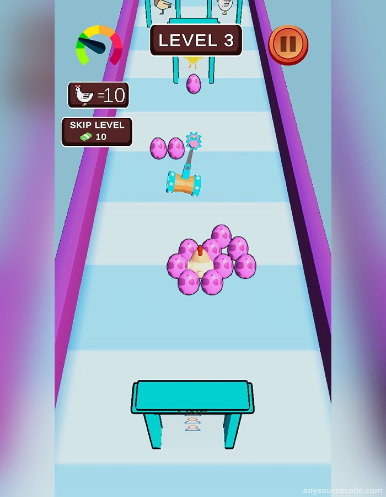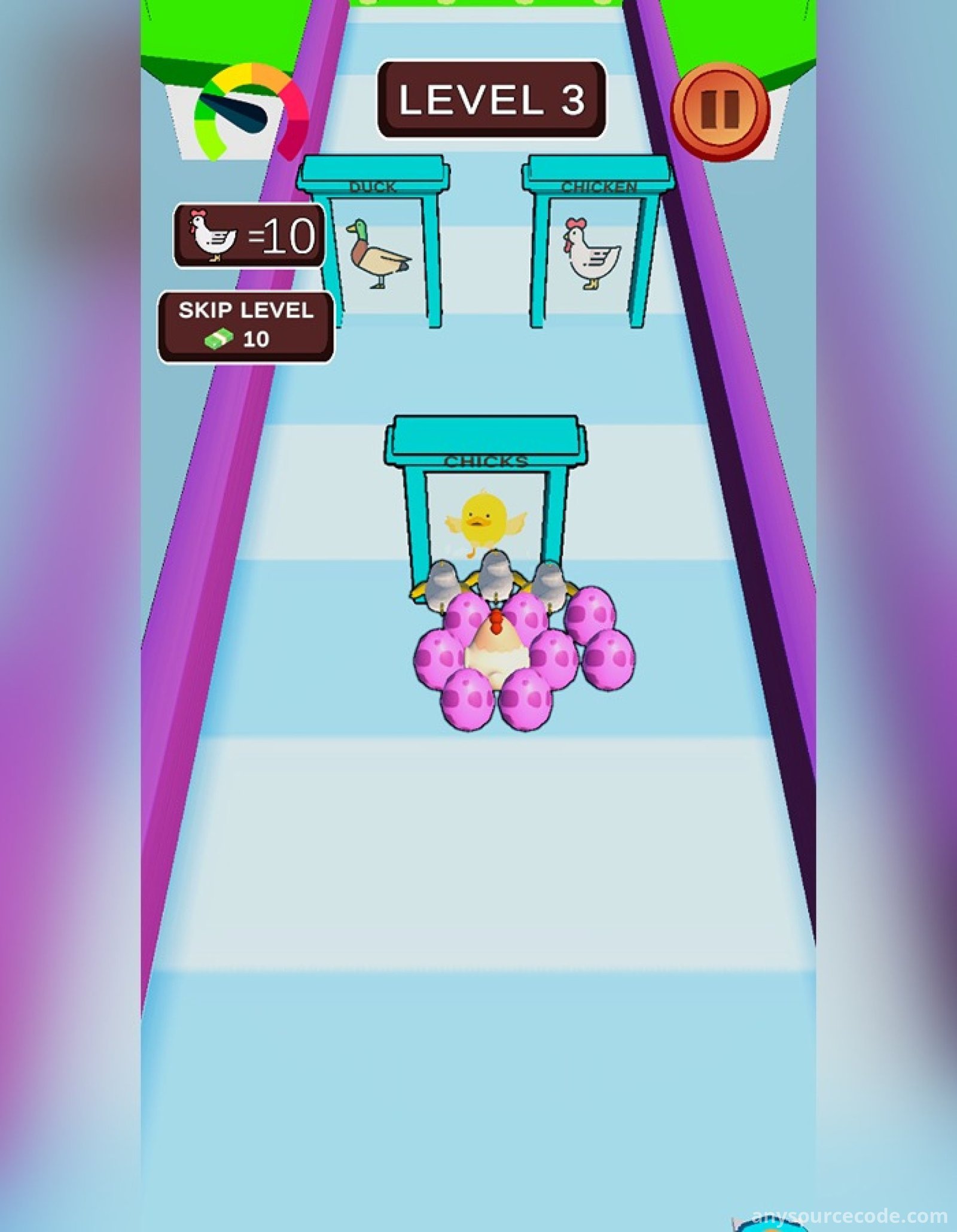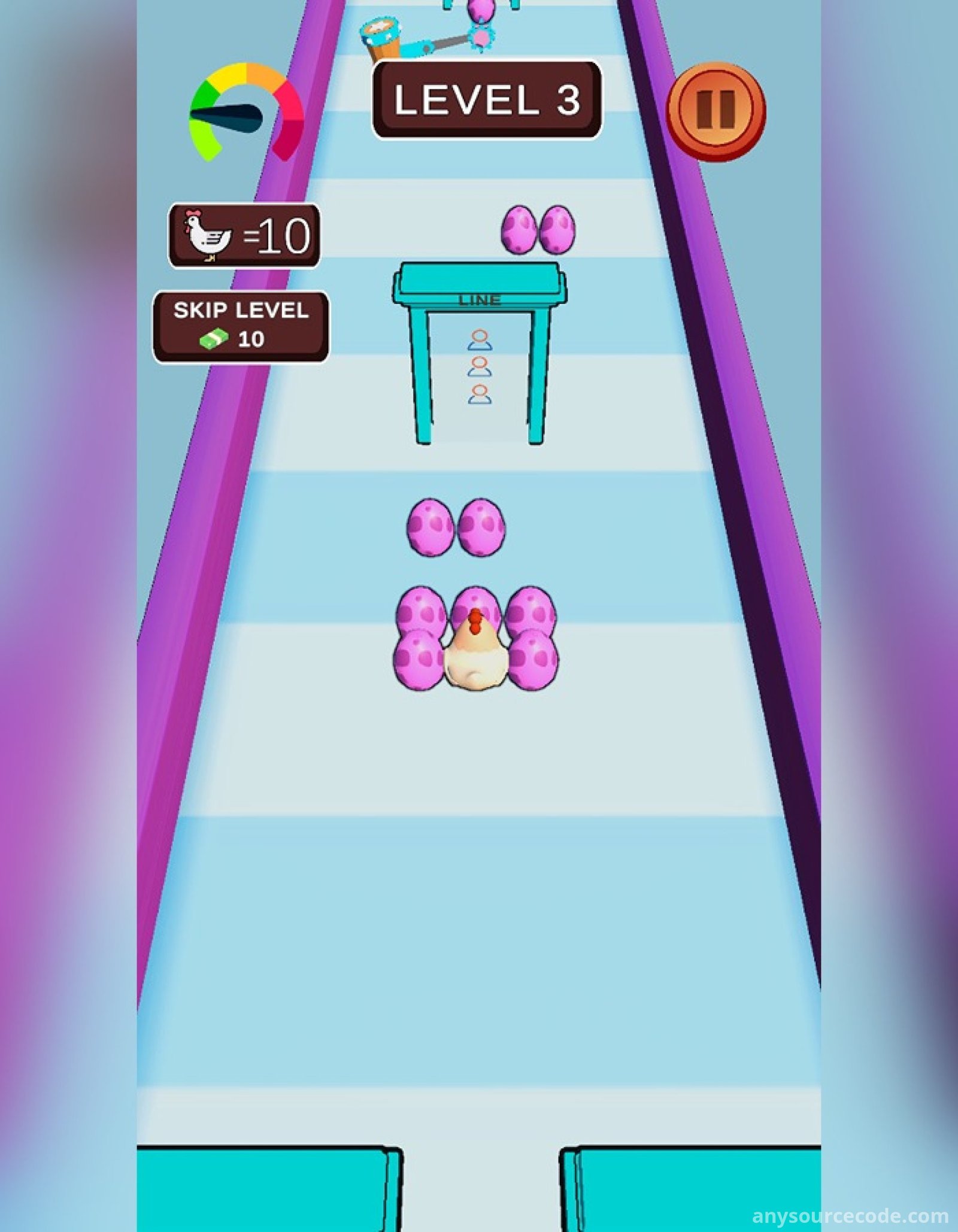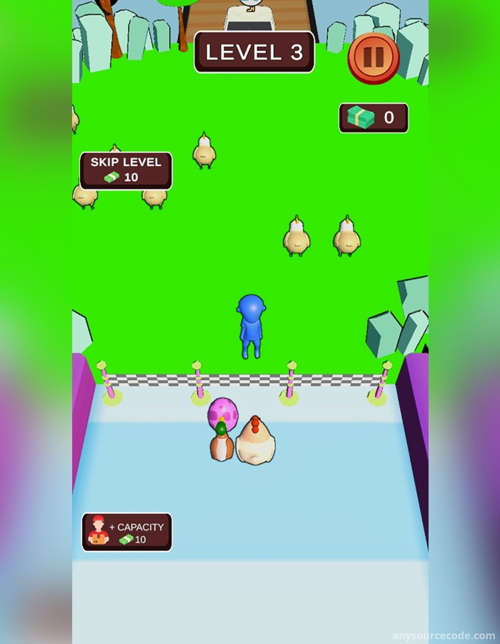 Feather Farm Frenzy is a complete hyper-casual egg collection runner game template developed in Unity. Players control a hen or duck that automatically runs along a straight path while collecting eggs that stack behind the character. A needle-style counter updates in real time to show gains and losses, providing clear and satisfying feedback. With transformation gates, obstacles, level goals, and a light progression system, the game delivers a simple, relaxing, and engaging hyper-casual experience ready for reskinning or fast publishing.