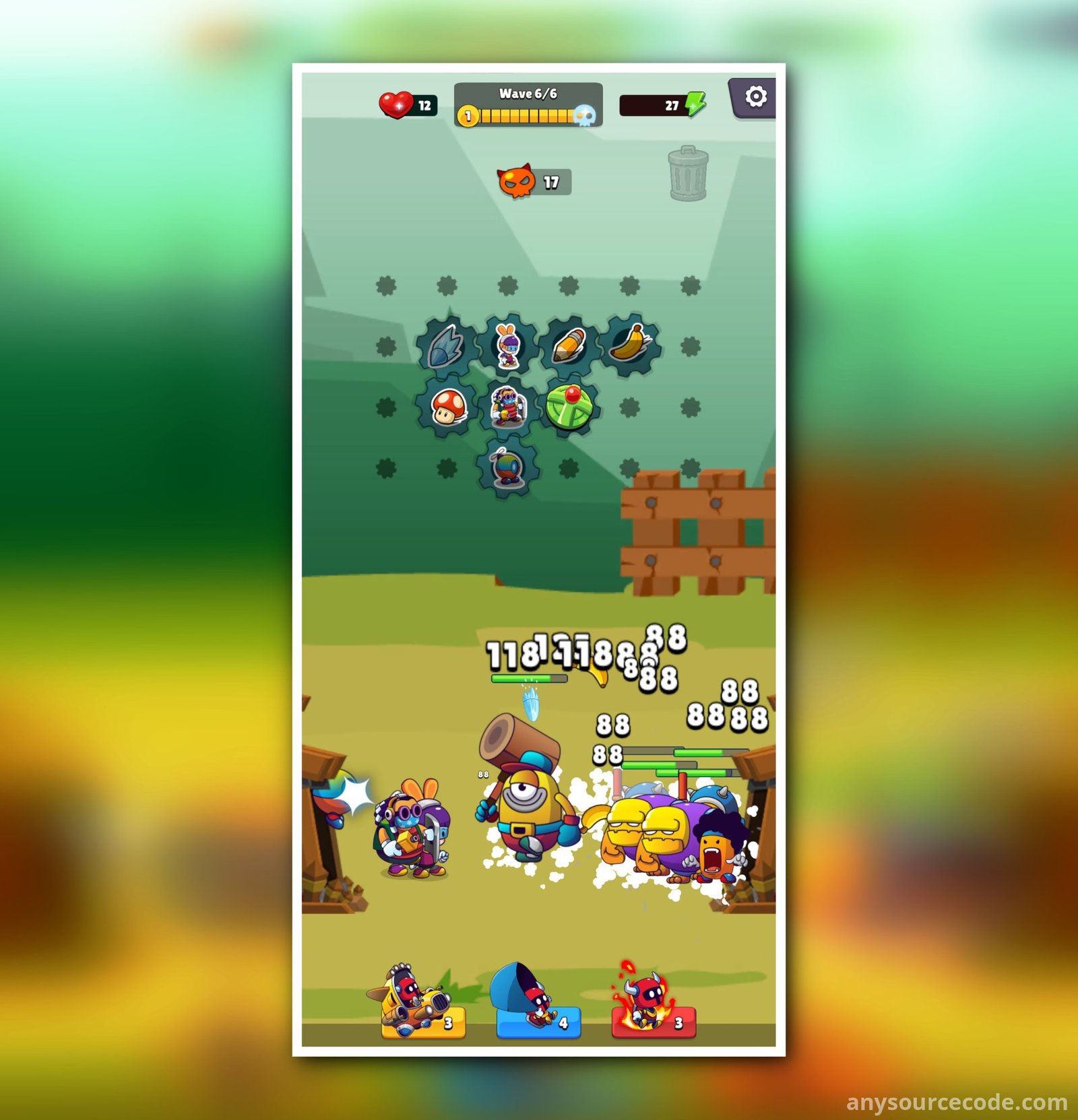 Gear Fight is a tactical card-based defense game where you combine military cards and skill cards to build powerful formations. The project includes 50 ready levels and two game modes (Boss Battle and Stage Challenge). Core gameplay is complete and easy to extend — add levels and customize cards without programming.