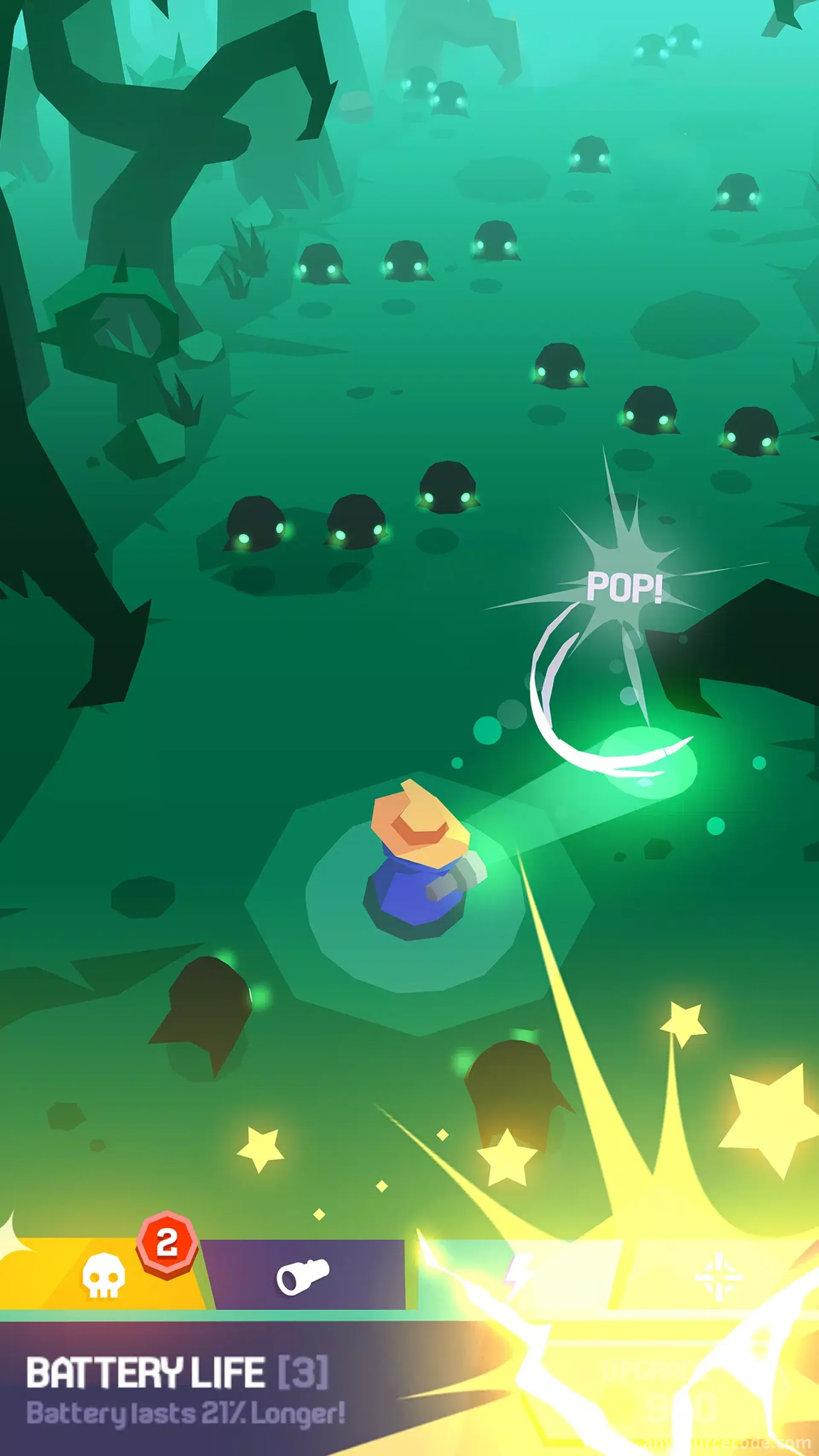 Upgrade your damage, battery life, and critical hits while exploring the mysterious forest, unlocking treasure chests, and collecting gold fairies. You can even earn coins while you sleep, making your progress continuous and rewarding.
