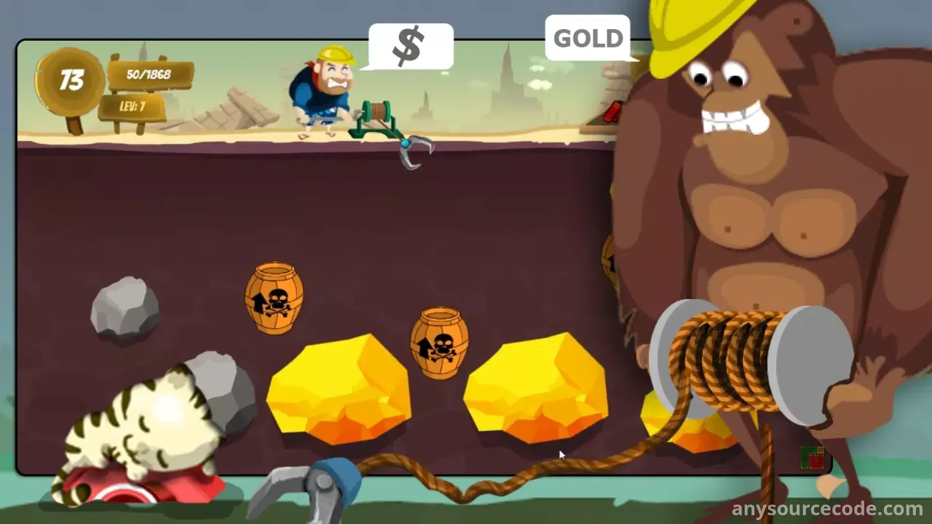 - Classic gold miner gameplay with modern improvements