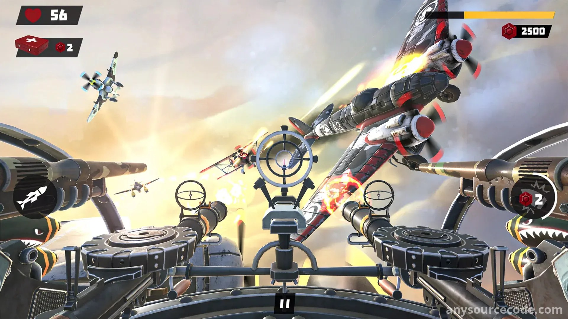 Gunner War – Air Combat Sky puts you in the cockpit of a powerful World War II bomber for an intense and action-packed aerial combat experience. Become an elite air gunner as you destroy enemy fighter jets, warships, and ground bases using missiles, bombs, and machine guns. Fly through hostile skies, defend your allies, and strike back with precision and power.