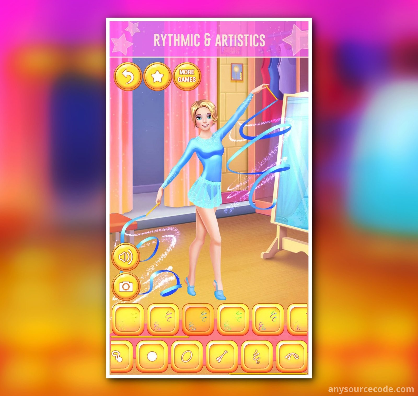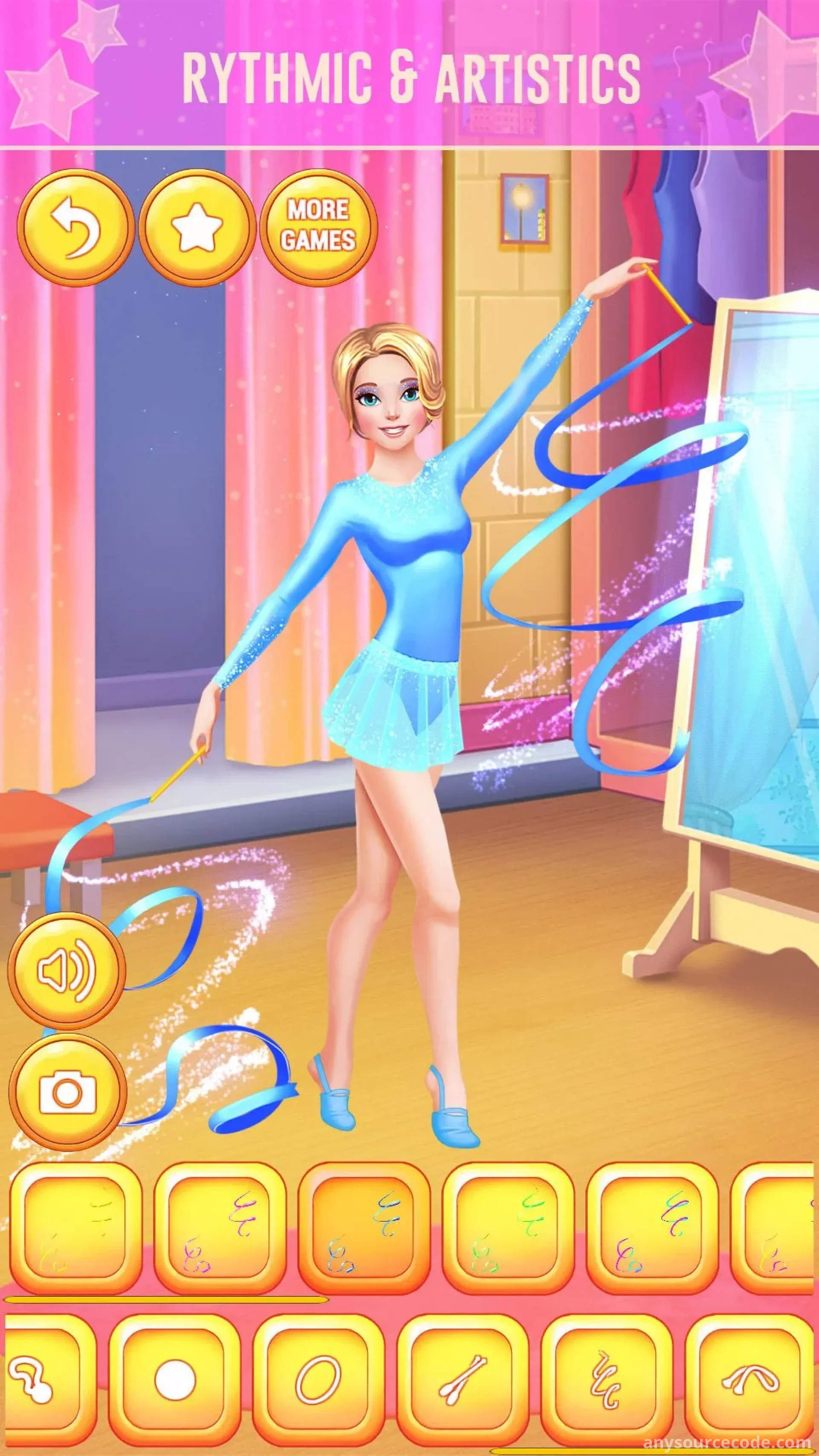 - Dress up gameplay with a gymnastics theme