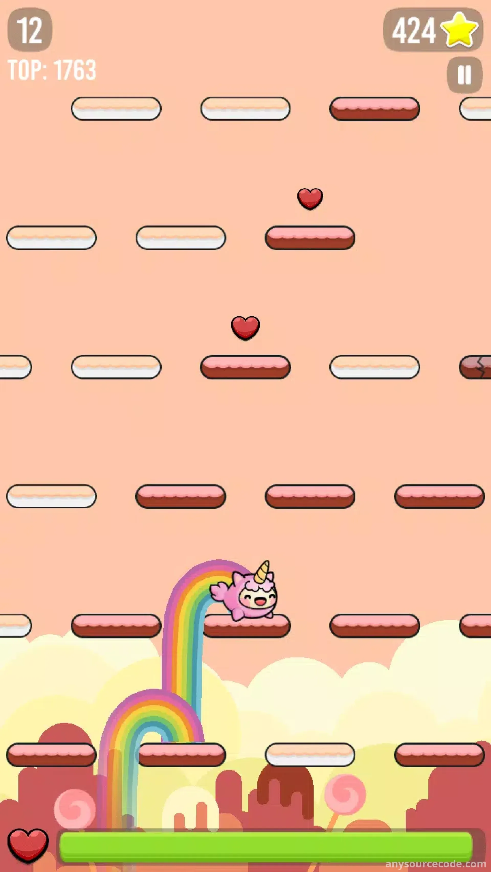 - Collect hearts, stars, piñatas, and costumes while hopping upward.
