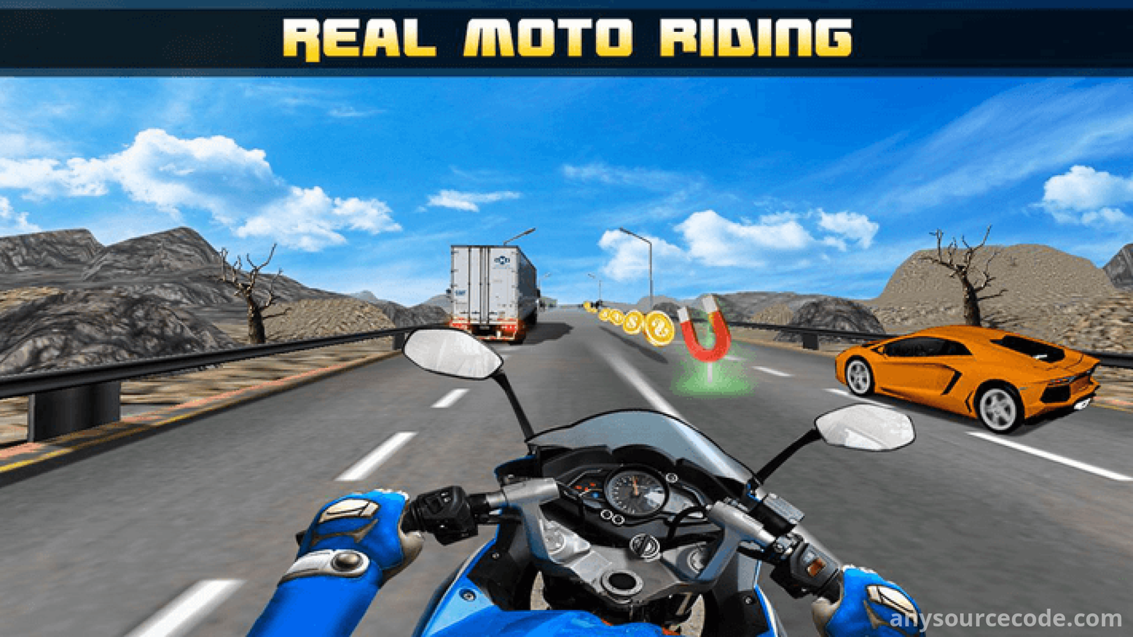 Highway Bike Rider: Traffic Racer is a fast-paced and thrilling bike racing source code where players experience the excitement of riding heavy bikes through intense traffic. The goal is to survive the rush, avoid collisions with cars, buses, and other bikes, and travel as far as possible to earn cash. With smooth handling, turbo speed boosts, and endless gameplay, this source code delivers a highly addictive racing experience that’s ready to be customized and published.