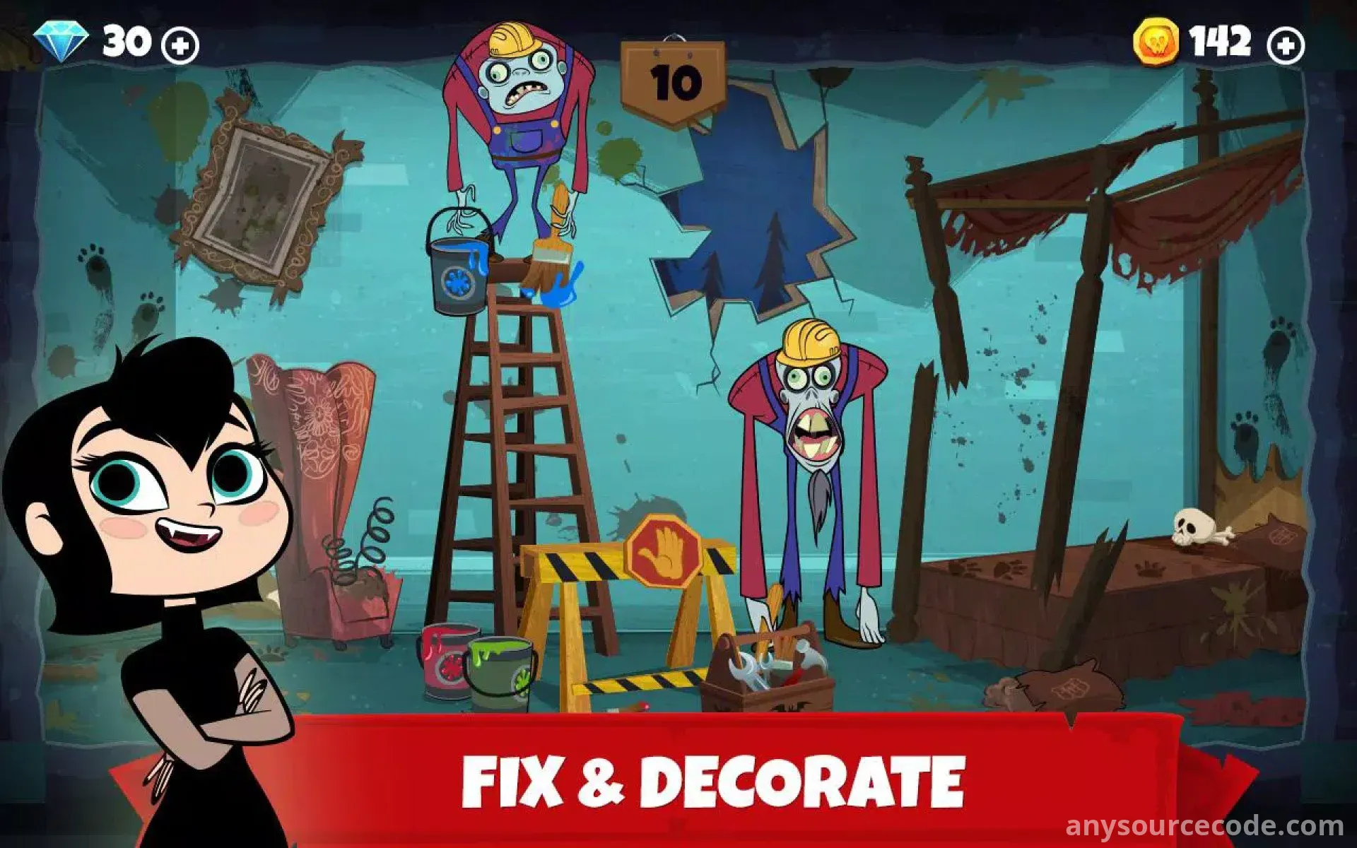 - Collect coins and resources to repair and upgrade the hotel