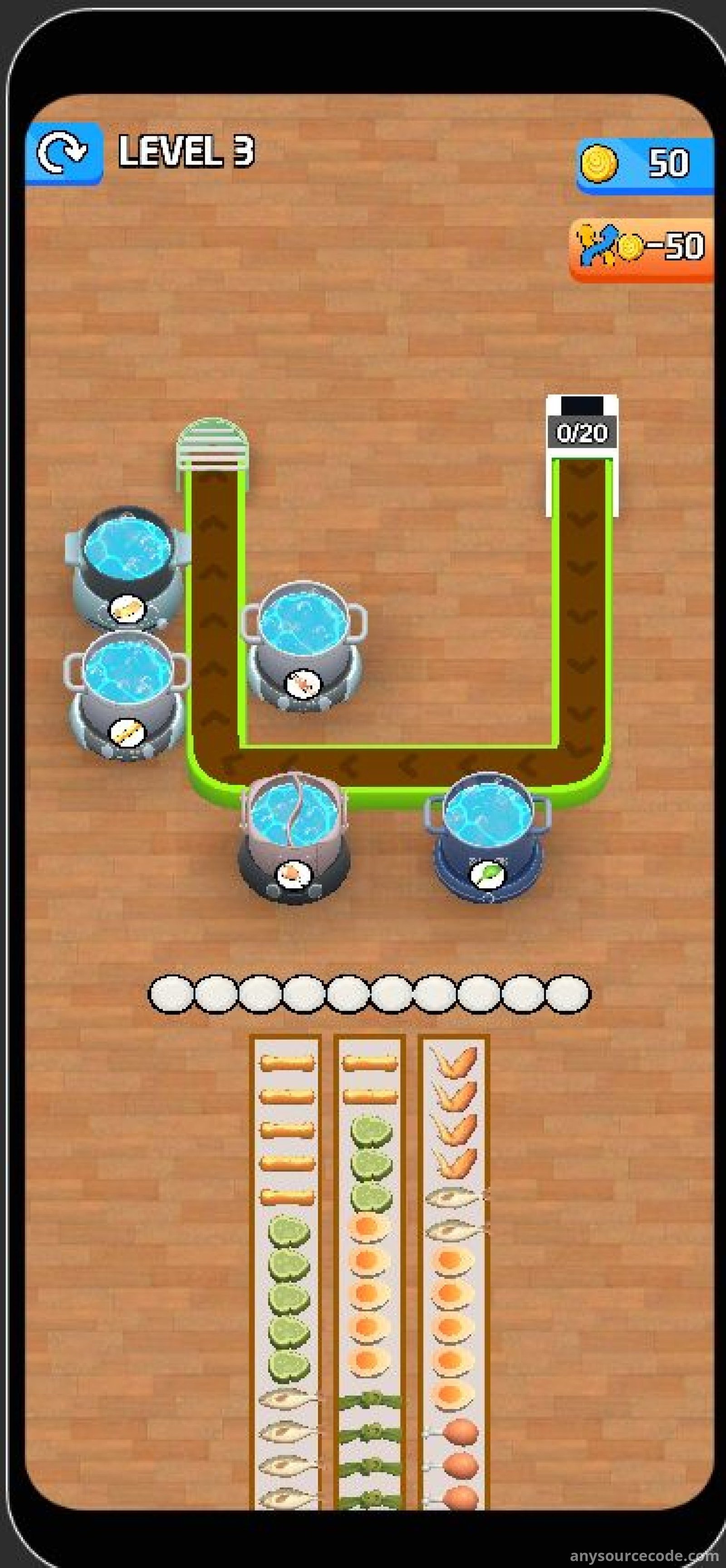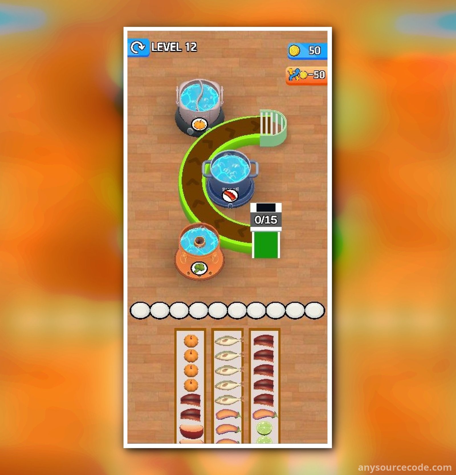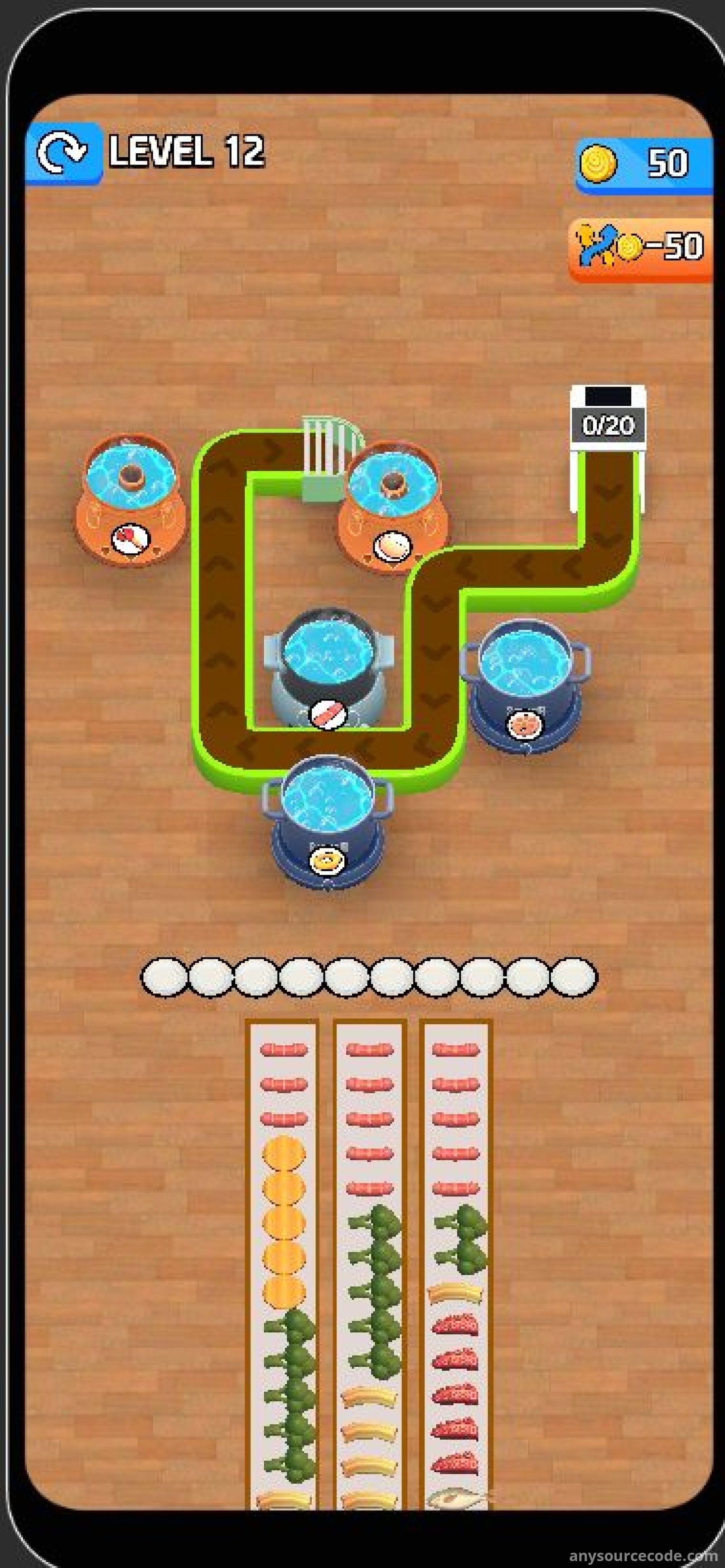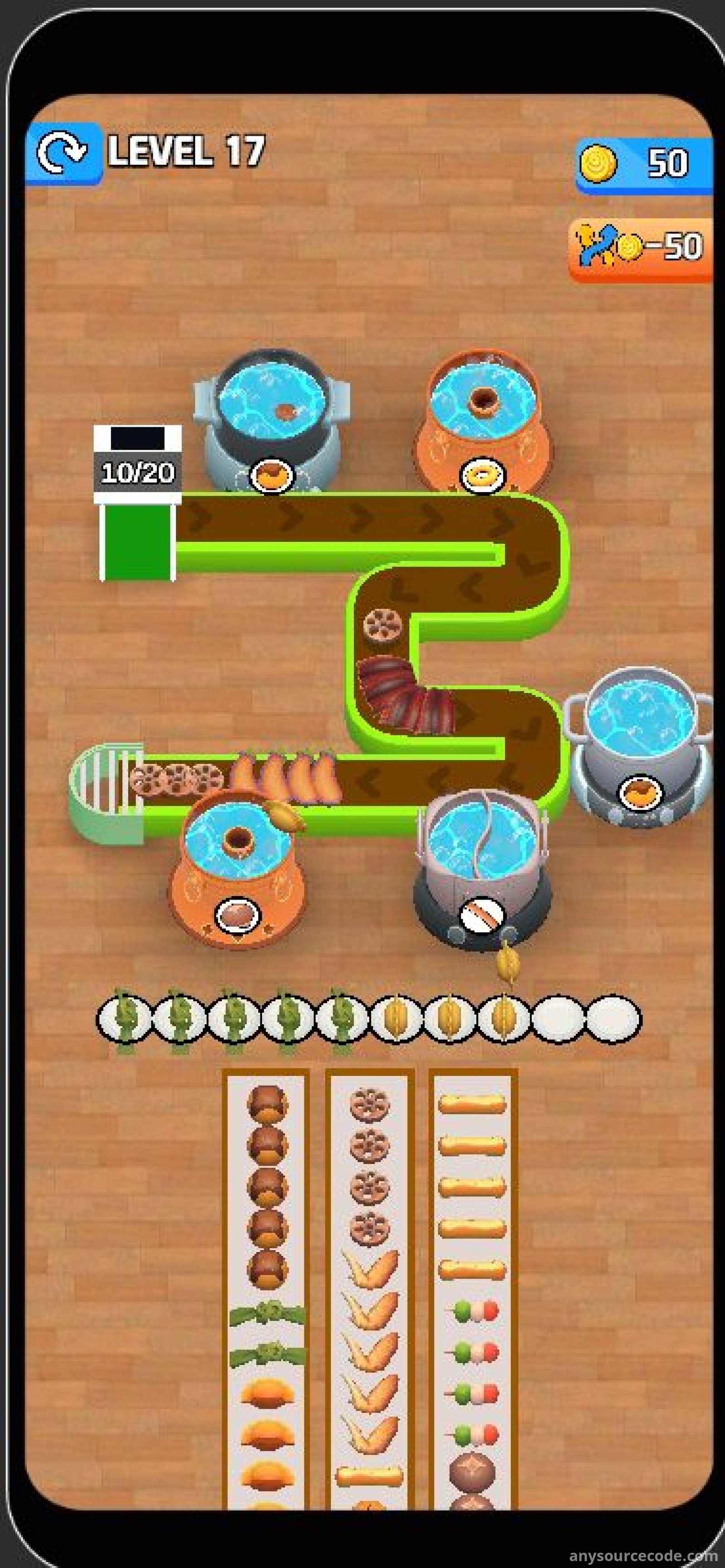 Hot Pot Flow Food 3D is a top-trending Unity game template featuring smooth animations, vibrant graphics, and addictive conveyor-style gameplay. Players tap different foods to send them along the conveyor belt and fill the correct hot pots. The project includes full Unity source code, integrated monetization systems, and is optimized for fast publishing. With unlimited randomly generated levels and strong retention mechanics, this template is ideal for developers looking to launch a polished mobile game quickly.