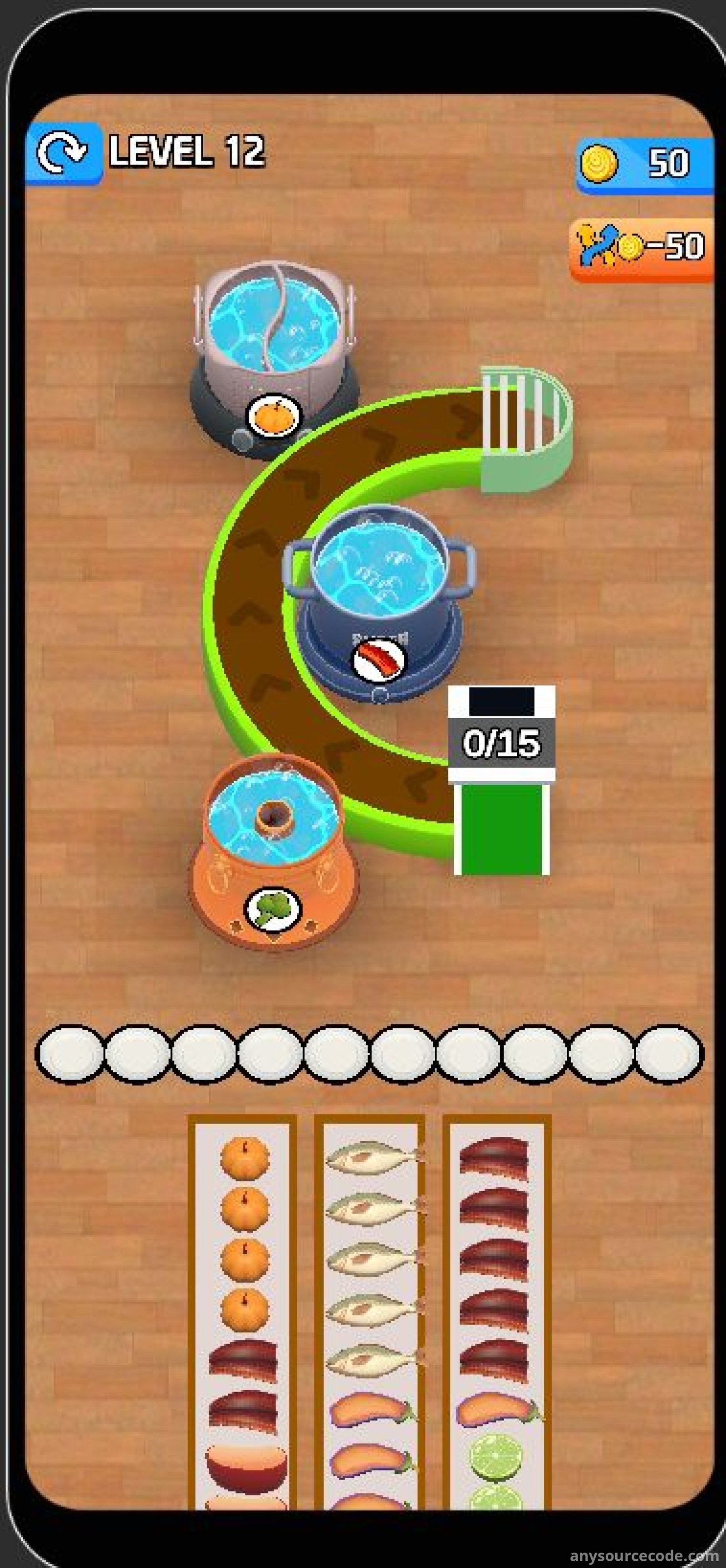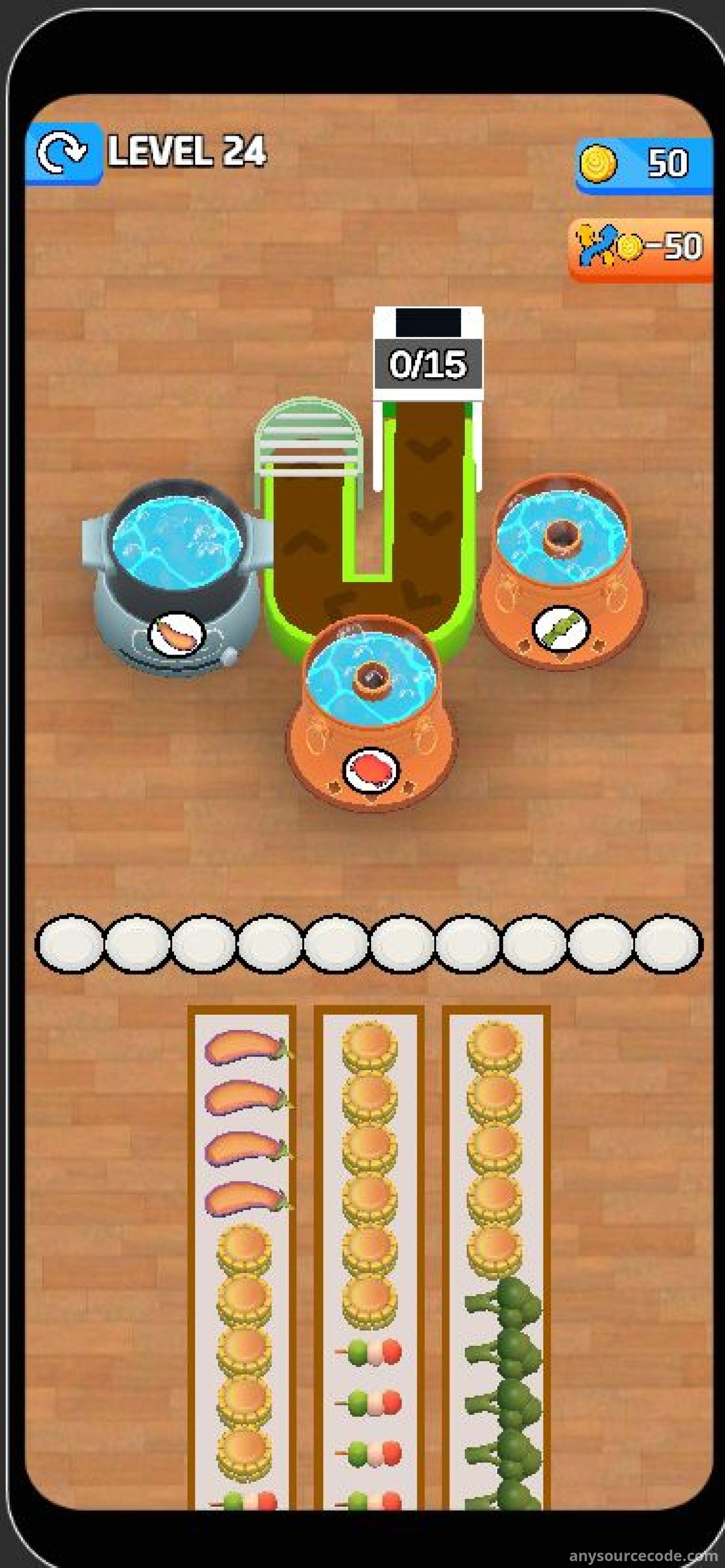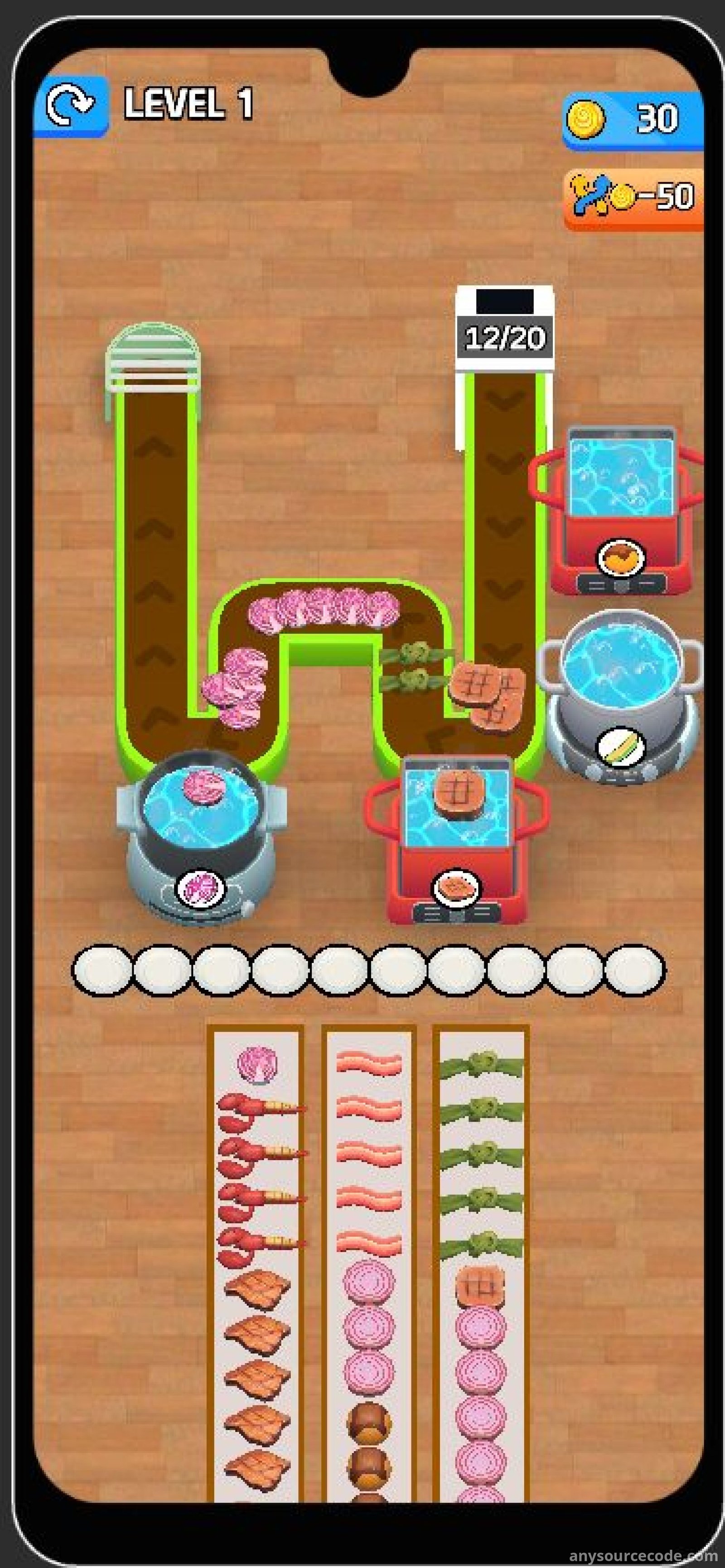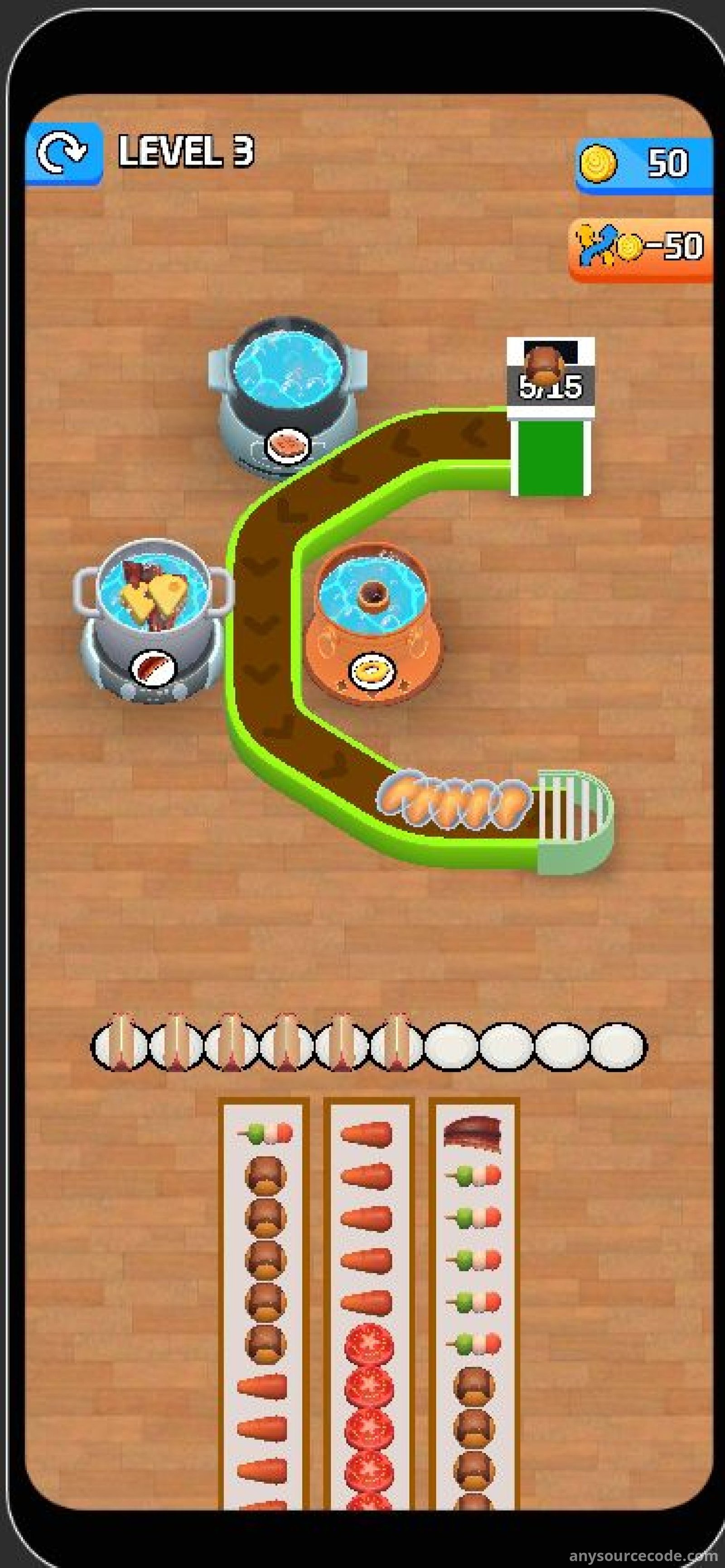 Hot Pot Flow Food 3D is a top-trending Unity game template featuring smooth animations, vibrant graphics, and addictive conveyor-style gameplay. Players tap different foods to send them along the conveyor belt and fill the correct hot pots. The project includes full Unity source code, integrated monetization systems, and is optimized for fast publishing. With unlimited randomly generated levels and strong retention mechanics, this template is ideal for developers looking to launch a polished mobile game quickly.