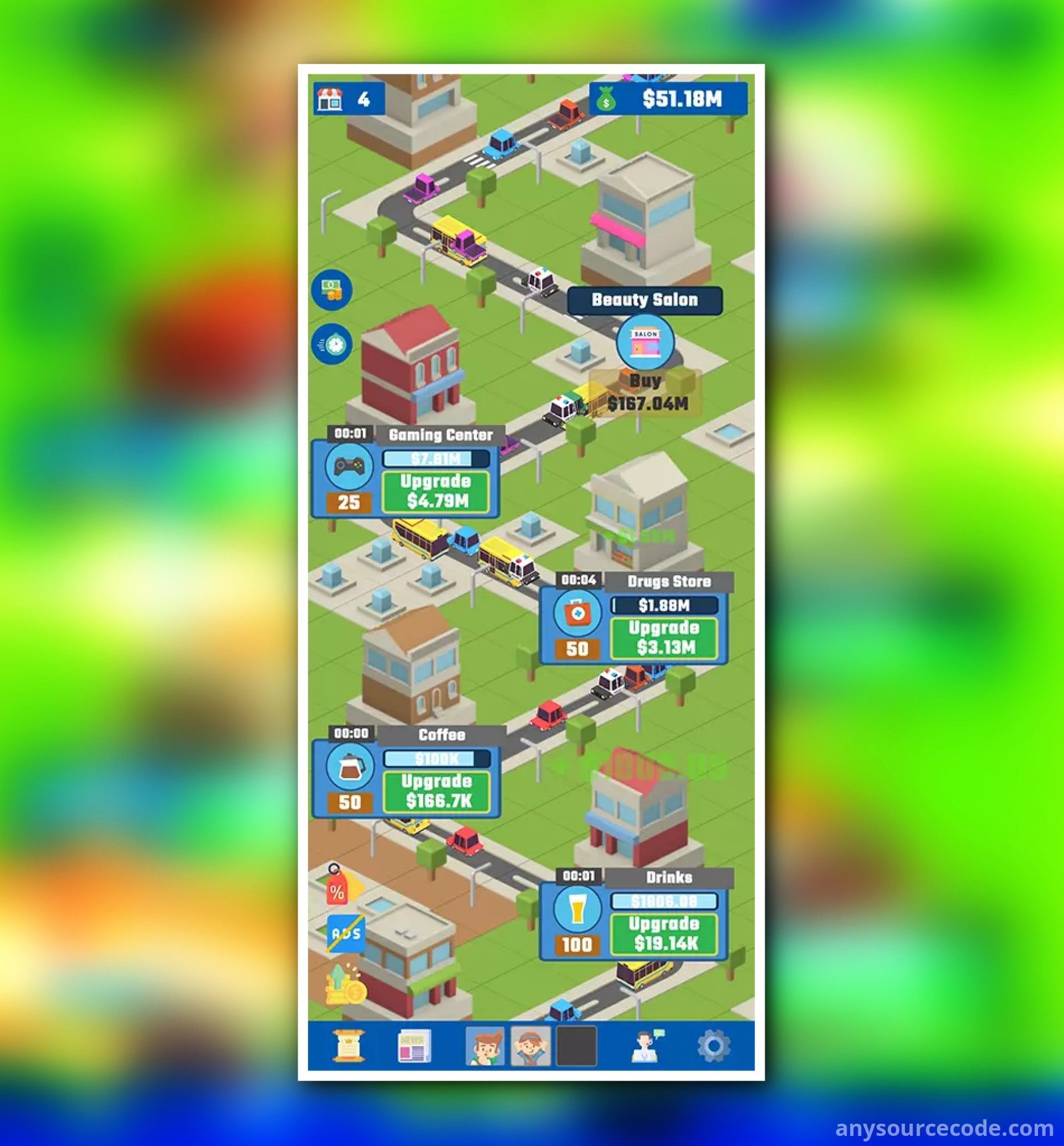 Idle Business Manager is a management and idle clicking game where your primary task is to click, upgrade, and watch your capital skyrocket. Build your business empire by unlocking ventures, hiring advisors, and boosting your earnings. This game template is perfect for developers looking to learn how to build idle tycoon-style games. Fully compatible with Unity 2021.3.4f1 (Built-in Pipeline) and mobile-ready for Android.