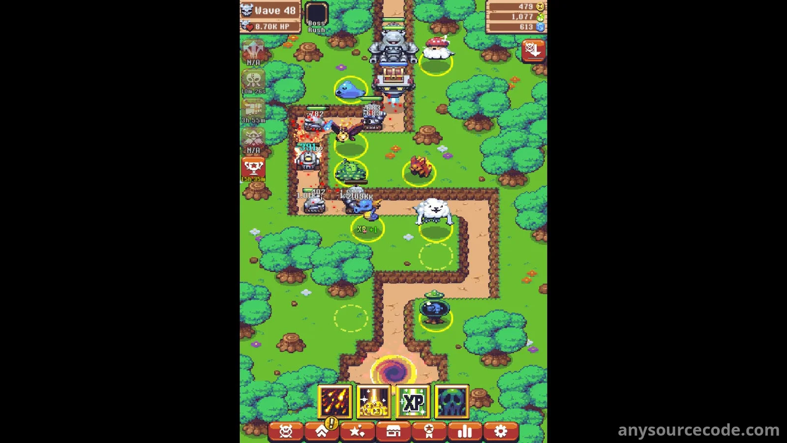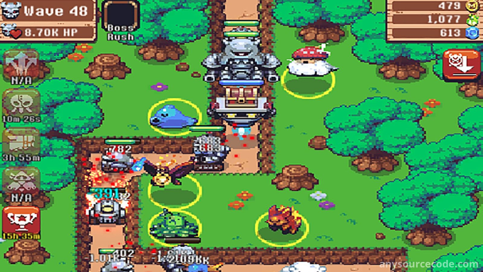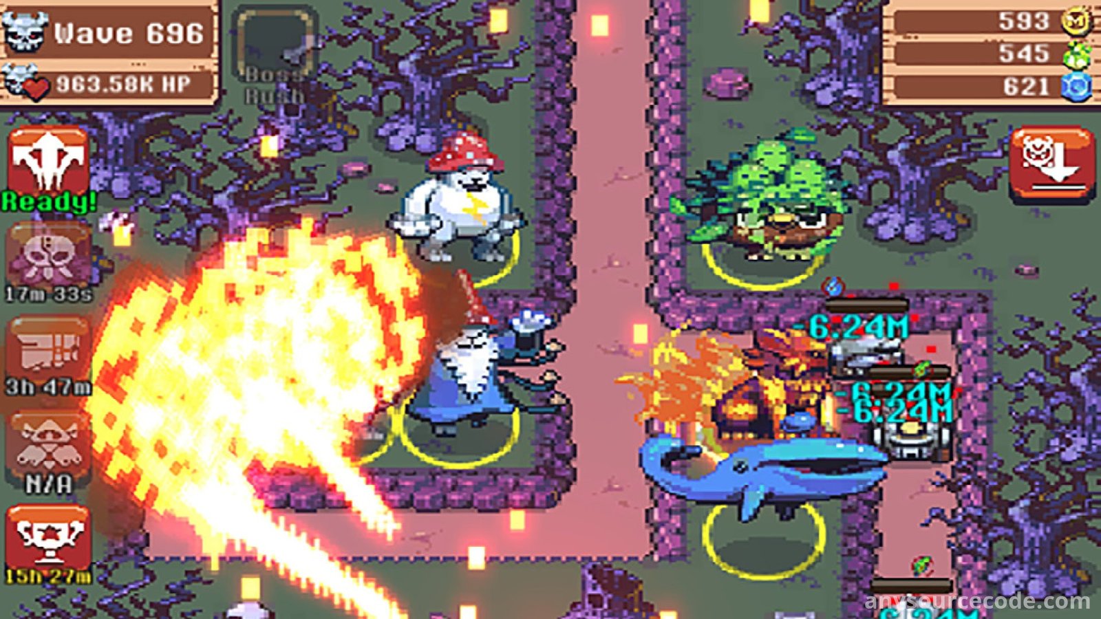 In Idle Monster TD, you take command of the United Monsters Alliance and protect your homeland from relentless machine invaders. This idle tower defense game flips the genre by putting friendly monsters in charge of stopping robot attacks. Strategically place allies like the Sea Stallion for rapid strikes or the Firefly for heavy damage, and unleash powerful spells such as firestorms when battles become overwhelming. Defeating enemies rewards you with upgrades, boosts your stats, and unlocks new monsters. Even while you are offline, your monsters continue to fight and earn gold, allowing steady progression in an endless fantasy world filled with strategy, upgrades, and epic bosses.