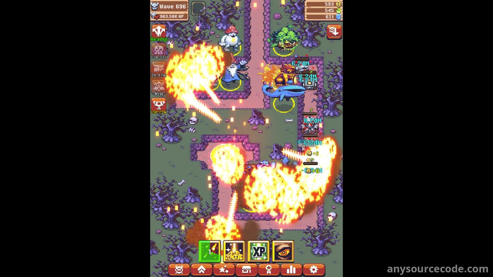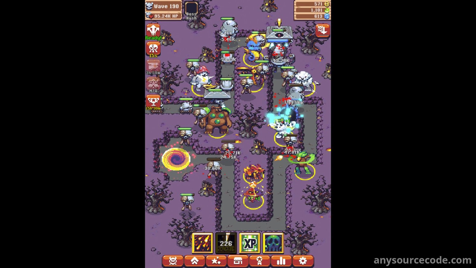 - Endless progression with upgrades, research, spells, artifacts, relics, and technology systems