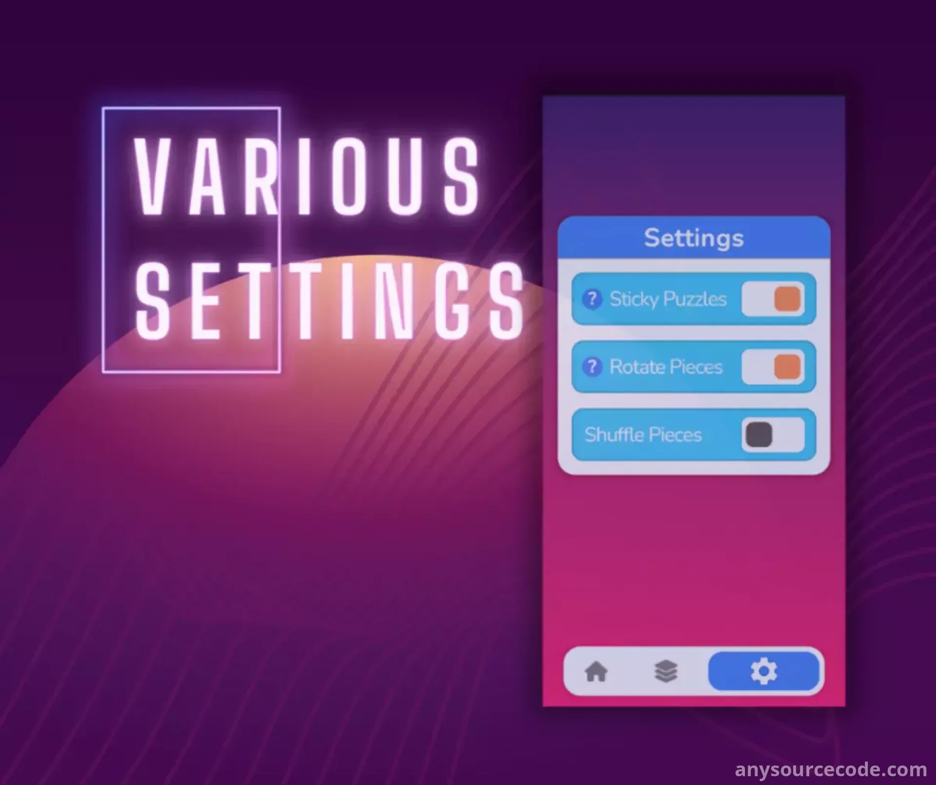 - Optional puzzle rotation with tap-to-rotate feature