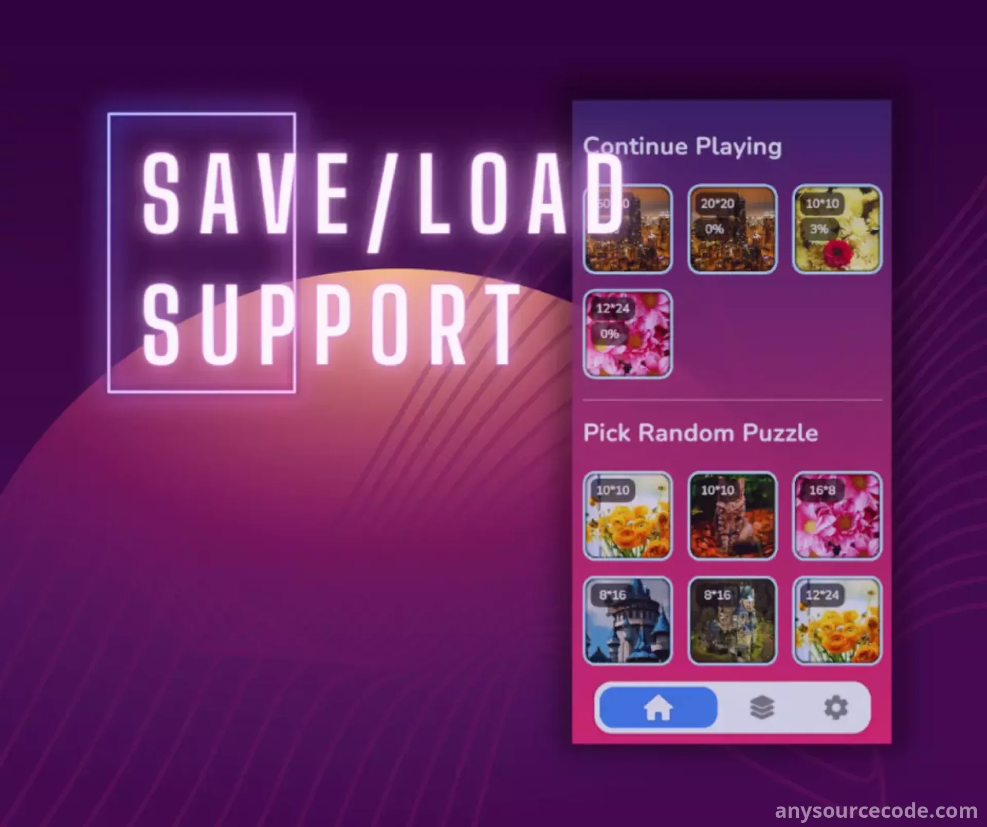 - Save and load system for puzzle progress
