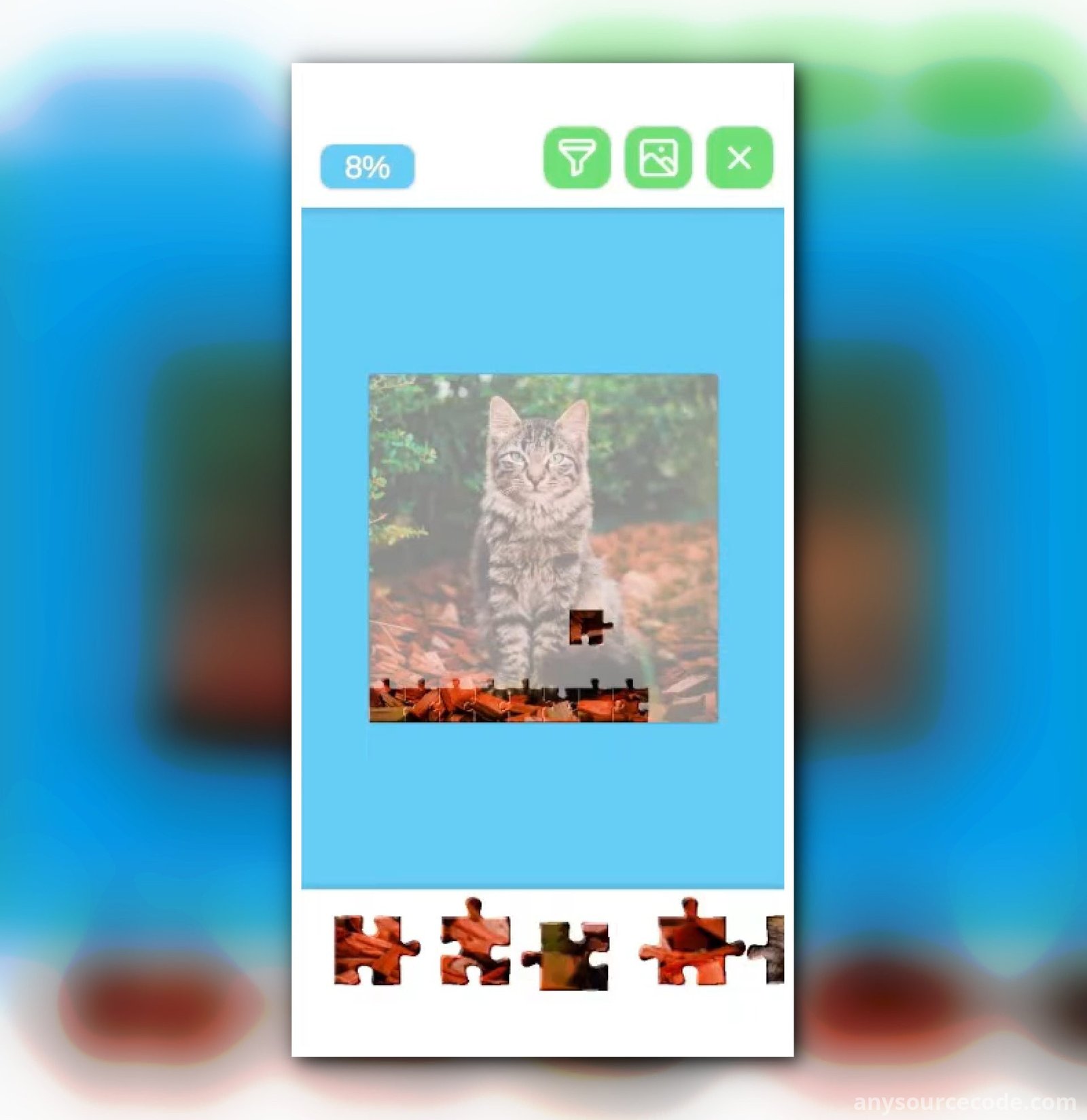 - Puzzle piece tilt and shadow effects while dragging