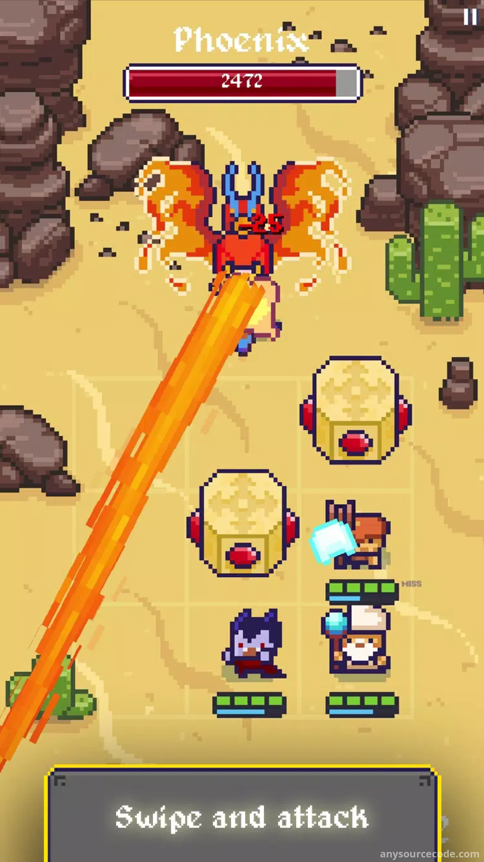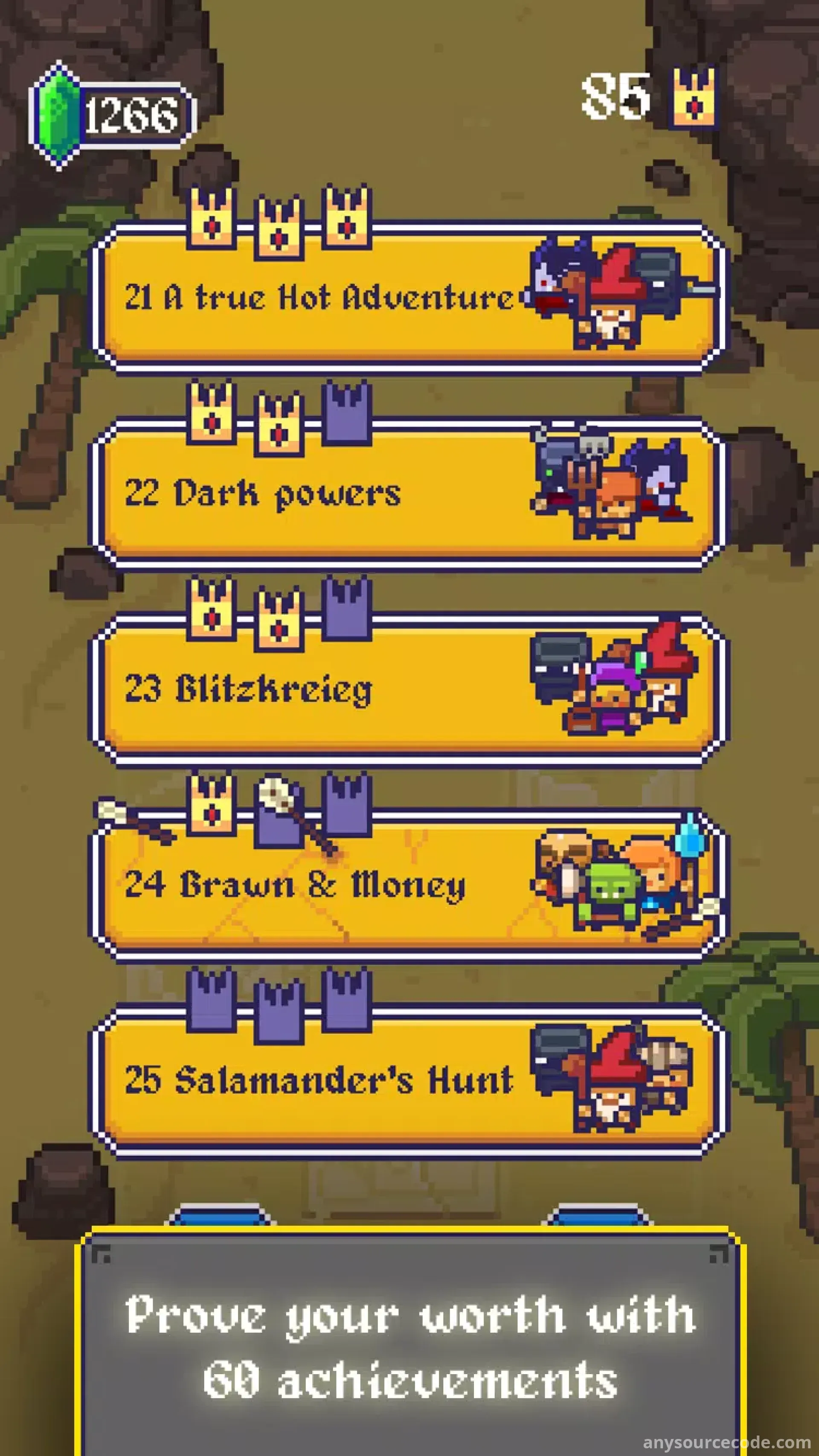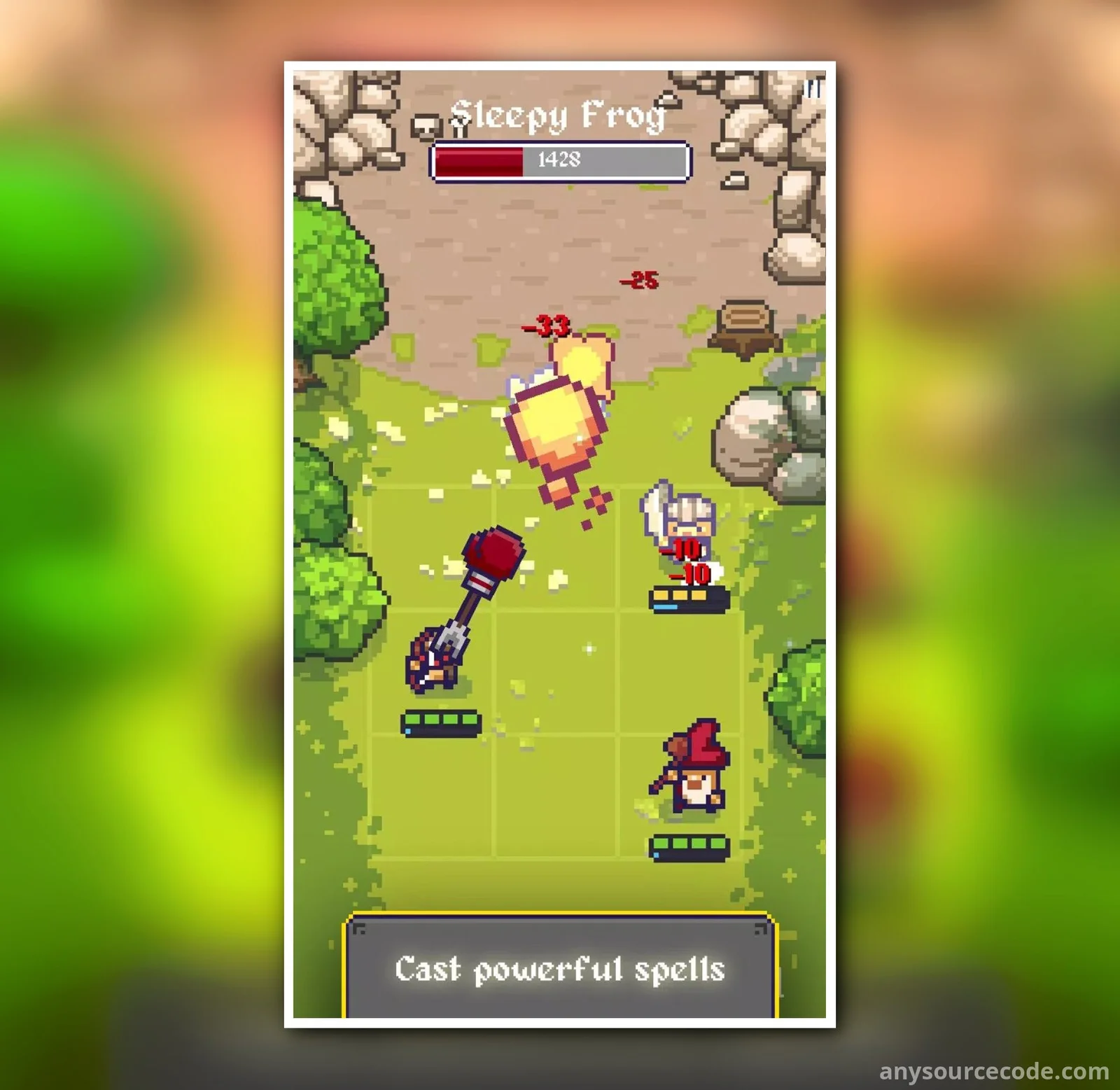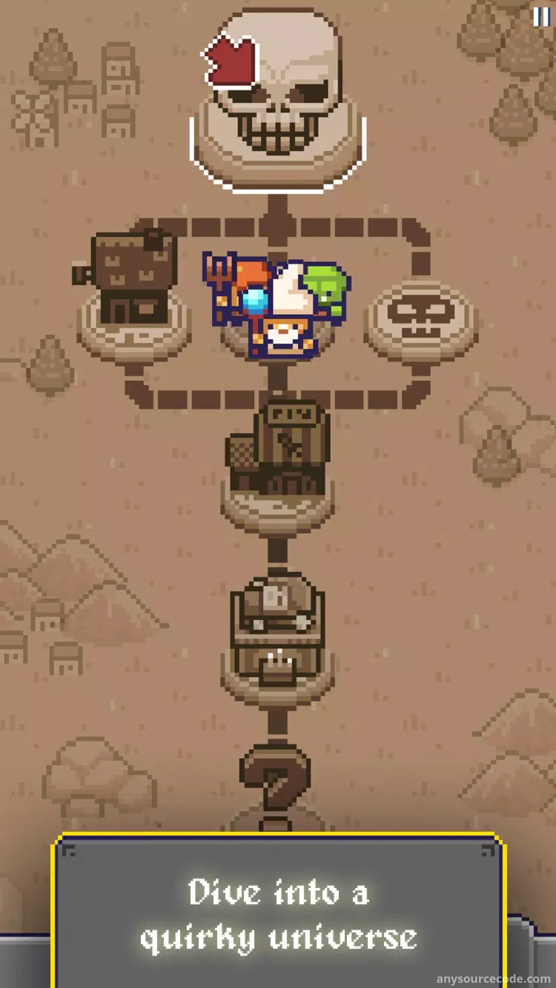 King Crusher is a unique rogue-like RPG adventure filled with dark humor and fast-paced tactical combat. In the service of the unhinged King Tease, you play as the King’s Hand, tasked with eliminating every rival monarch in a quirky medieval world. Travel through forests, deserts, volcanoes, cemeteries, and green pastures while recruiting warriors, collecting loot, and surviving deadly encounters. The game blends strategy, swipe-based controls, and RPG progression into an original and engaging experience with pixel-art visuals and old-school arcade charm.