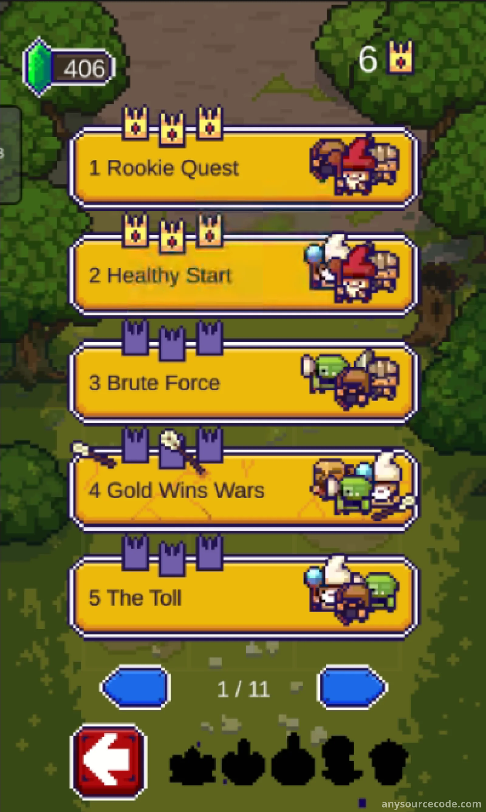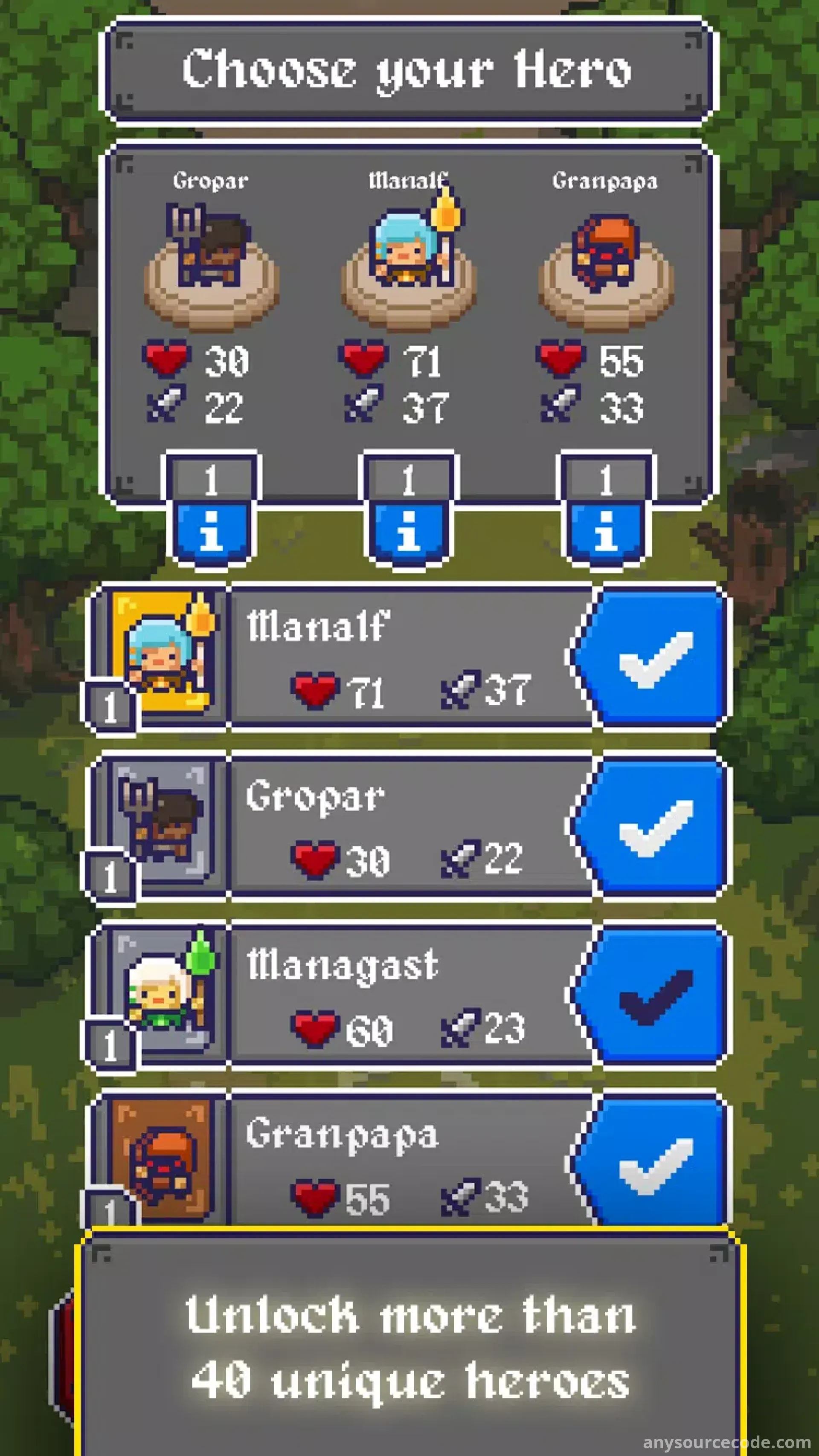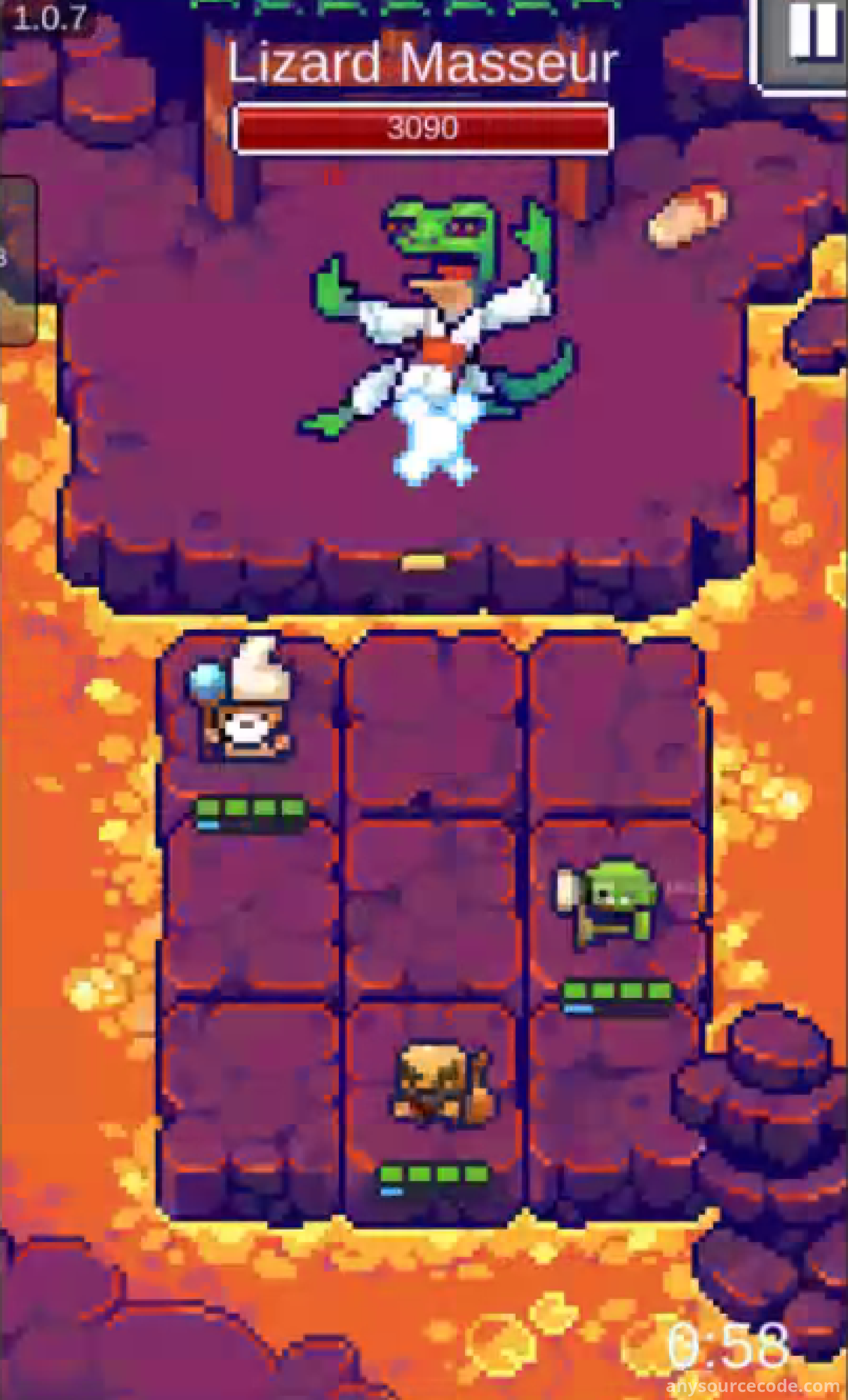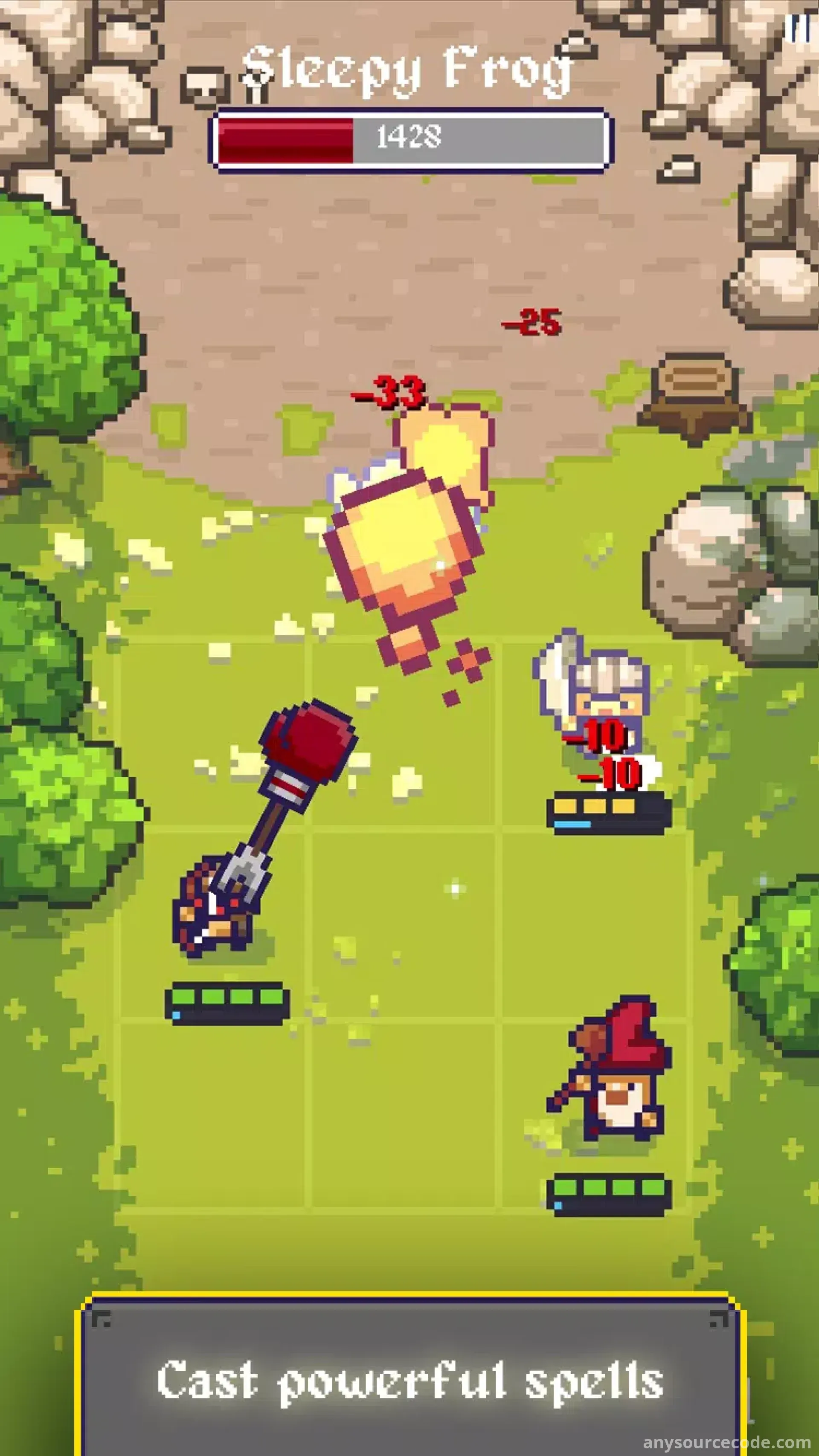 King Crusher is a unique rogue-like RPG adventure filled with dark humor and fast-paced tactical combat. In the service of the unhinged King Tease, you play as the King’s Hand, tasked with eliminating every rival monarch in a quirky medieval world. Travel through forests, deserts, volcanoes, cemeteries, and green pastures while recruiting warriors, collecting loot, and surviving deadly encounters. The game blends strategy, swipe-based controls, and RPG progression into an original and engaging experience with pixel-art visuals and old-school arcade charm.