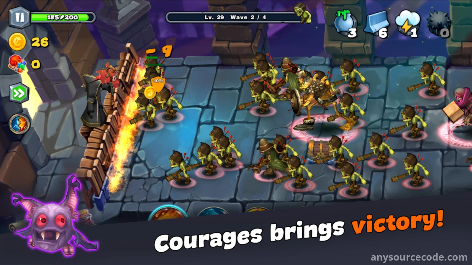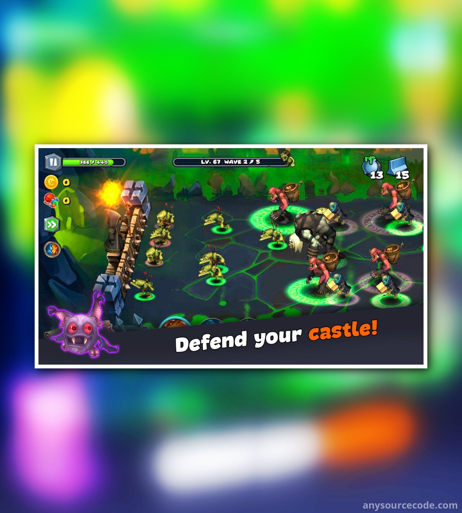 - Castle defense gameplay with waves of zombies and fantasy monsters