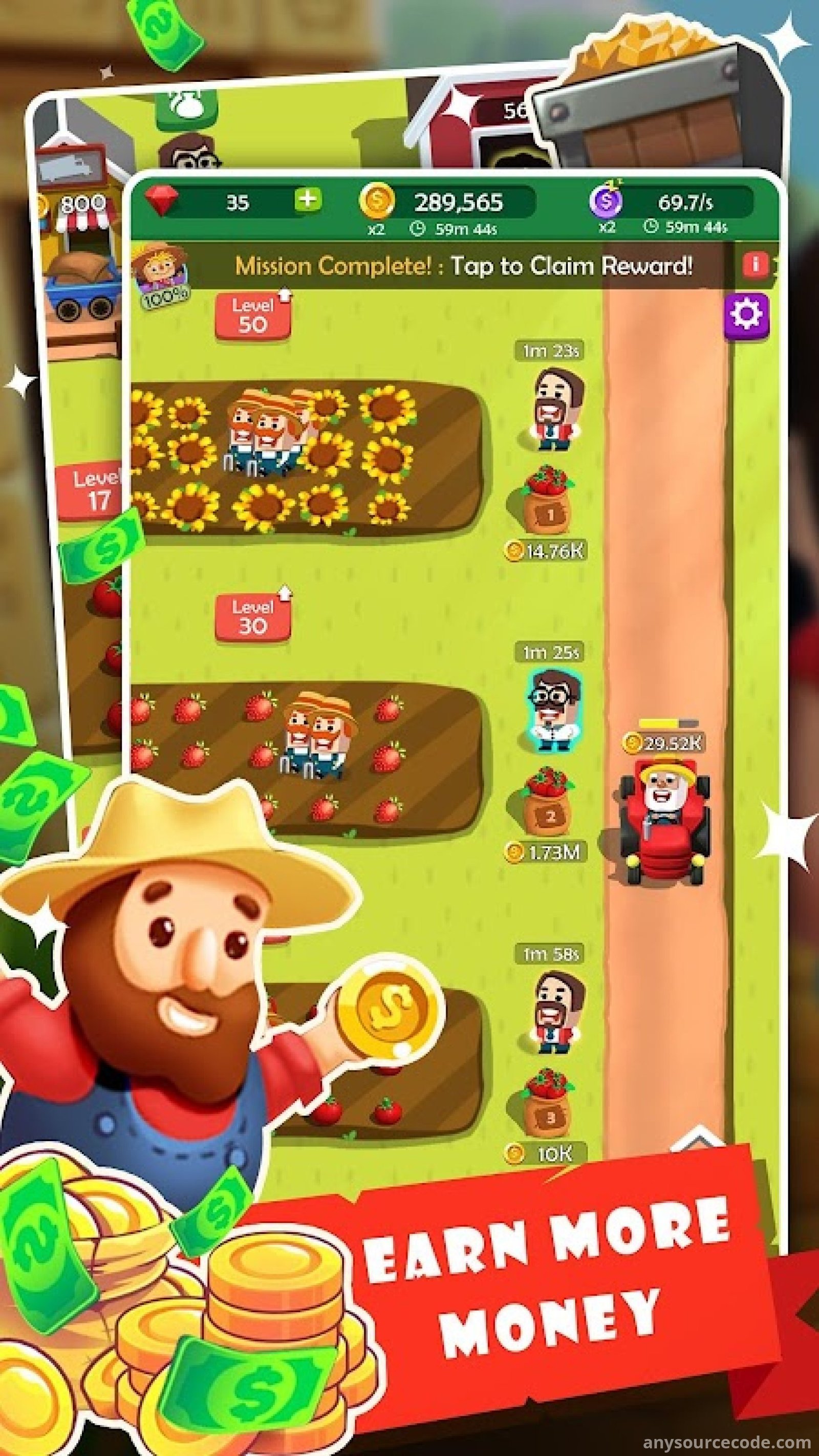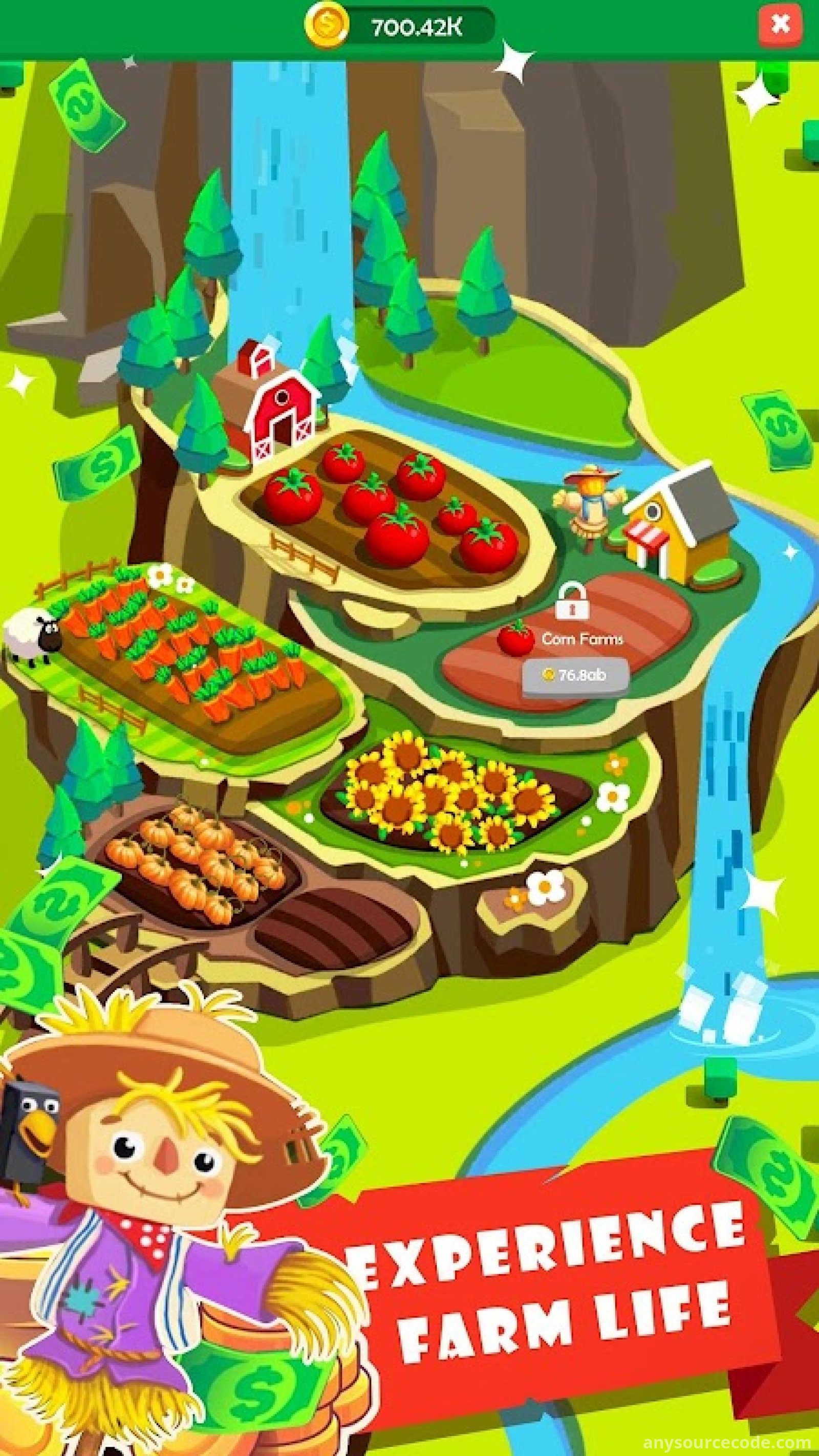 Mega Farm Empire – Idle Clicker Game lets players escape the hustle and bustle of daily life and return to a peaceful farming experience. Build your own farm, grow fresh vegetables, and turn your small land into a massive farming empire. Hire managers, workers, and tractor drivers to automate production while you earn idle income and become a true farm tycoon.