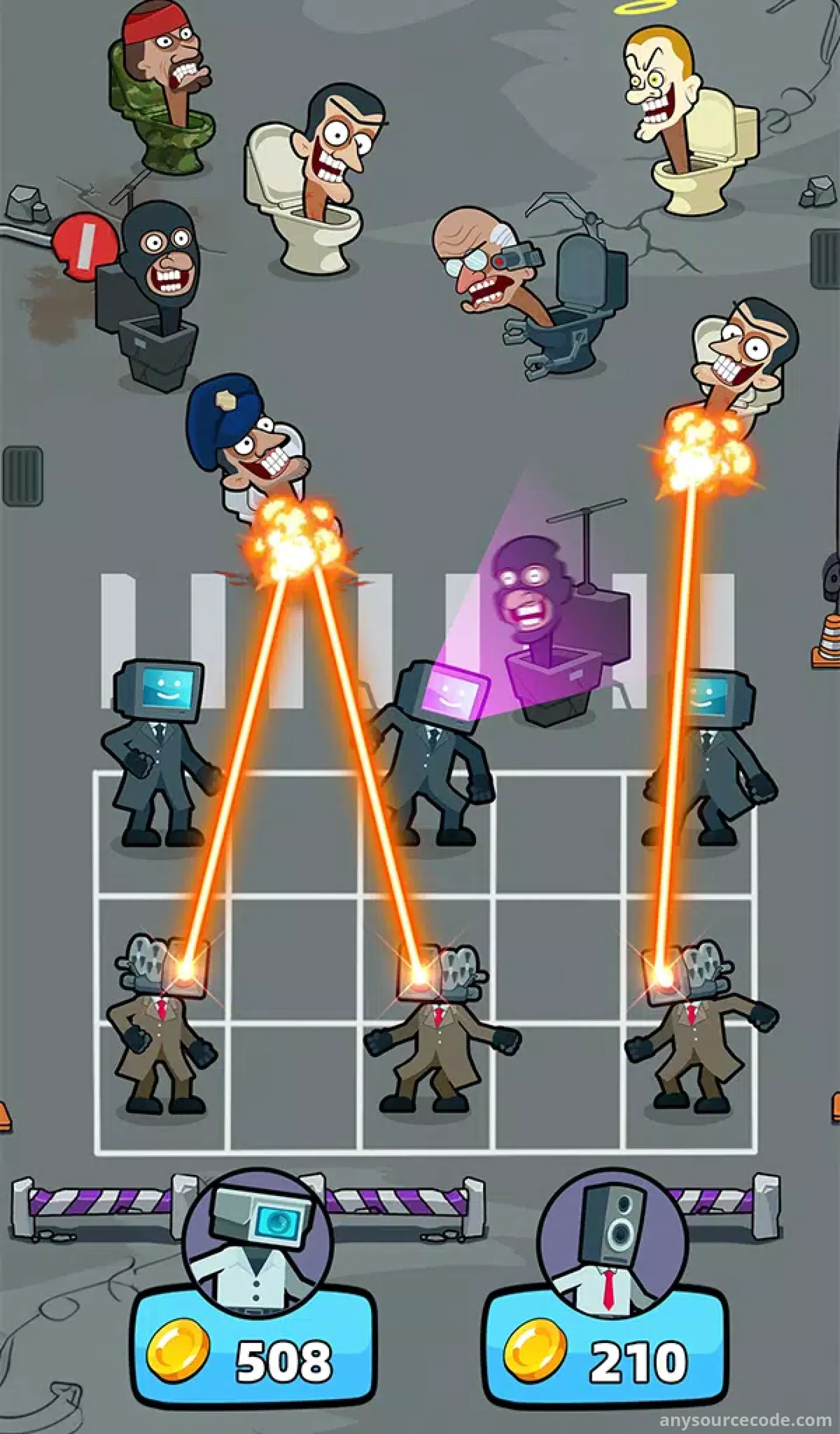 Merge Toilet Monster Battle is a strategic merging battle arena where you build, upgrade, and command your own army of Skibidy and Garten monsters. Combine identical units to evolve them into stronger forms, place them wisely on the battlefield, and defeat enemy forces. Fast thinking and smart troop placement are the keys to becoming the ultimate Merge War champion.