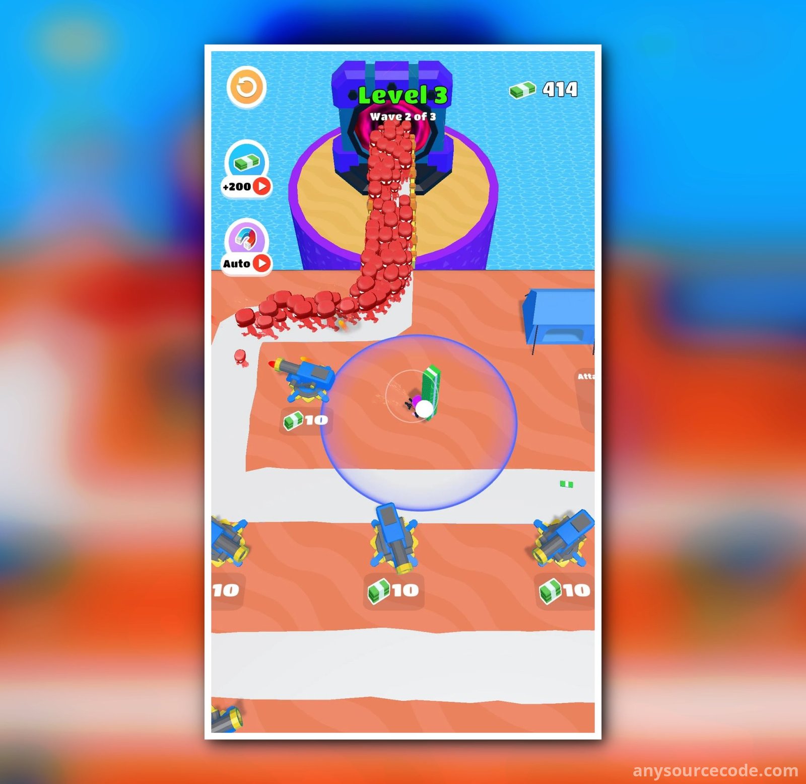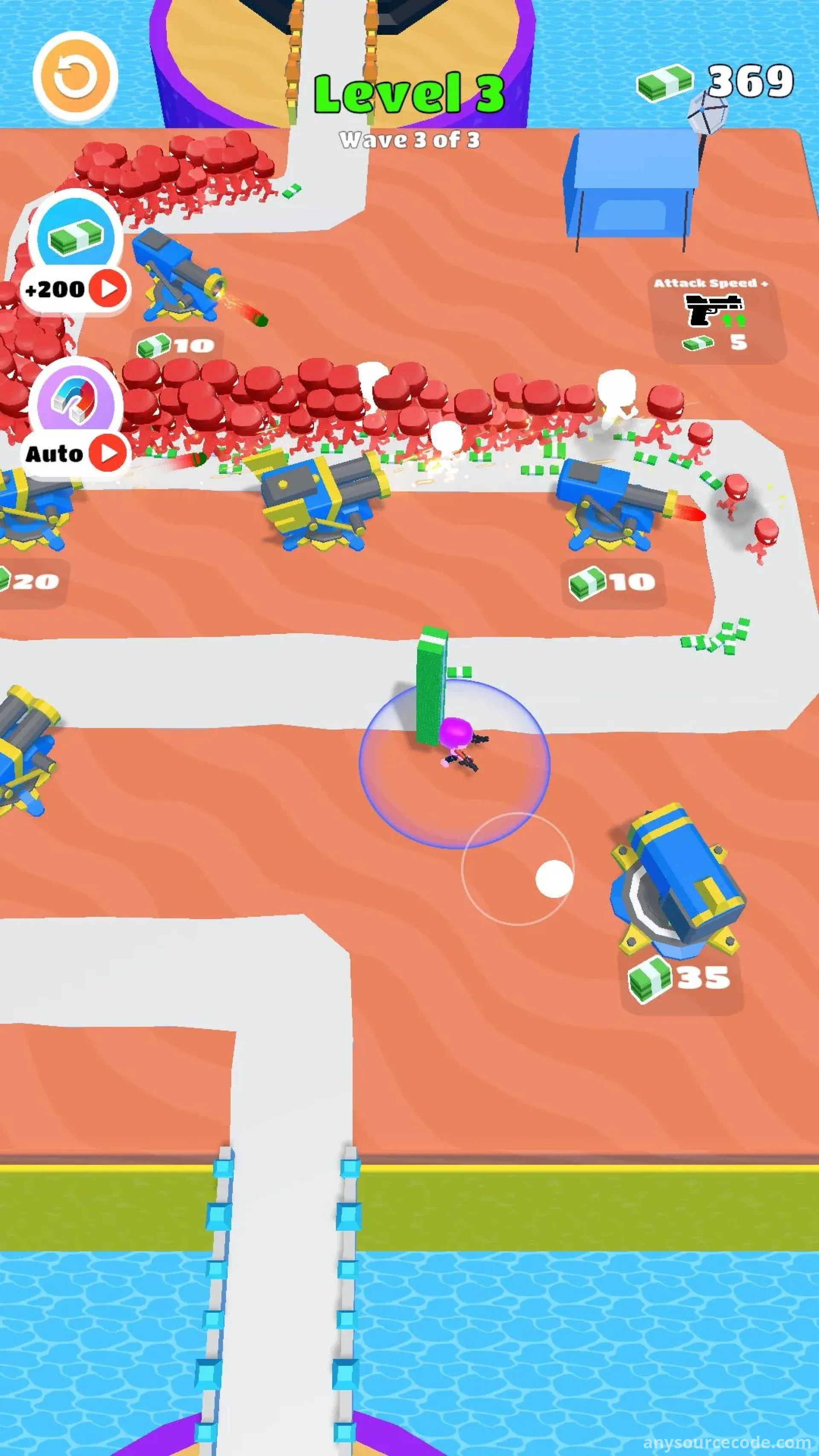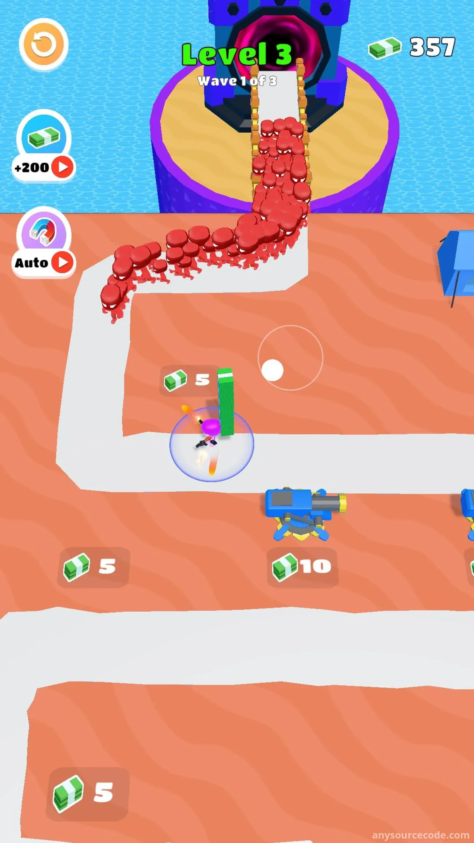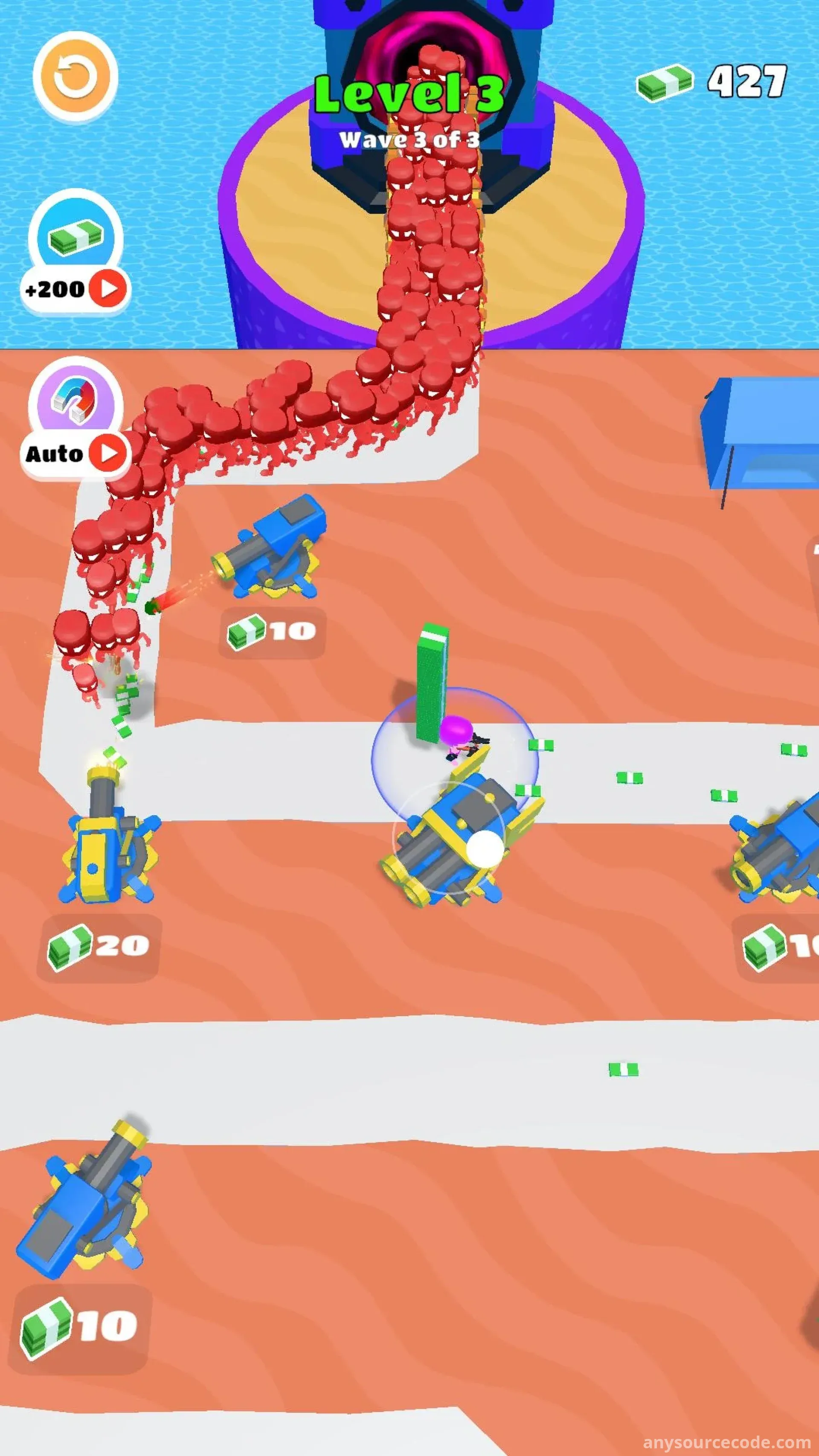 Money Stack Defense 3D is an action-packed tower defense game where you must protect your growing cash stack from endless waves of enemies. Combine shooting mechanics with strategic turret placement to defend your fortune. With simple controls, engaging gameplay, and increasing difficulty, every battle becomes a thrilling test of your strategy and reflexes.