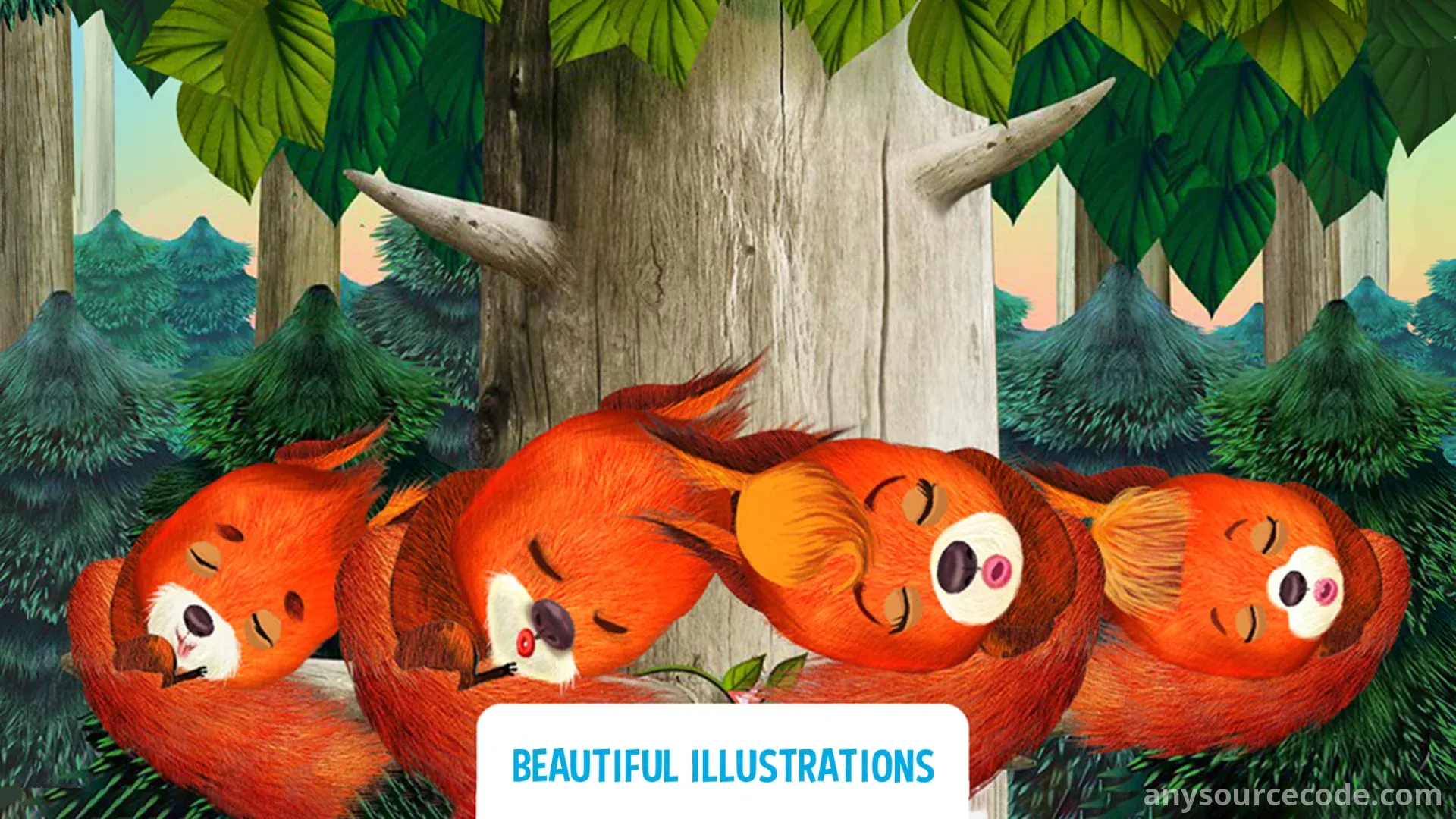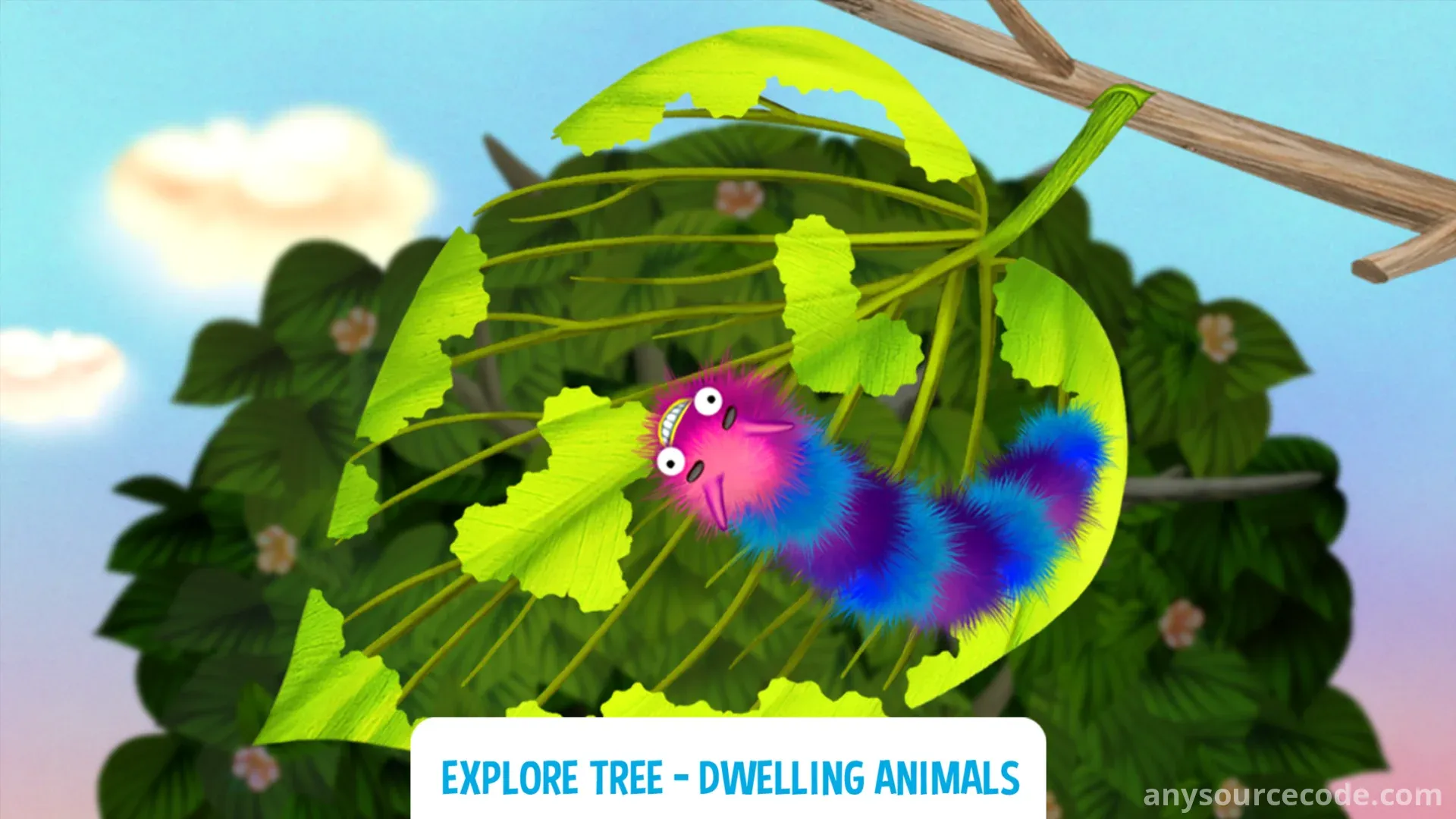 This activity focuses on a forest tree as a small ecosystem — a home for different animals living on different levels. Kids can interact with hand-drawn animated creatures such as a caterpillar, hedgehog, spider, squirrel family, owl, and mole.