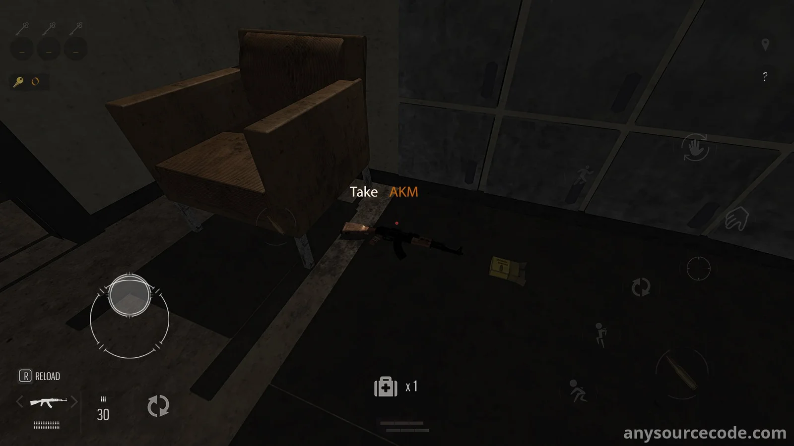 - Weapons: AKM, rifle, sniper, shotgun, crowbar, pistol, grenade, and more