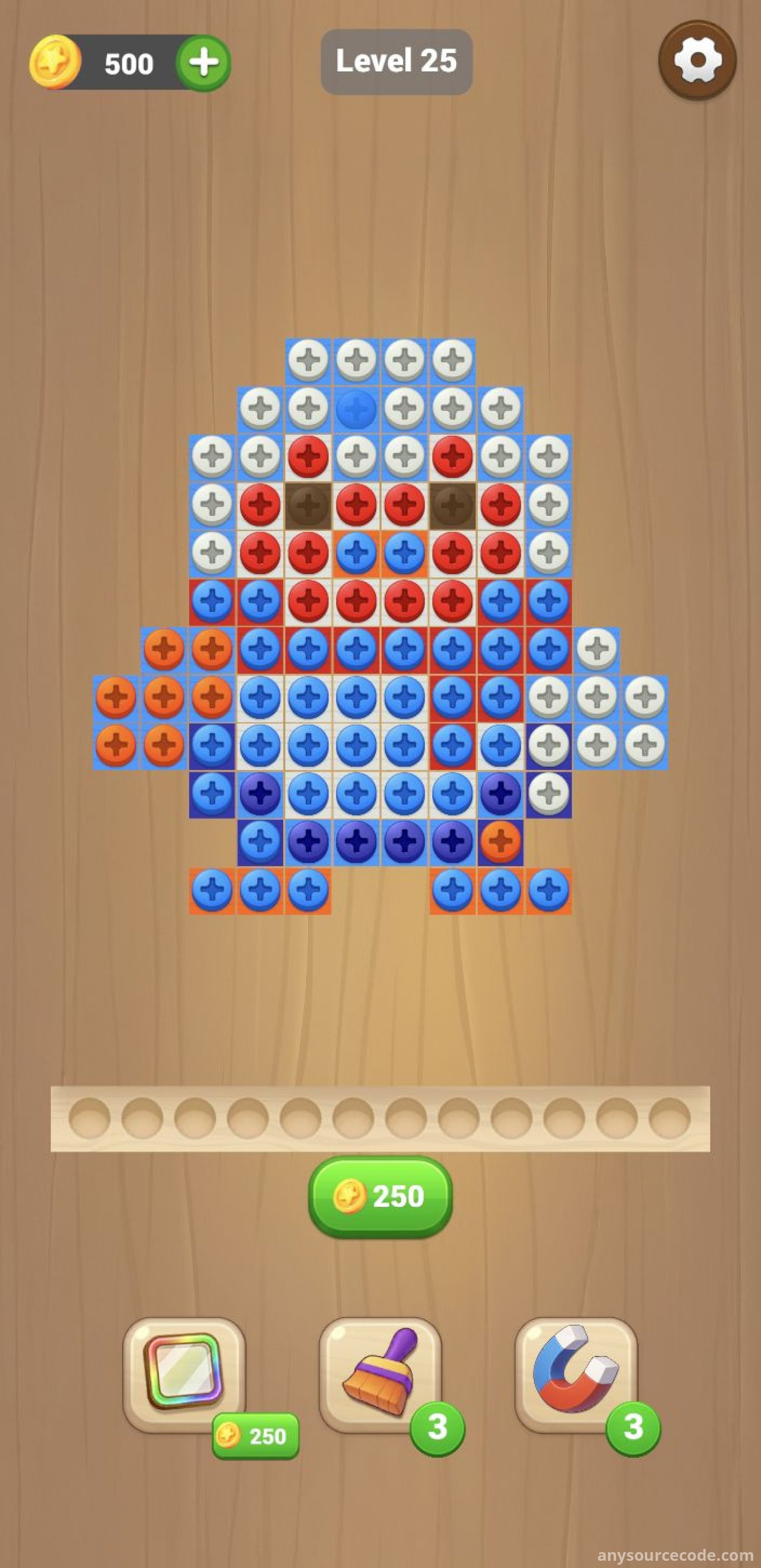 Players interact with screws and objects, twisting and sorting them into the correct positions. The gameplay is simple to learn yet highly engaging, making it ideal for casual and hyper-casual audiences. With built-in monetization systems and easy customization, this template is perfect for both beginners and experienced developers.