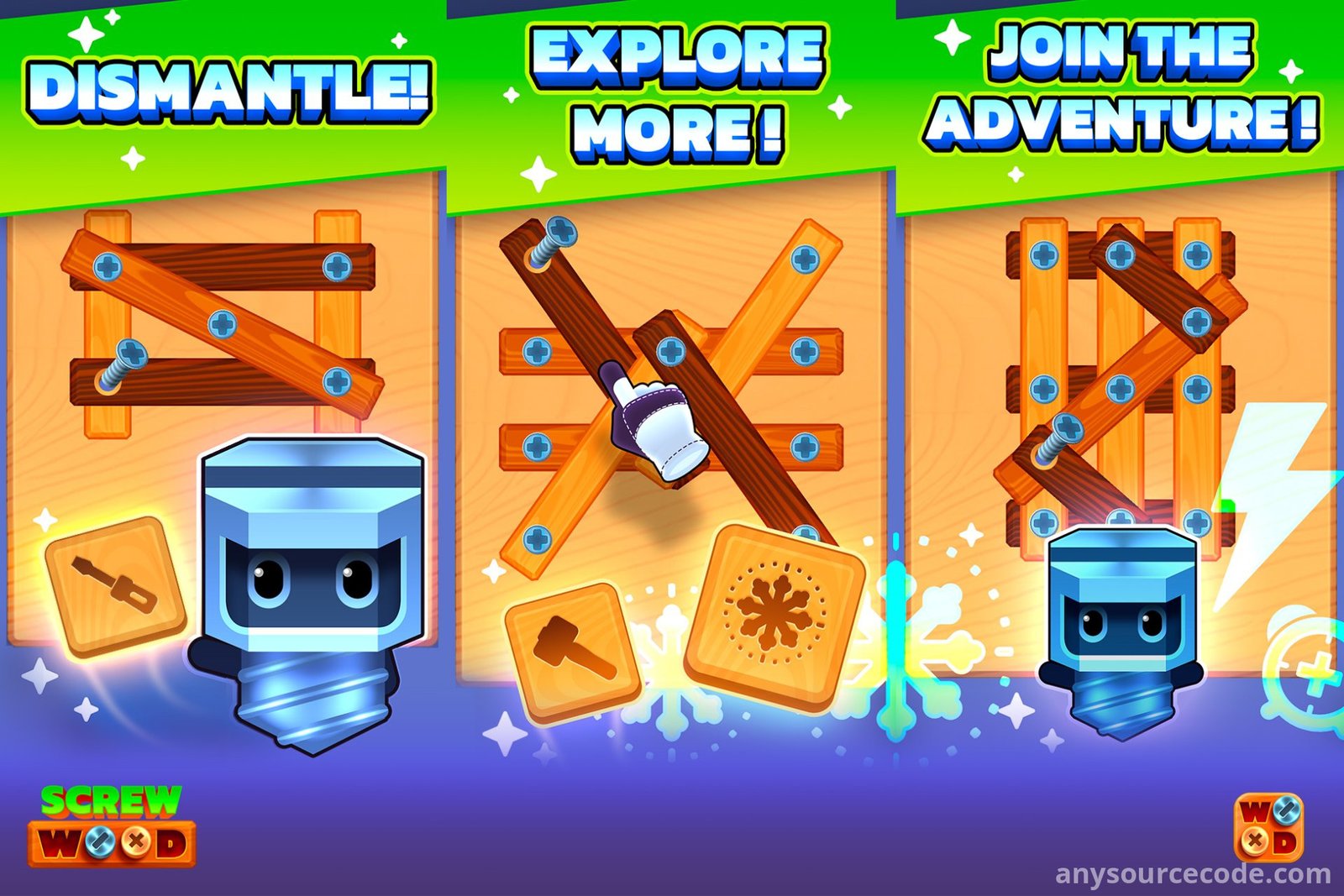 - Dynamic puzzle gameplay with screws, boards, and hidden shapes