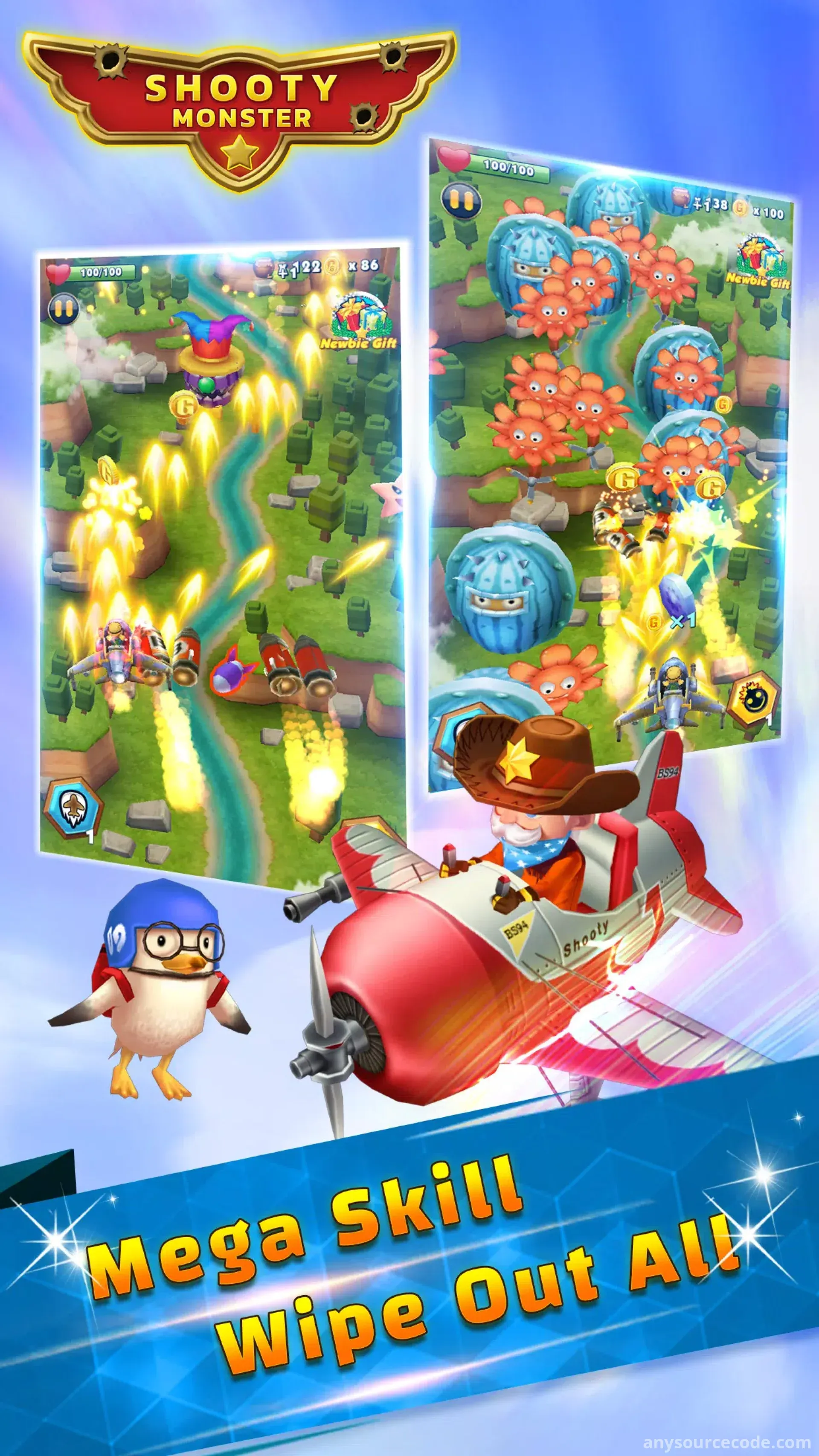 Shooty Monster - Battle.io is an exciting modern flight battle game where you drive your aircraft to shoot monsters and destroy the Squid Sky Fortress! Explore beautiful battle maps, unlock aircraft, pilots, and pets, and enjoy stunning effects and countless surprises. Experience easy controls, engaging gameplay, and rewarding progression in this action-packed flight shooter.