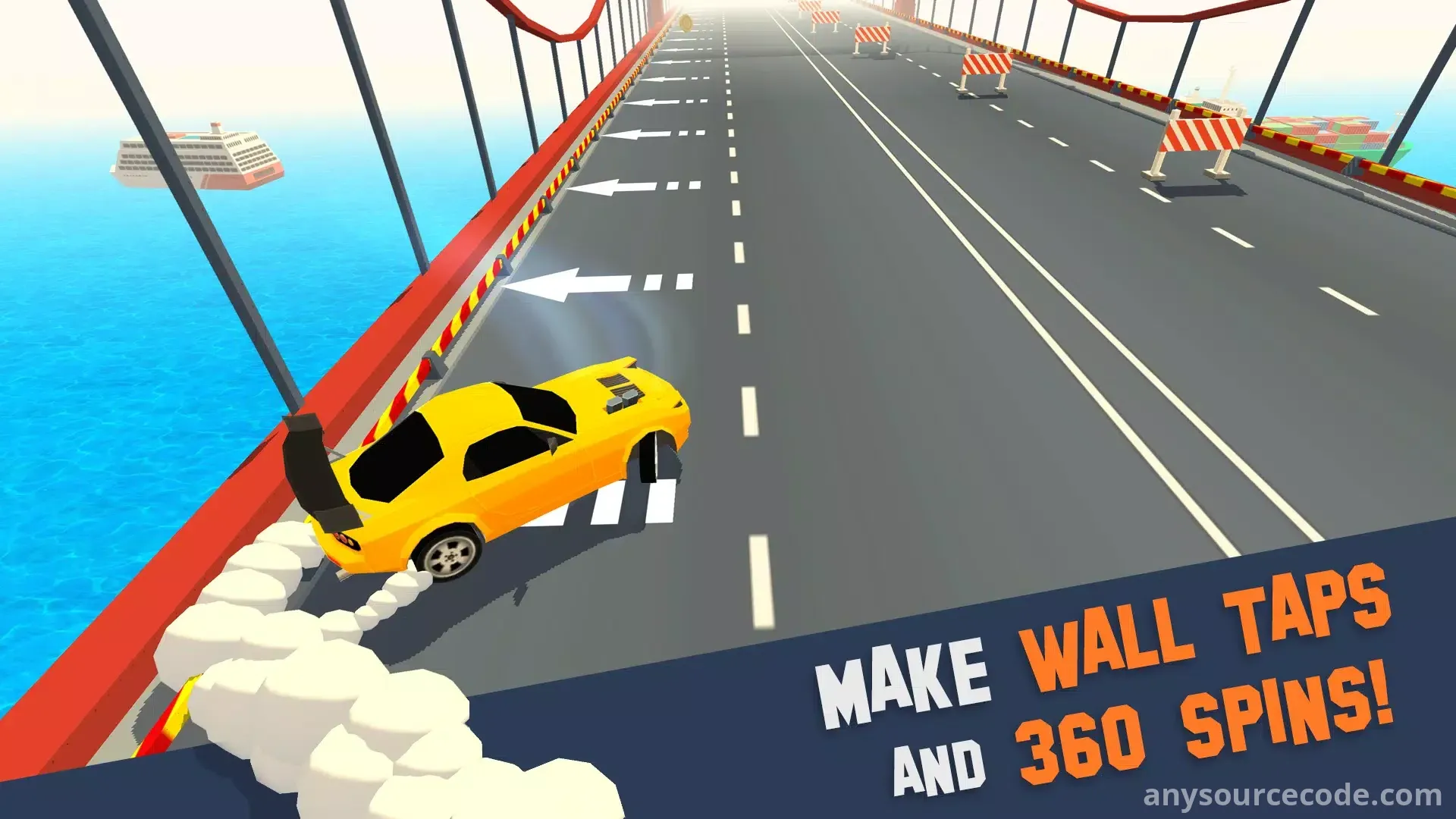 Smashy Drift is an endless arcade drifting game where you drive legendary cars and push your drifting skills to the limit. Race through a variety of locations including cities, uptowns, battlefields, and highways while surviving the chaos of driftapocalypse. Perform stylish wall taps, execute perfect 360 spins, collect power-ups, and compete for the top spot on the online leaderboards.