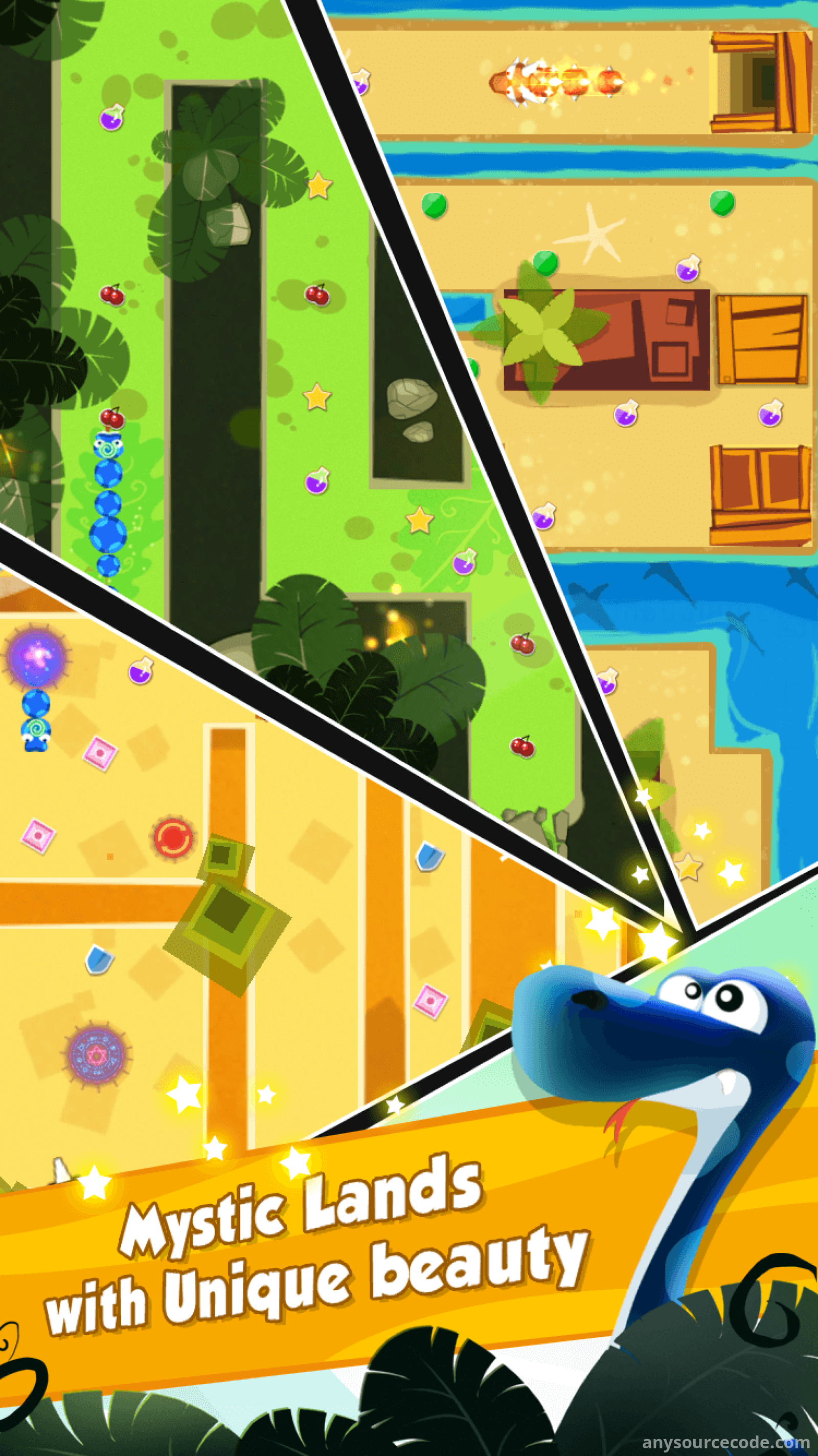 Players must use items like teleport holes and elixirs wisely to survive each level. Customize your snake with different skins, enjoy beautifully designed maps, and take on over 75 exciting built-in levels. Perfect for fans of action and strategy games, this is a complete cross-platform solution ready for Android and iOS.