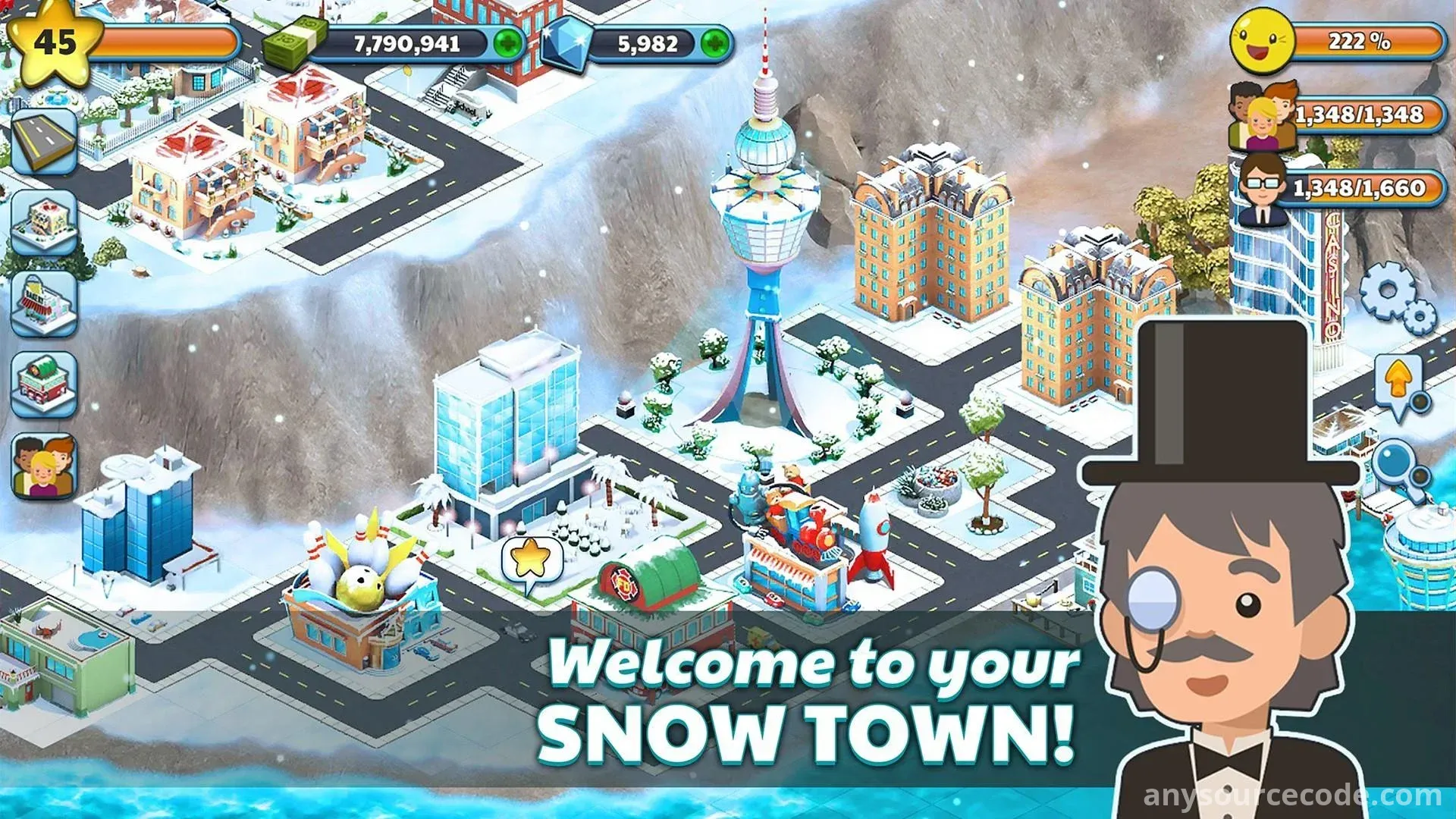 Build and manage your frosty dream city in Snow Town - Ice Village City. As mayor and master planner, balance housing, jobs, community services, and decorations to keep your citizens happy and your town growing. Start from a small snowy village and expand into a dazzling metropolis full of parks, roads, and charming winter architecture. Play at your own pace — short sessions or long building sprees — and create a snowbound masterpiece to show off.