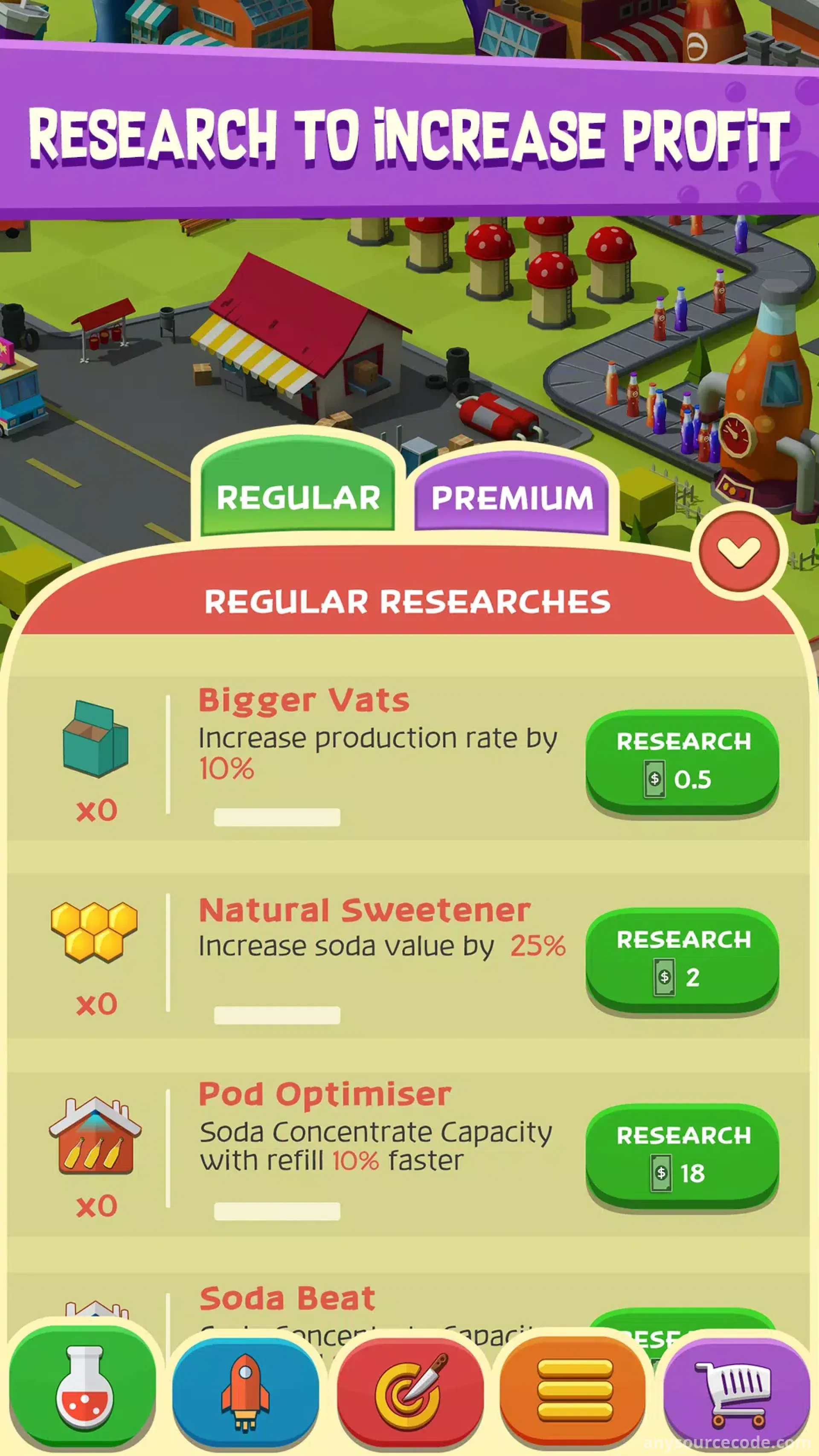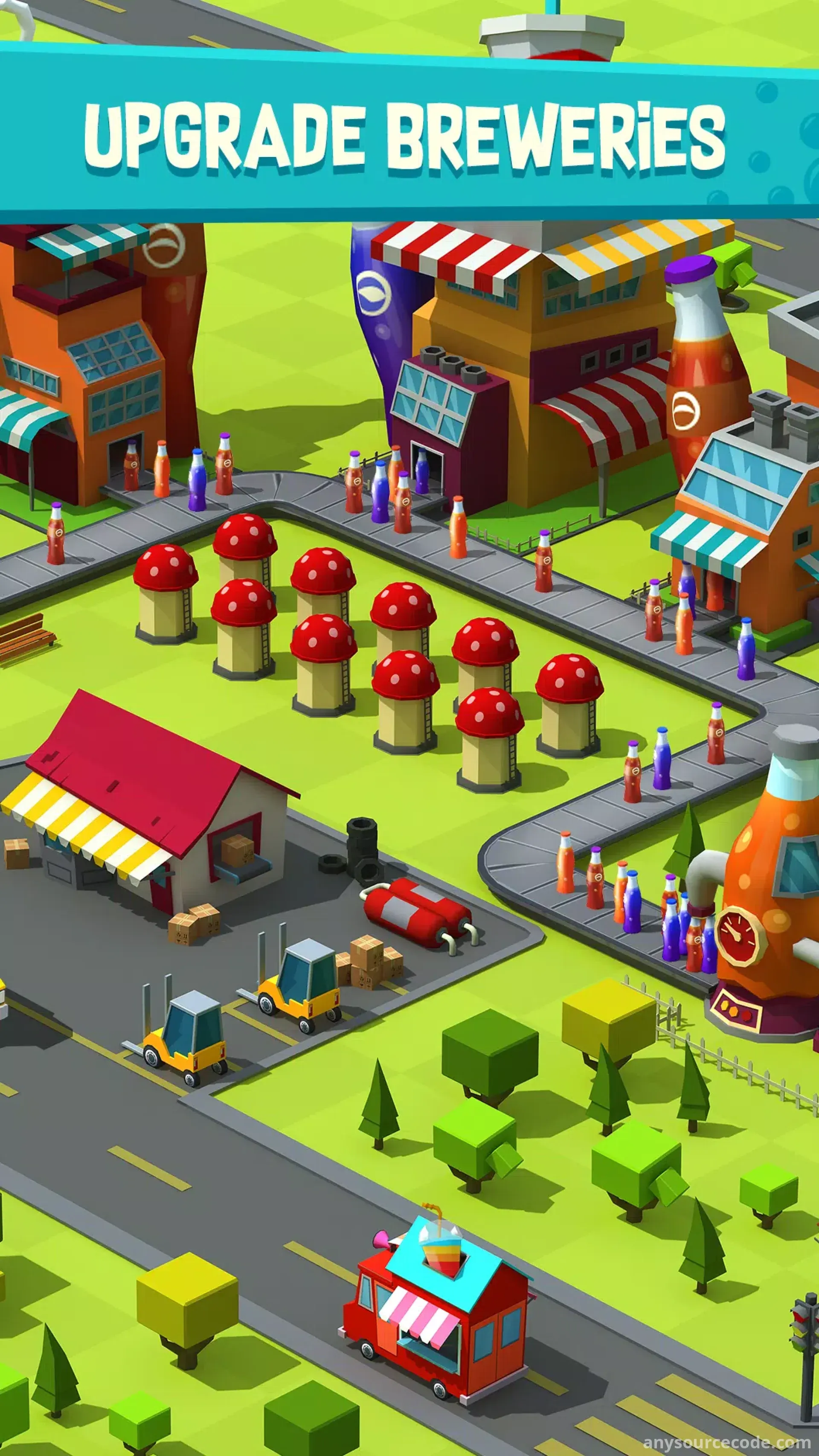 - Fast-paced idle clicker soda factory gameplay